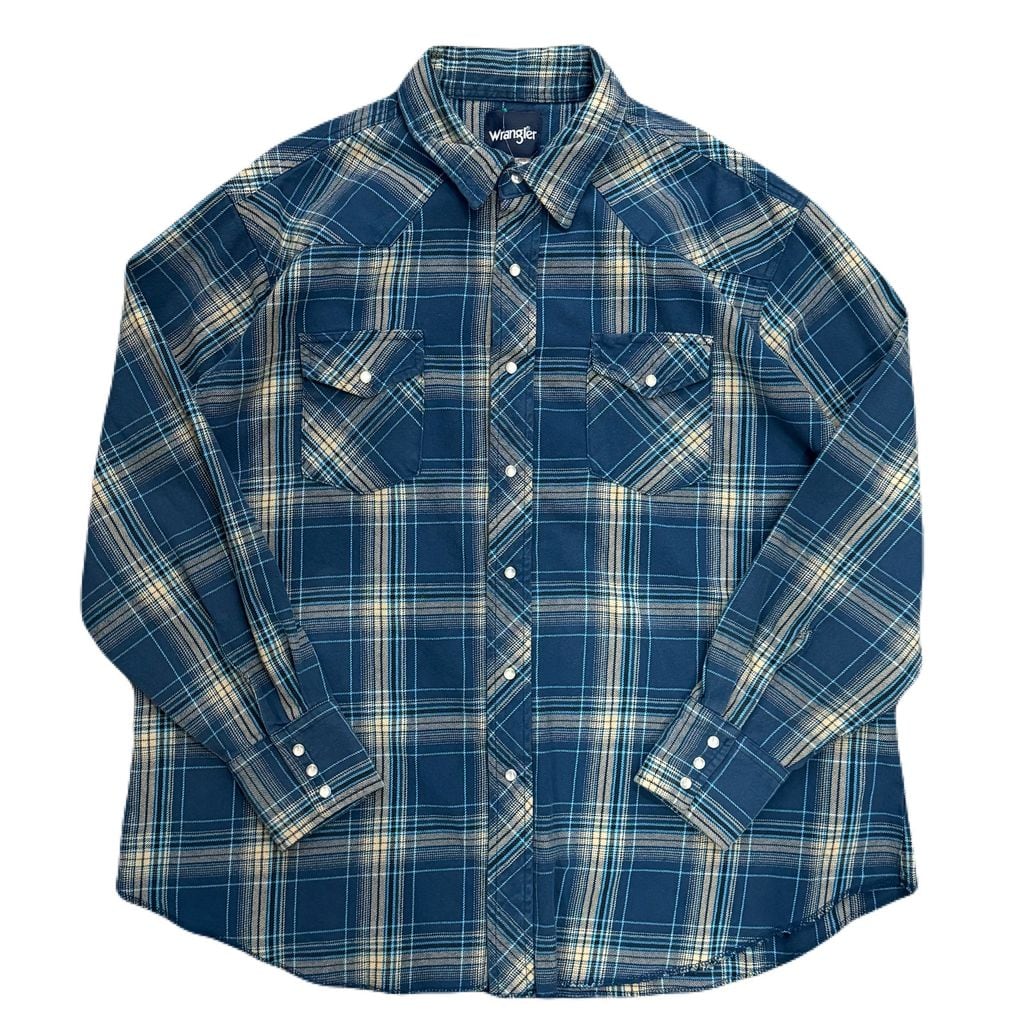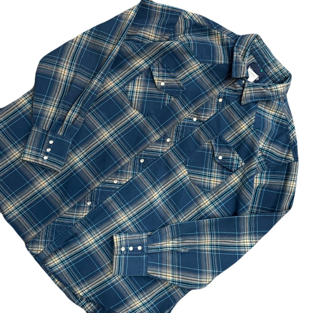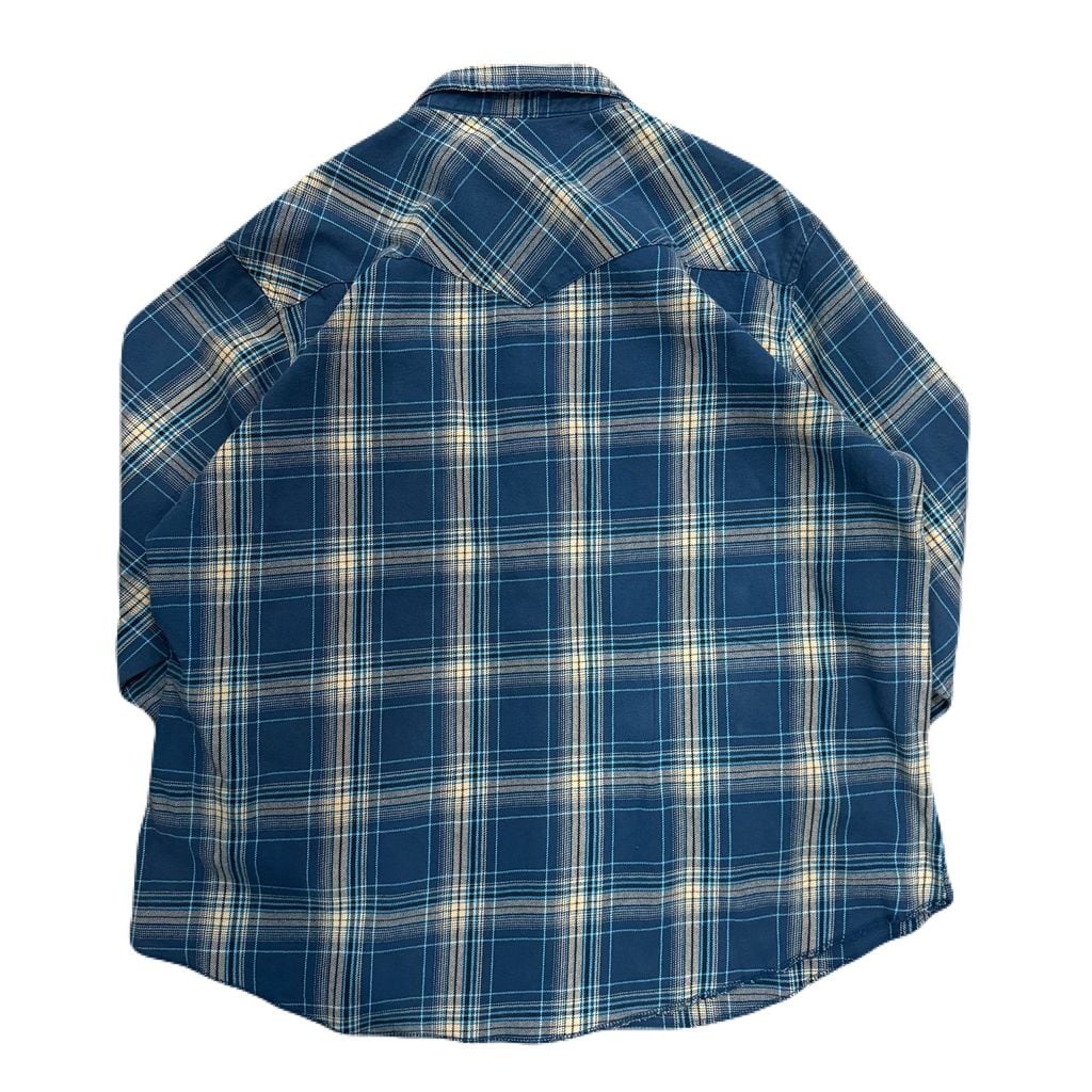 Wrangler ラングラー チェック柄 スナップボタン 長袖シャツ ネルシャツ 紺 XXLサイズ No.EA12
