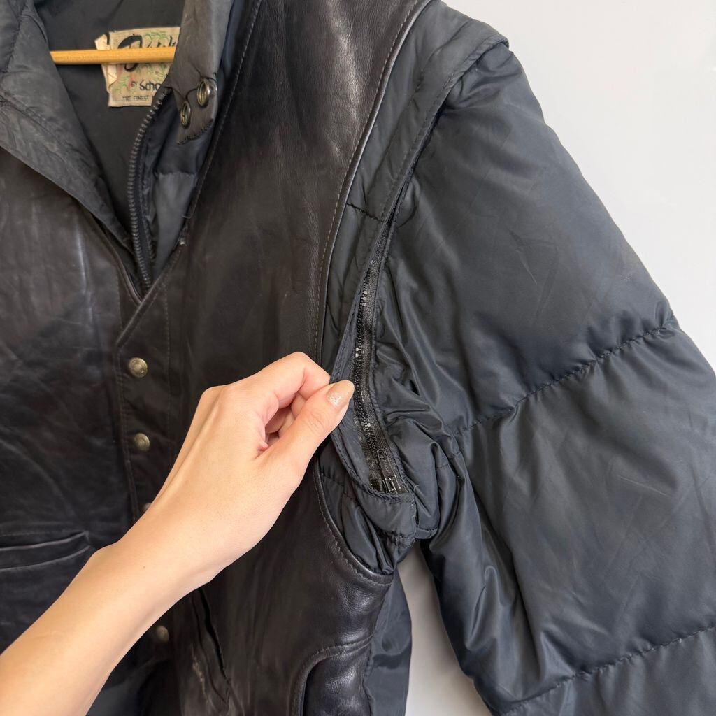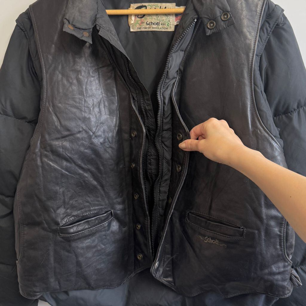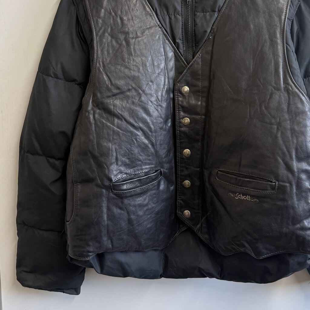 USA製 Schott ショット 2WAY レザーベスト×ダウンジャケット 黒 サイズ46 No.L833