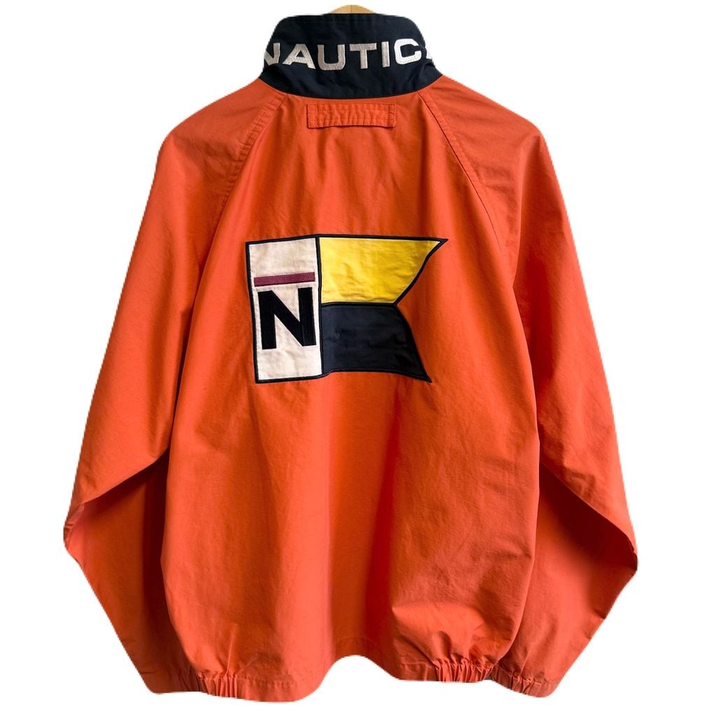 nautica ノーティカ ウィンドブレーカージャケット セーリングジャケット ロゴワッペン フルジップ ポケット付き オレンジ×ネイビー L/Gサイズ No.L838