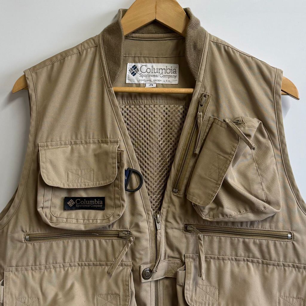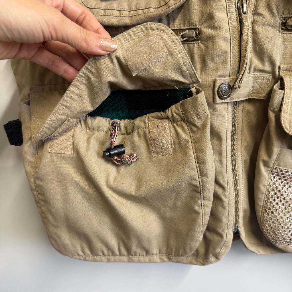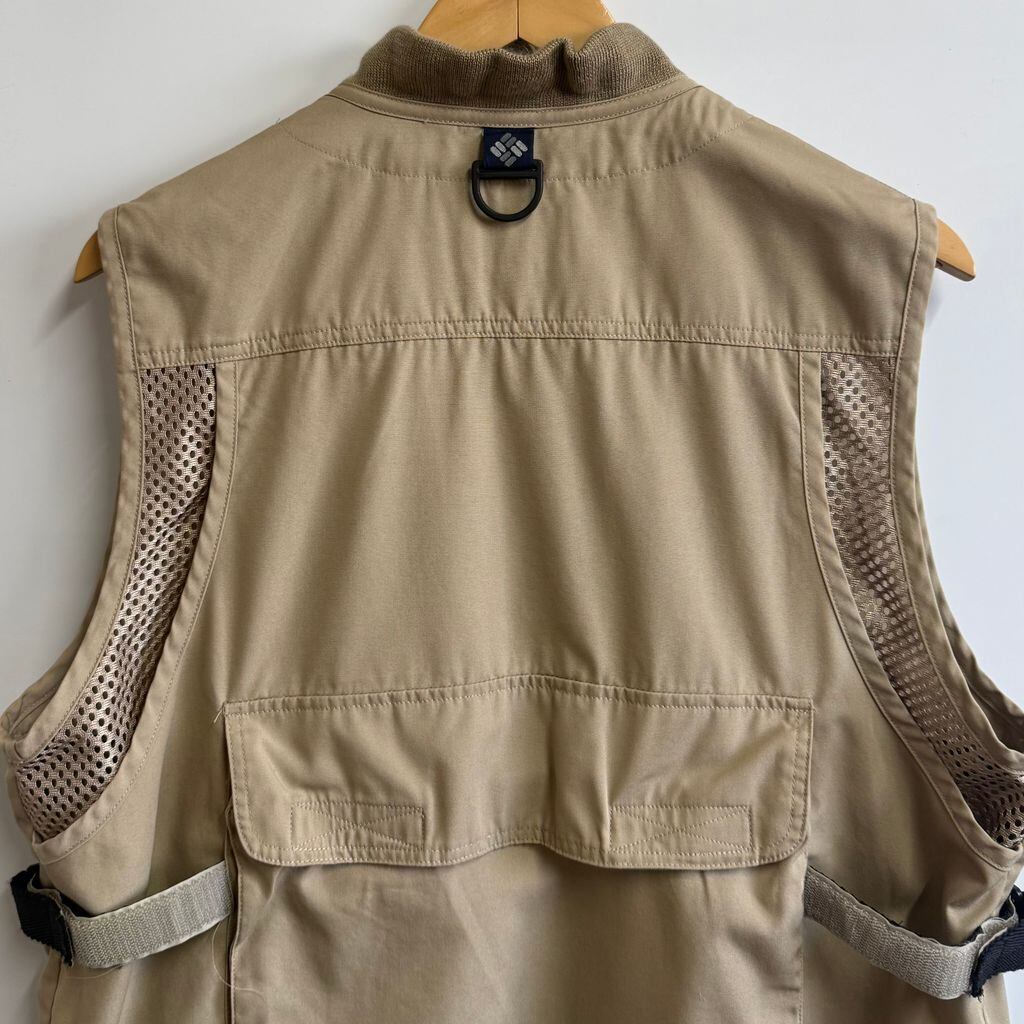 Columbia コロンビア フィッシングベスト 切り替えデザイン メッシュ マルチポケット ベージュ Mサイズ No.L843