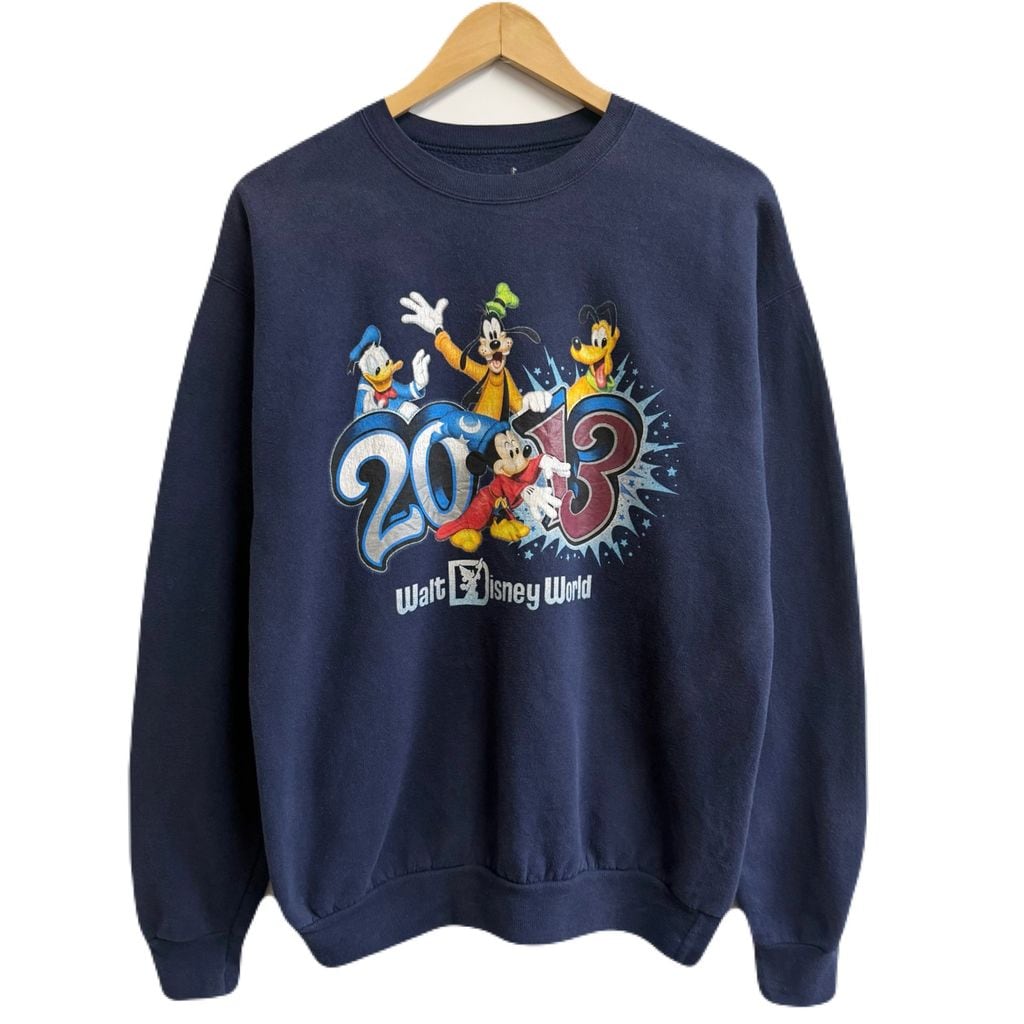 Hanes ヘインズ Disney ディズニー ウォルトディズニーワールド 2013 ミッキー ドナルド グーフィー プルート トレーナー スウェット 紺 ネイビー Mサイズ No.L847