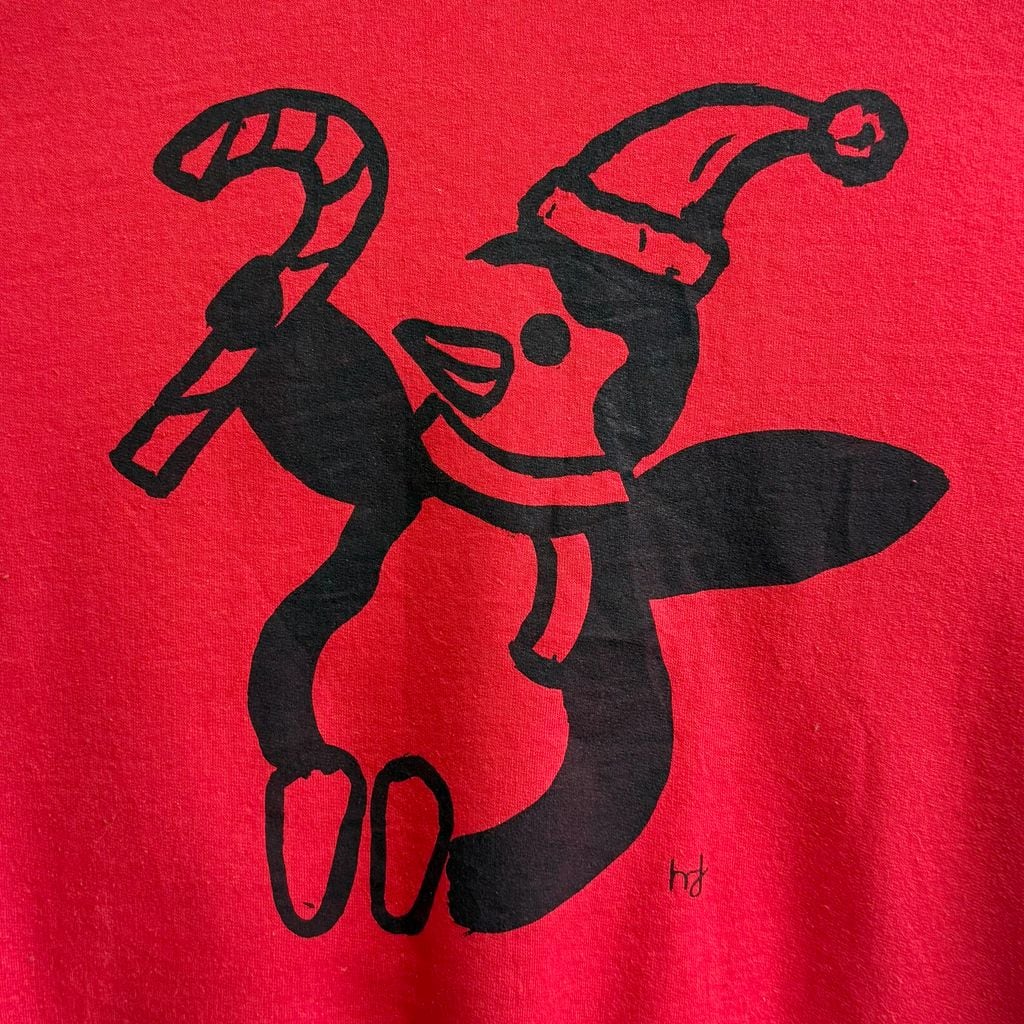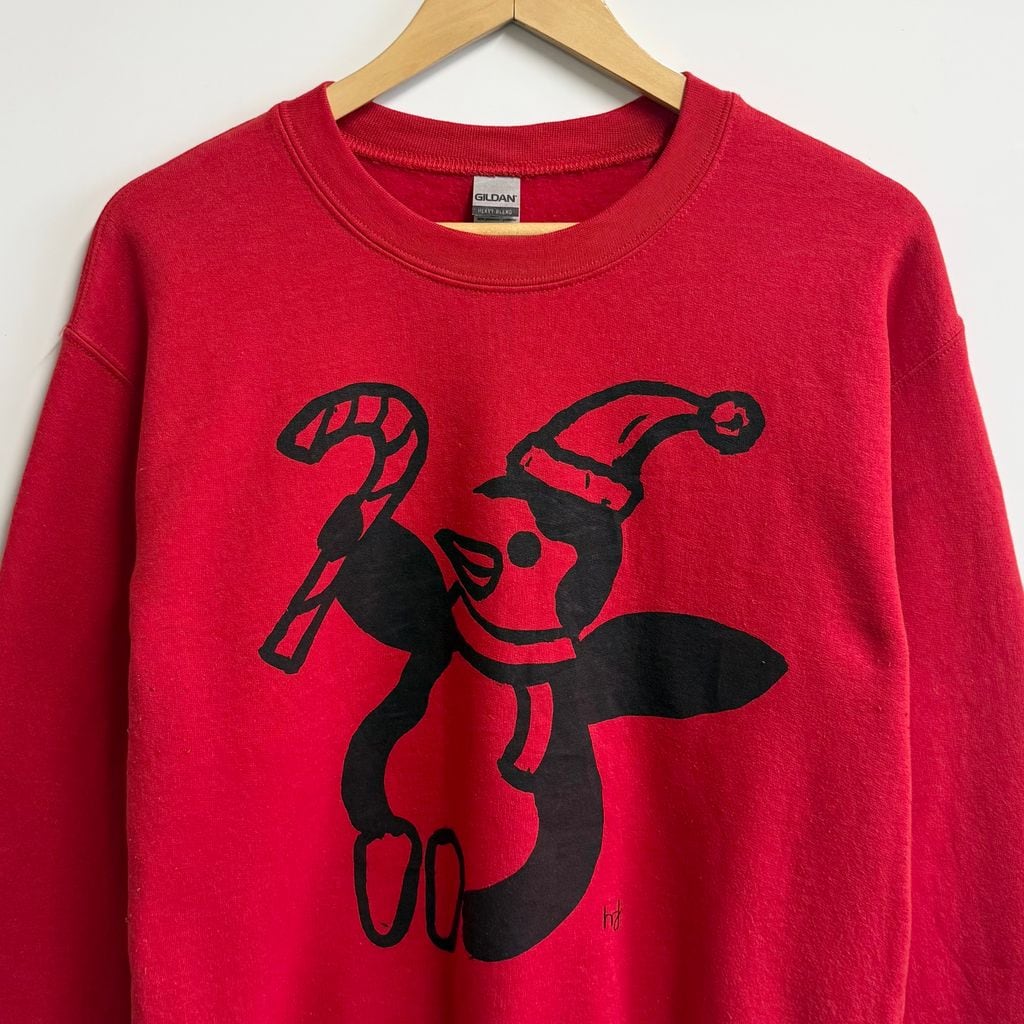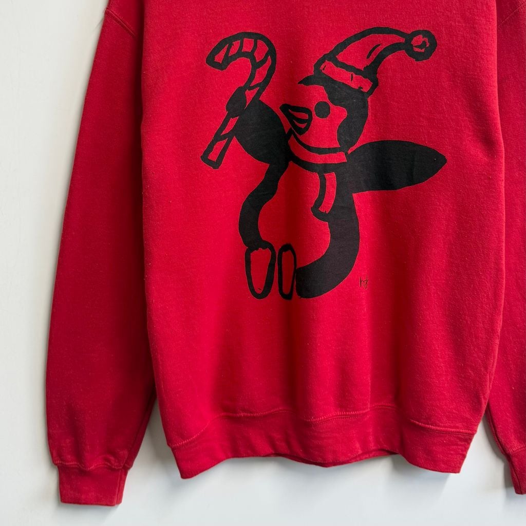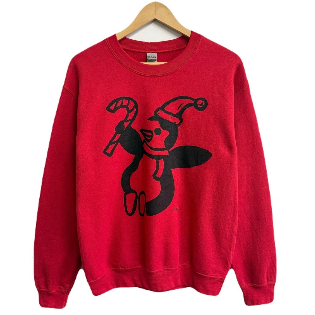 GILDAN ギルダン フロントプリント ペンギン クリスマス イラスト アニマルプリント トレーナー スウェット 裏起毛 赤 レッド Sサイズ No.L848