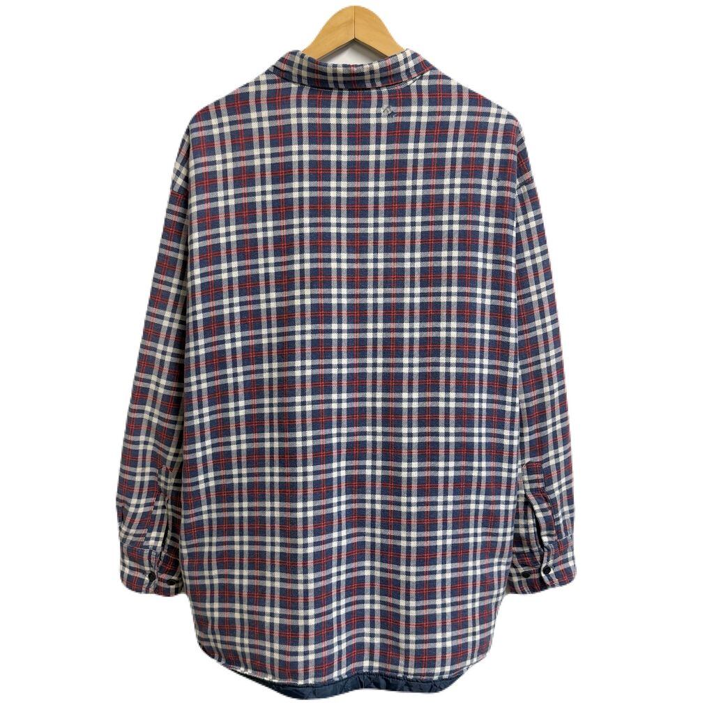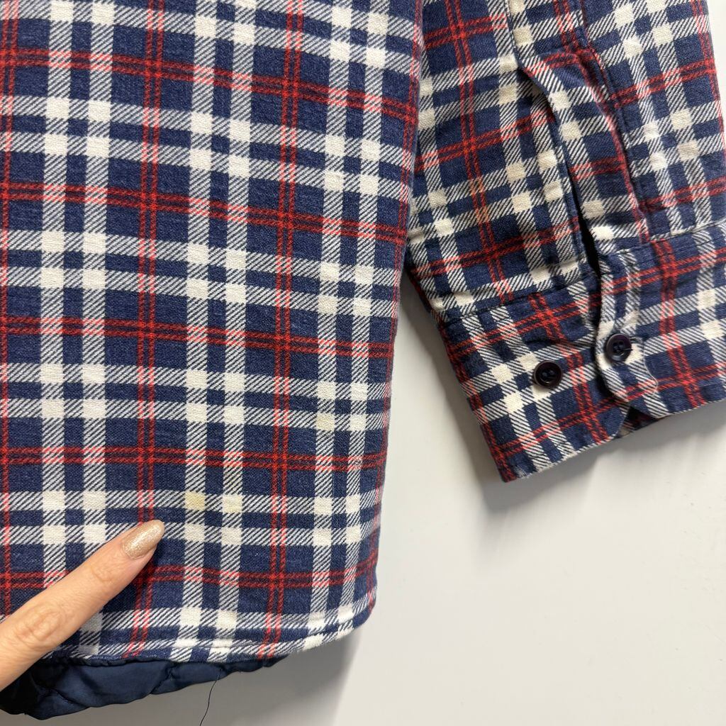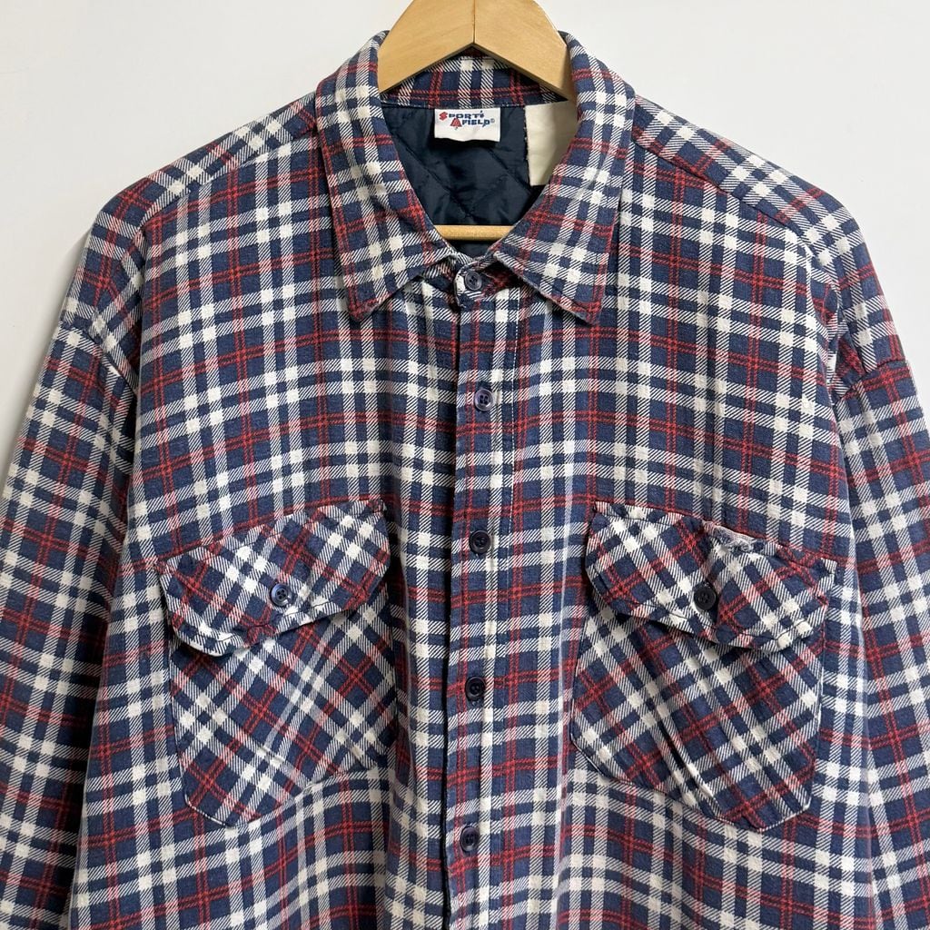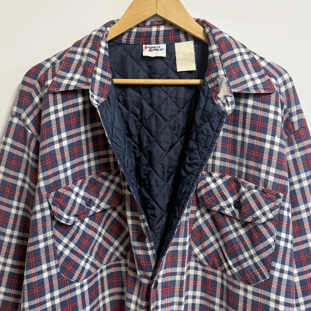 SPORTS AFIELD キルティングライニング シャツジャケット フランネルシャツ チェック柄 ポケット付き 厚手長袖シャツ 白×紺×赤 No.L854