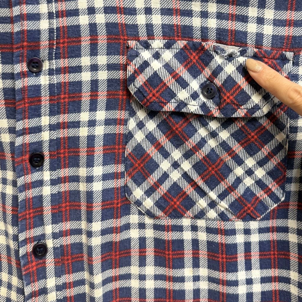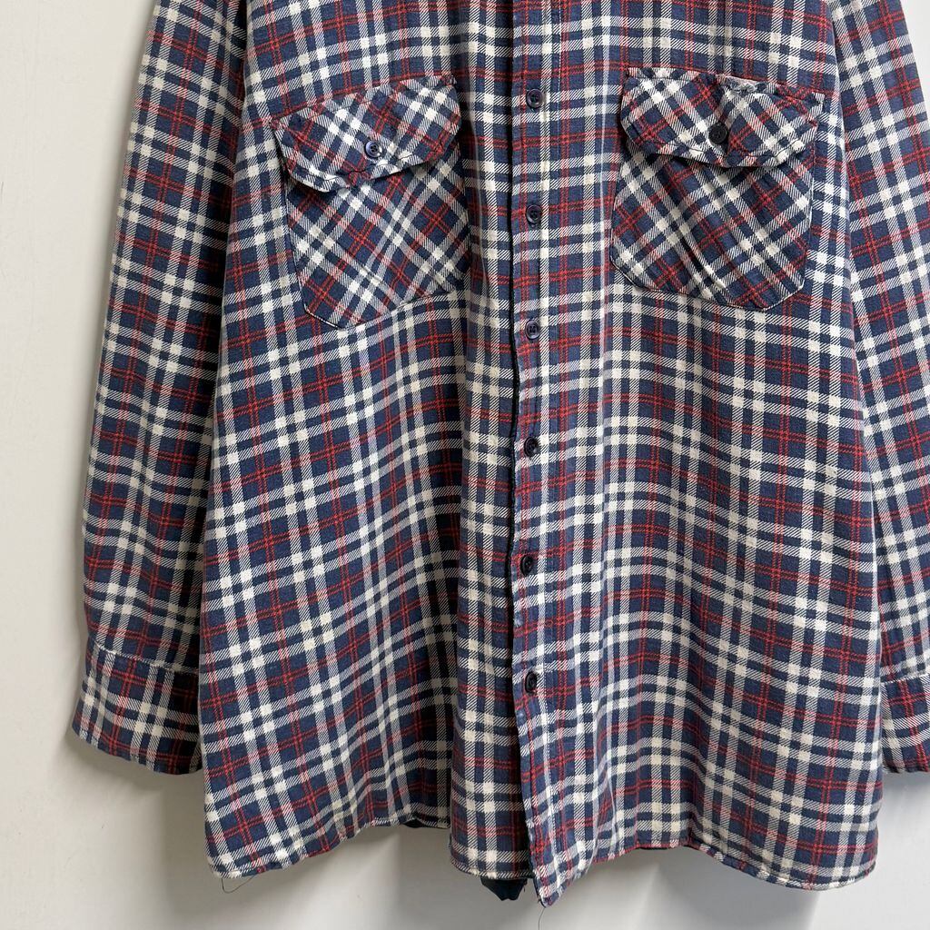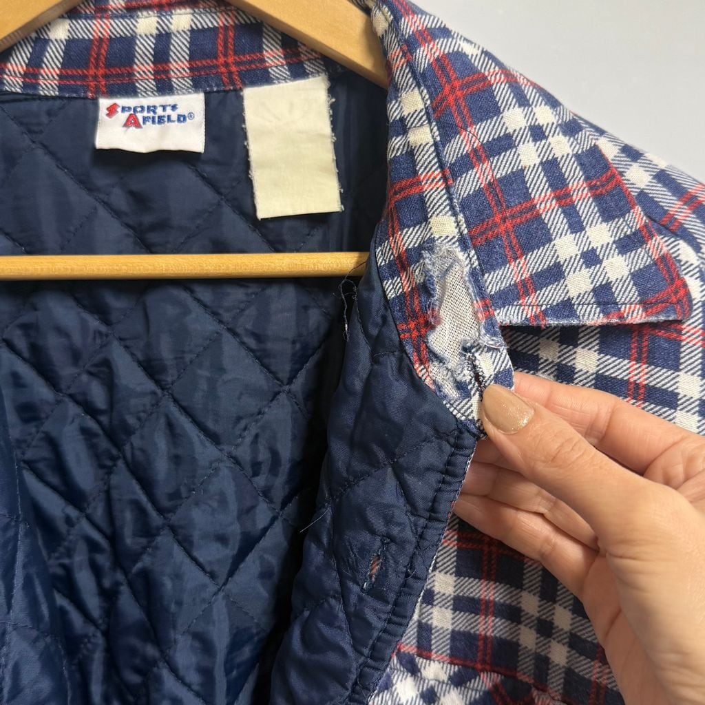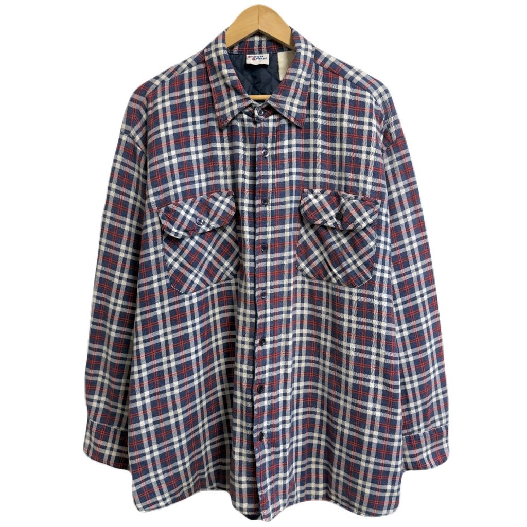 SPORTS AFIELD キルティングライニング シャツジャケット フランネルシャツ チェック柄 ポケット付き 厚手長袖シャツ 白×紺×赤 No.L854