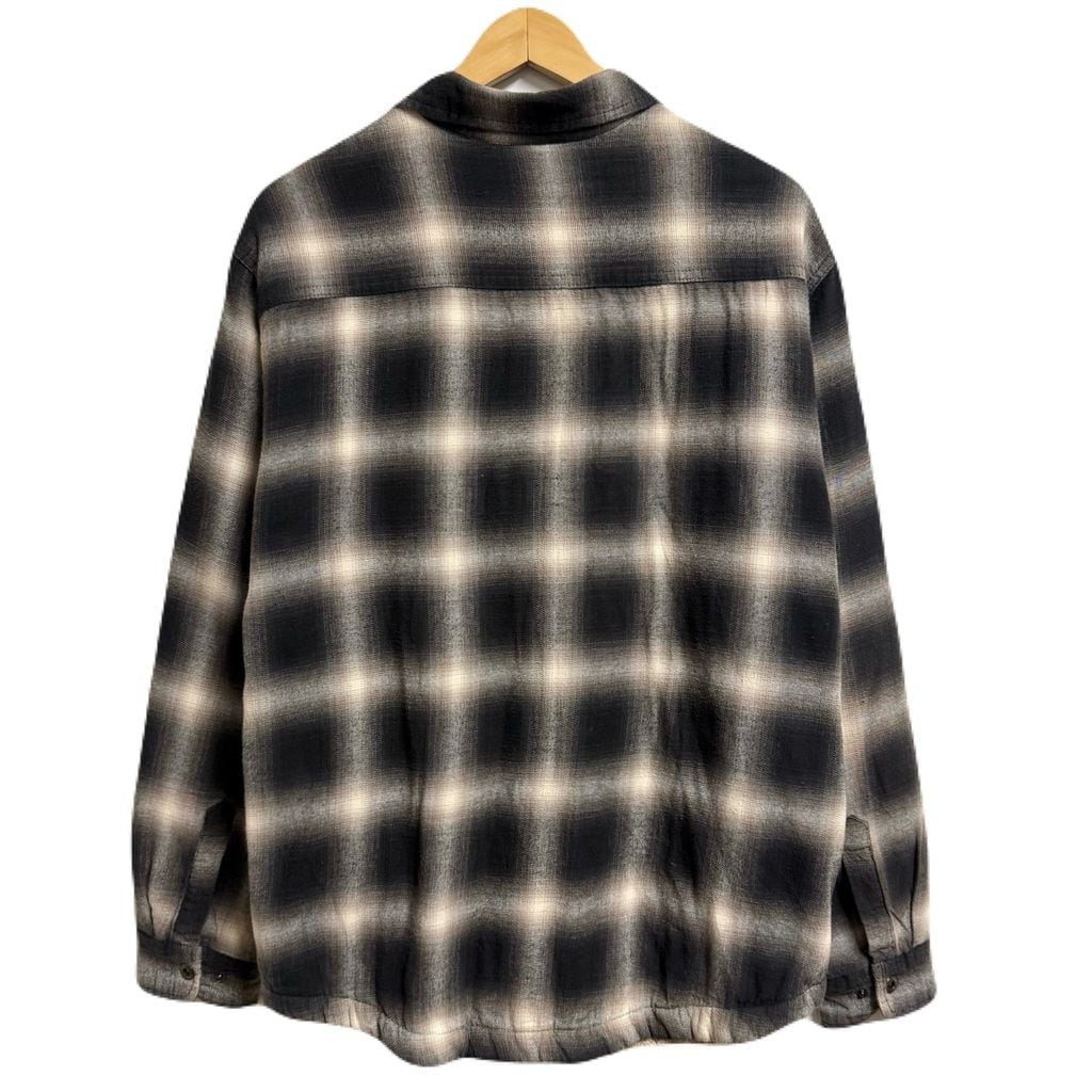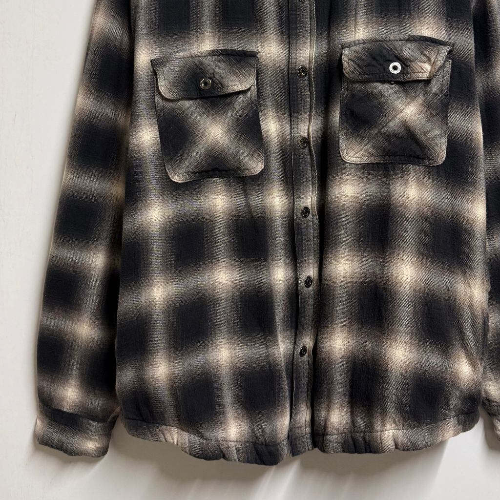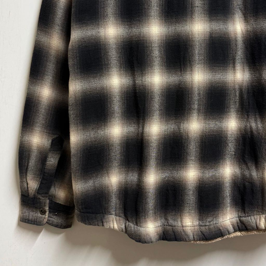 GRIZZLY MOUNTAIN 裏ボア フランネルシャツジャケット スナップボタン コットンシャツ オンブレチェック柄 厚手長袖シャツ 黒×ベージュ XLサイズ No.L857