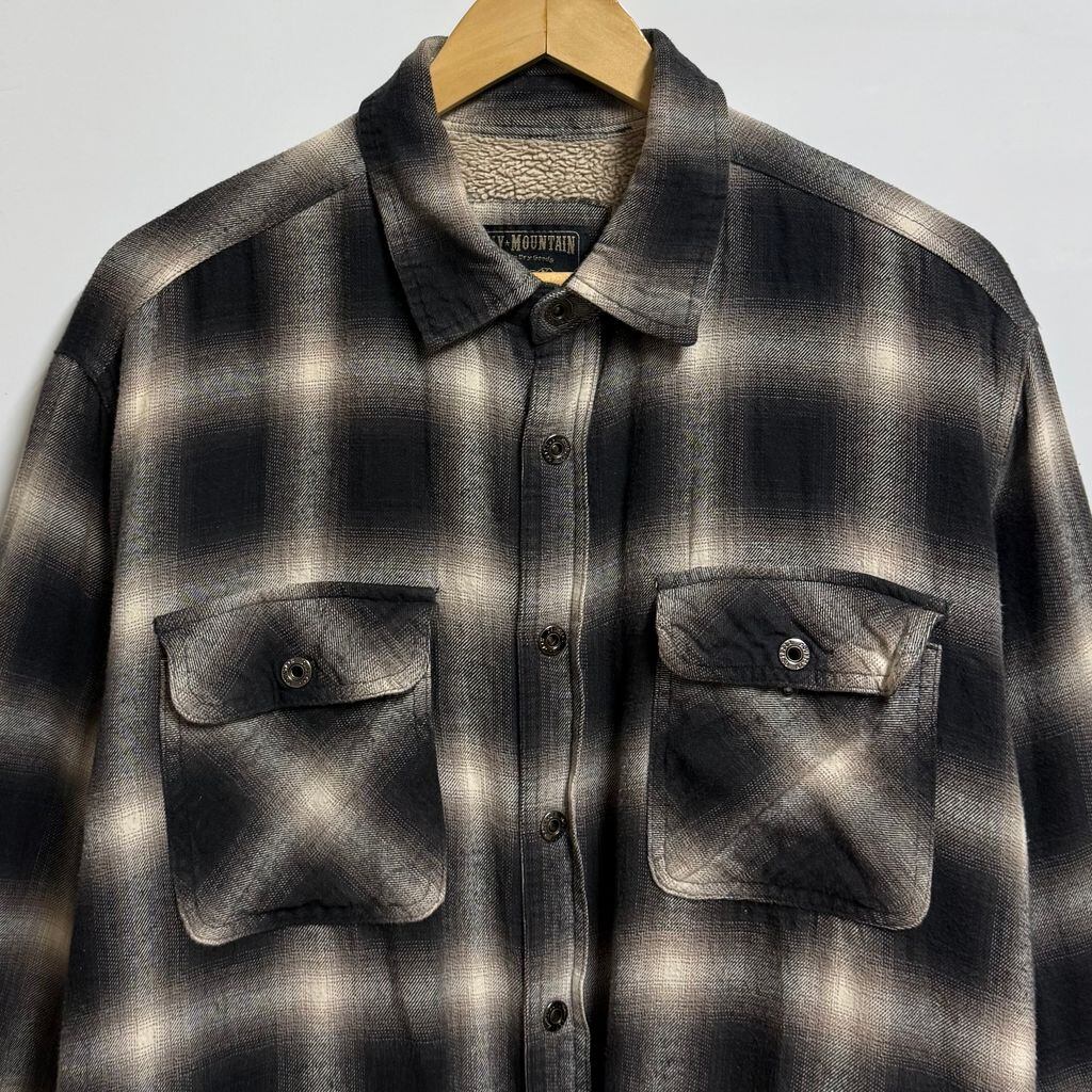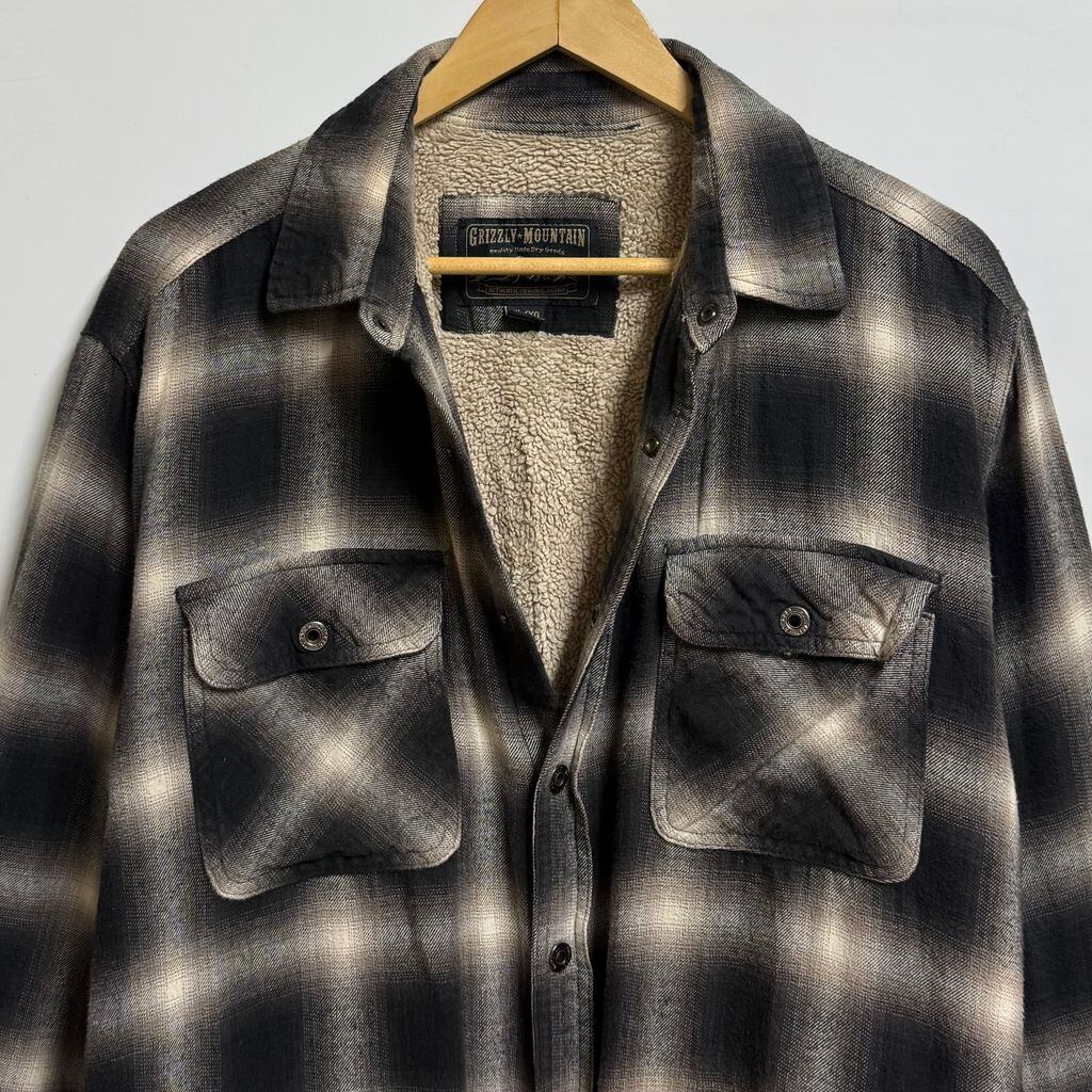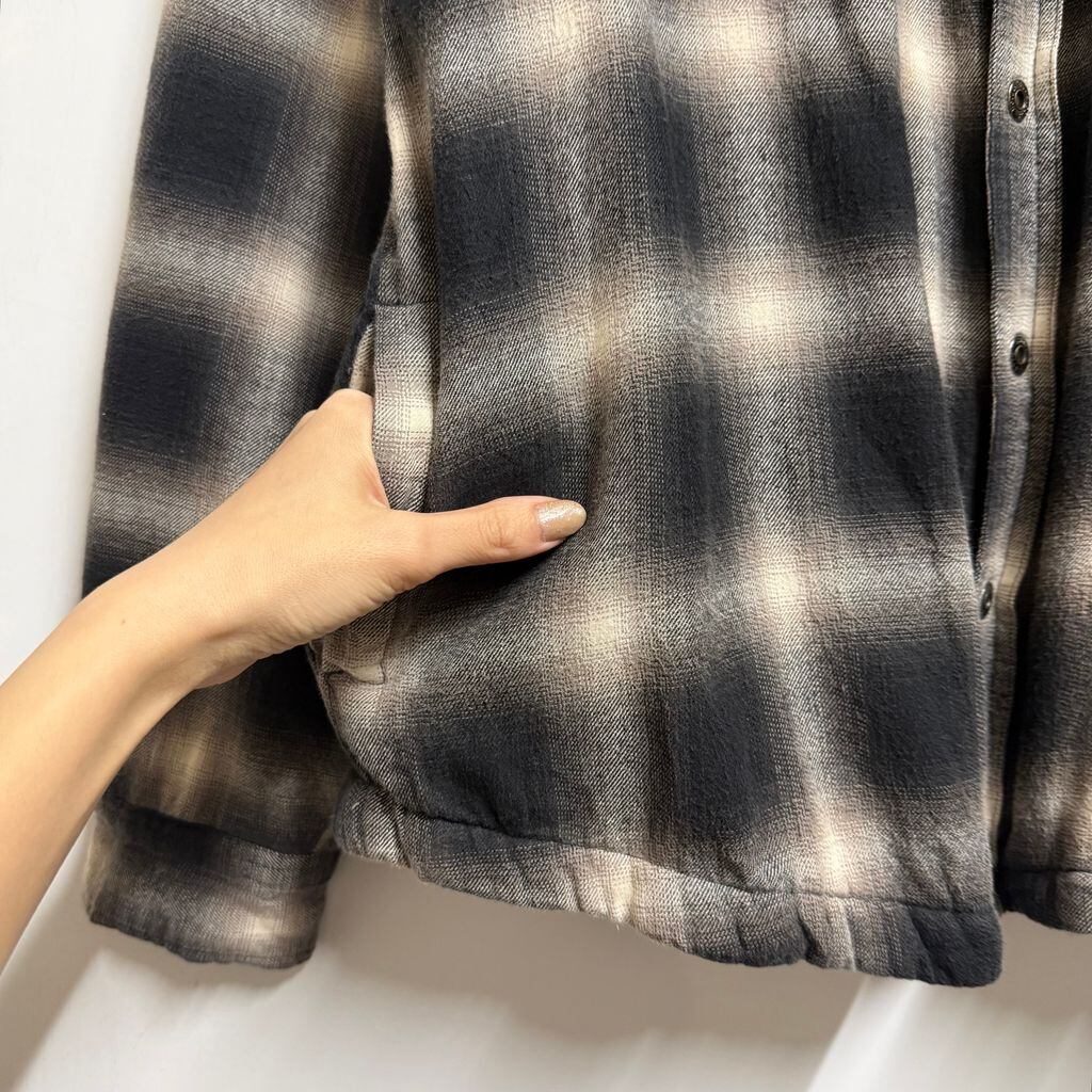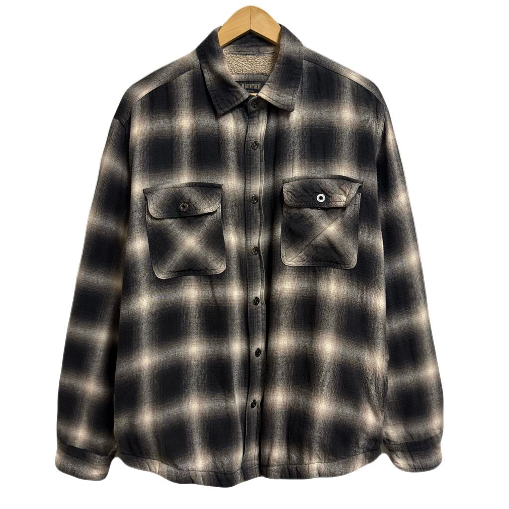 GRIZZLY MOUNTAIN 裏ボア フランネルシャツジャケット スナップボタン コットンシャツ オンブレチェック柄 厚手長袖シャツ 黒×ベージュ XLサイズ No.L857