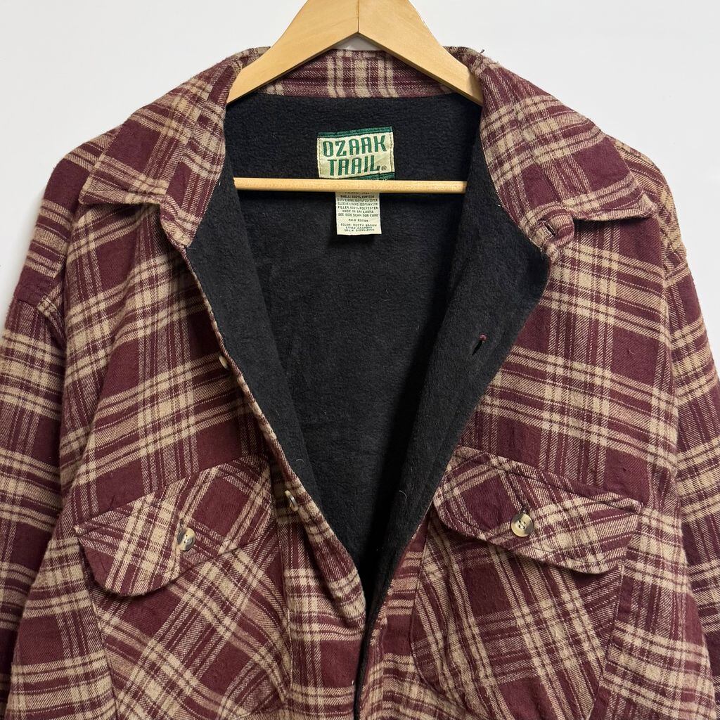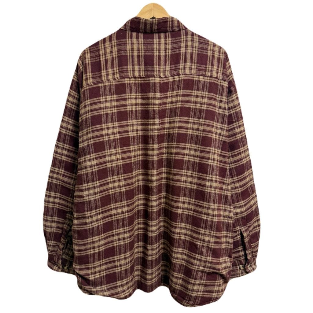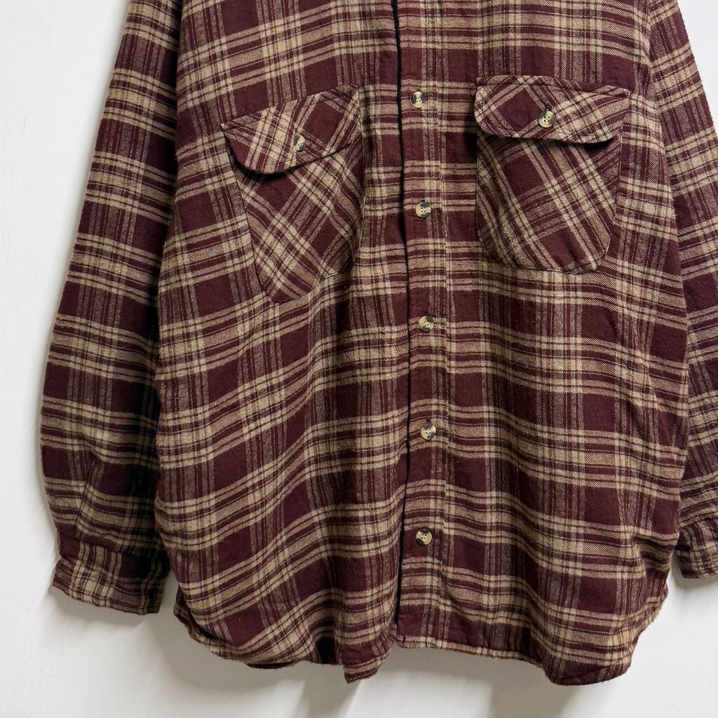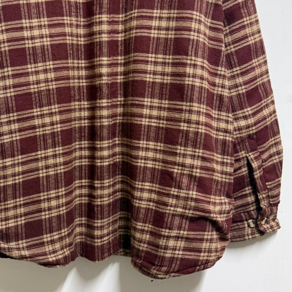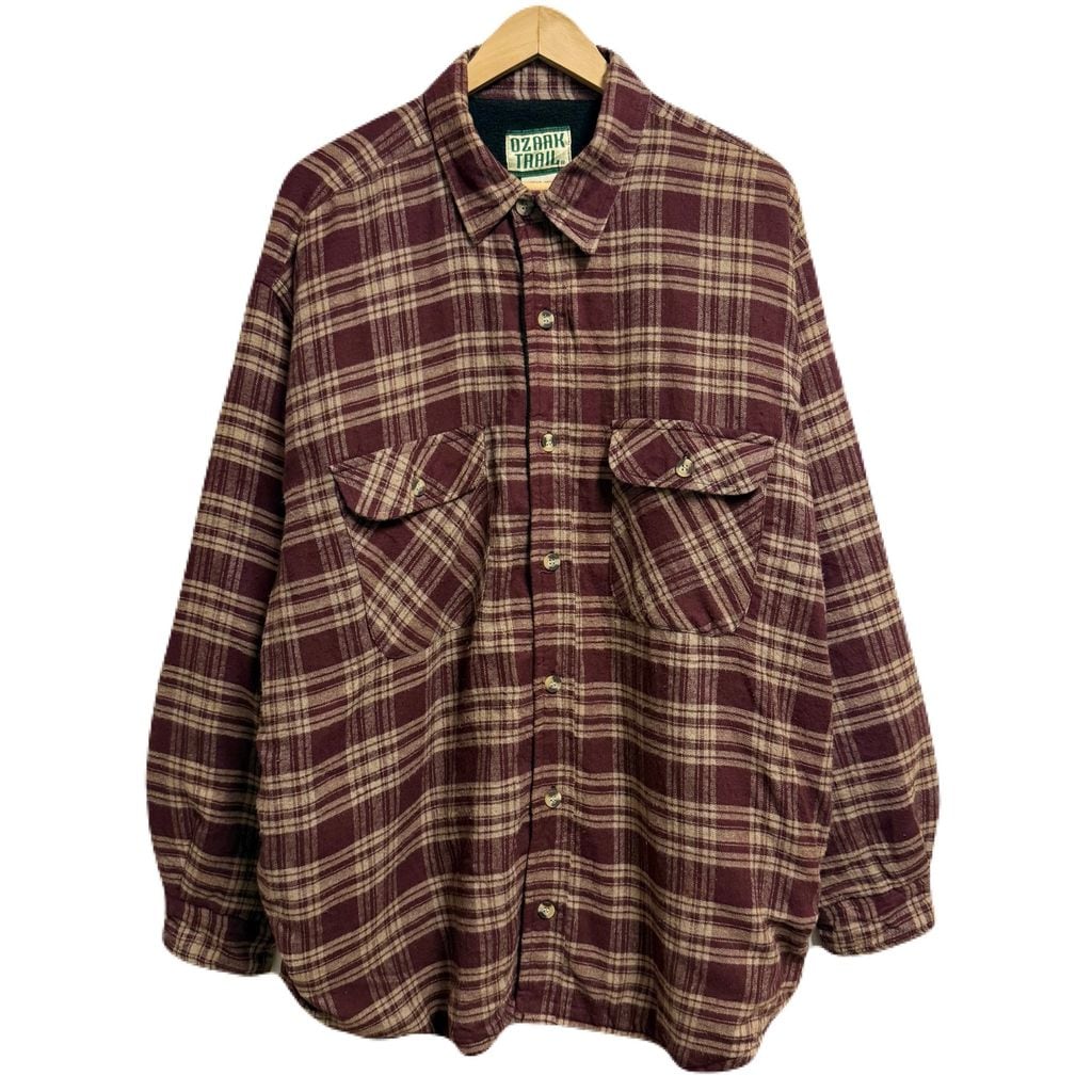 OZARK TRAIL 裏起毛 フランネルシャツジャケット コットンシャツ チェック柄 ポケット付き 厚手長袖シャツ ワインレッド×ベージュ XLサイズ No.L858