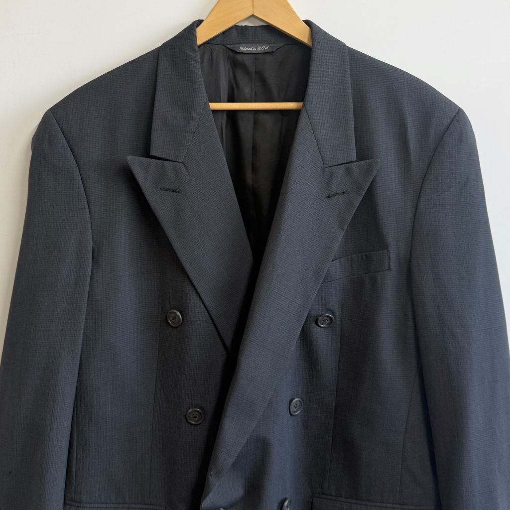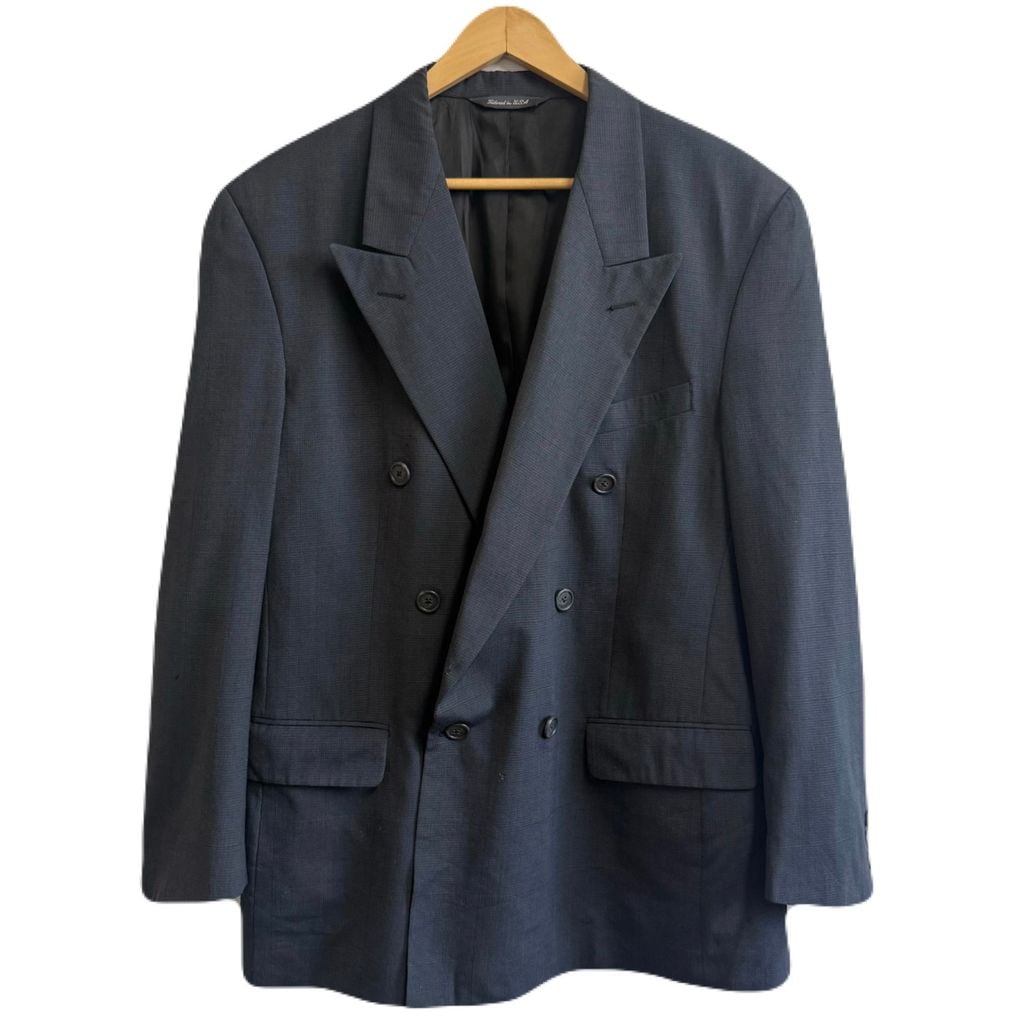 USA製 Christian Dior クリスチャンディオール MONSIEUR ムッシュ ダブルブレスト テーラードジャケット ブレザー チェック柄 ノーベント 紺 ネイビー No.L864