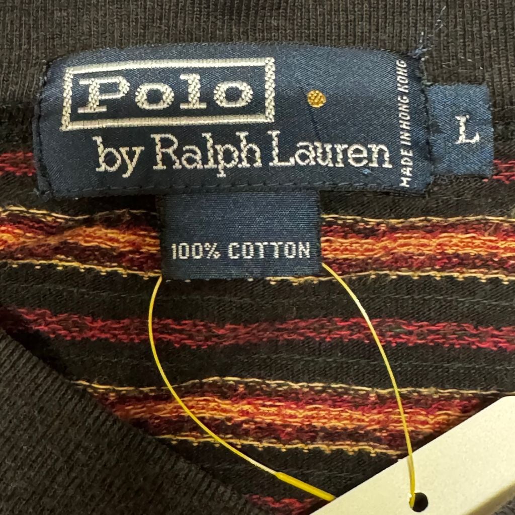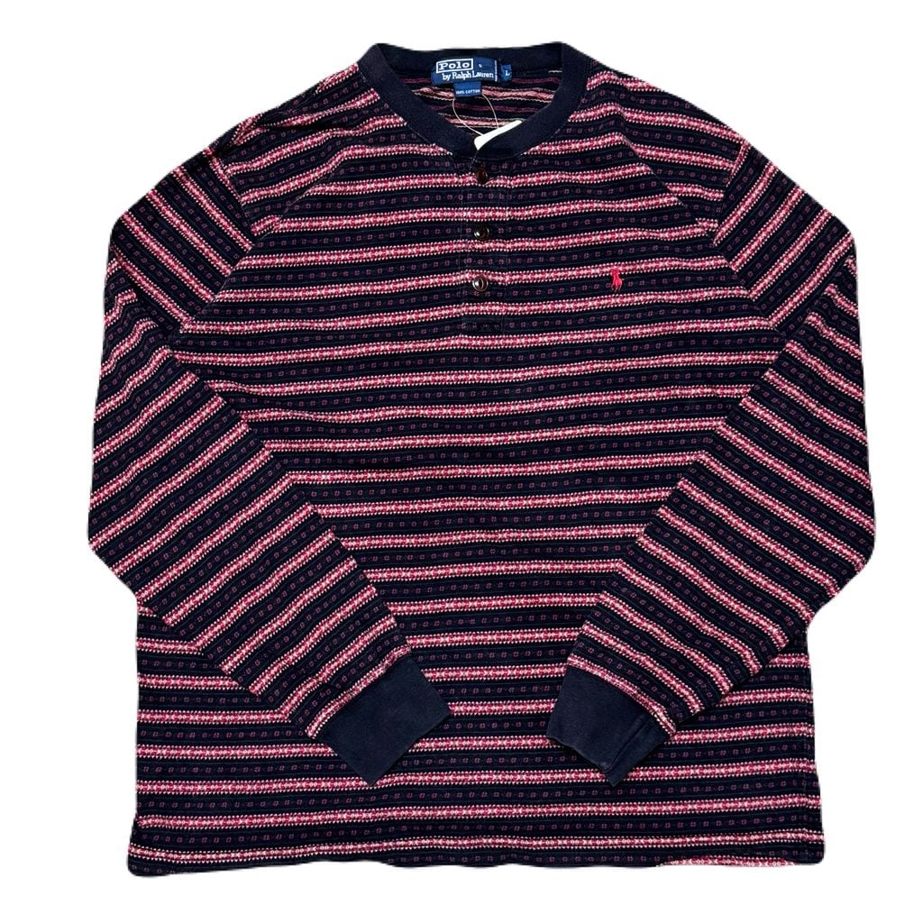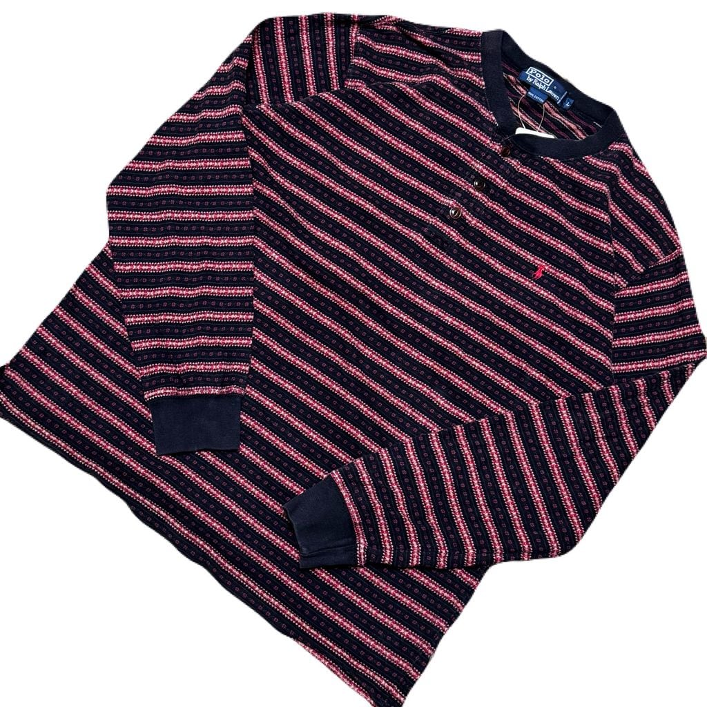 90s Polo by Ralph Lauren ヘンリーネック ロングTシャツ ボーダー柄 黒×赤 Lサイズ No.EA20