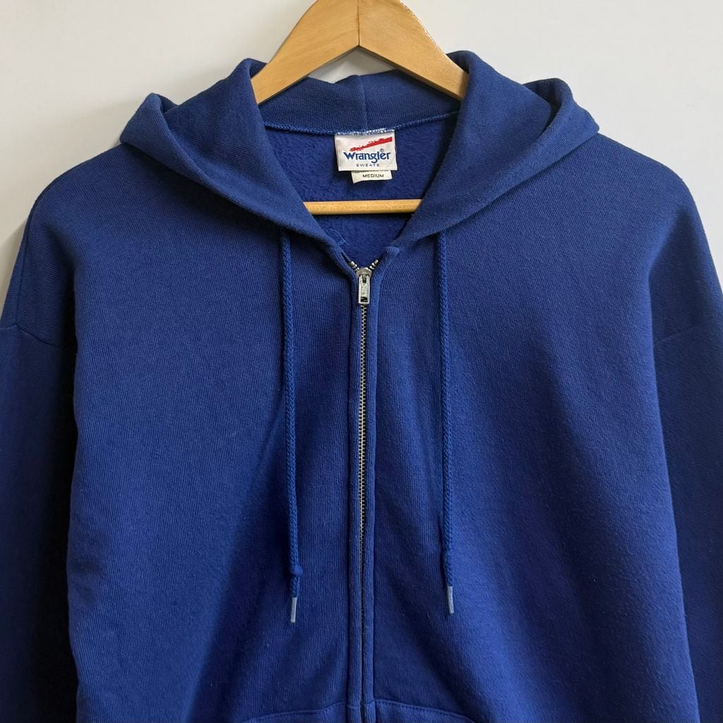 USA製 Wrangler ラングラー フルジップパーカー ジップアップフーディー 裏起毛 無地 青 ブルー Mサイズ No.L870
