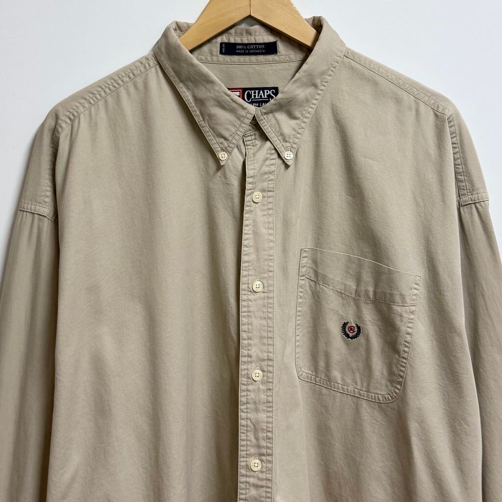 CHAPS チャップス RALPH LAUREN ラルフローレン ボタンダウンシャツ コットンシャツ ポケット付き 長袖シャツ ワンポイントロゴ 刺繍 ベージュ XXLサイズ No.L879