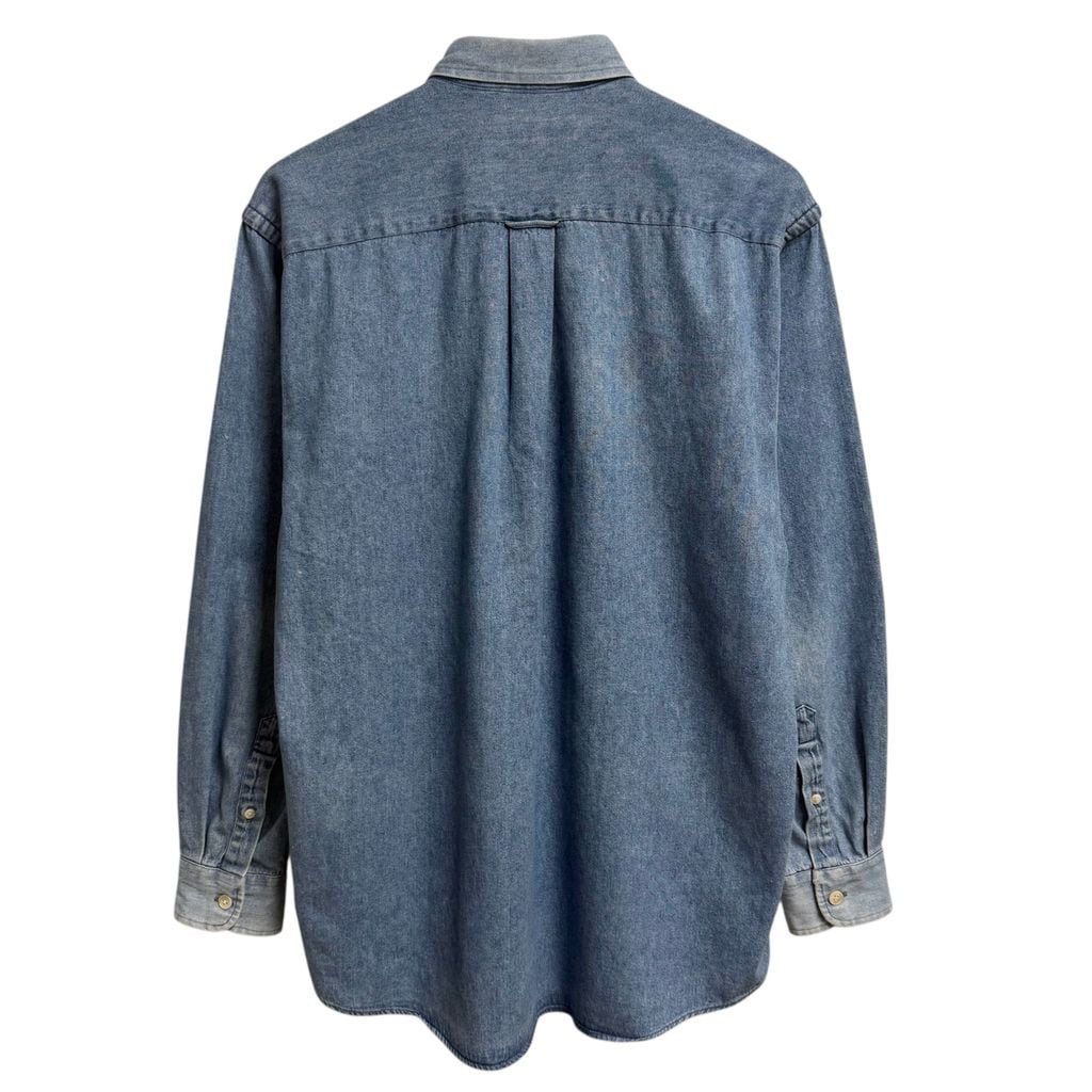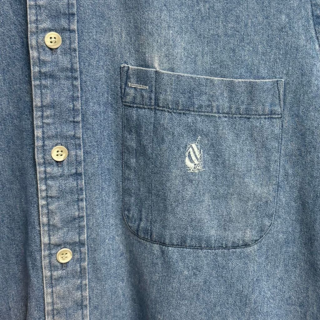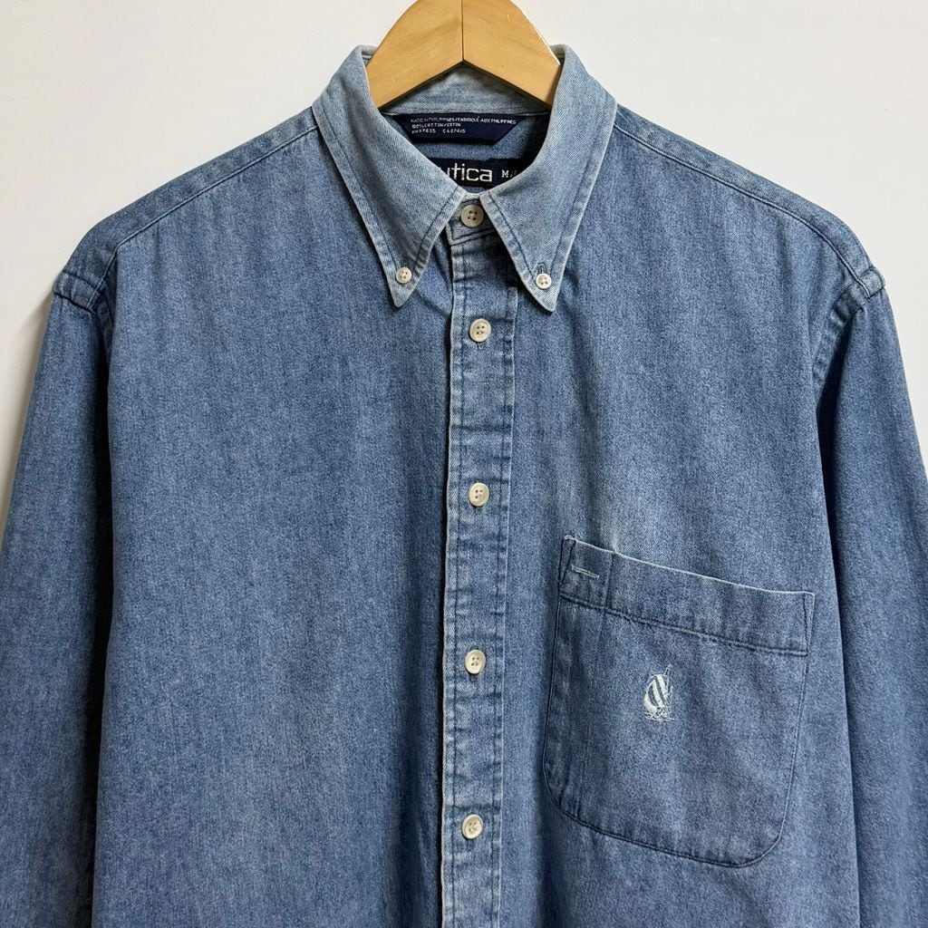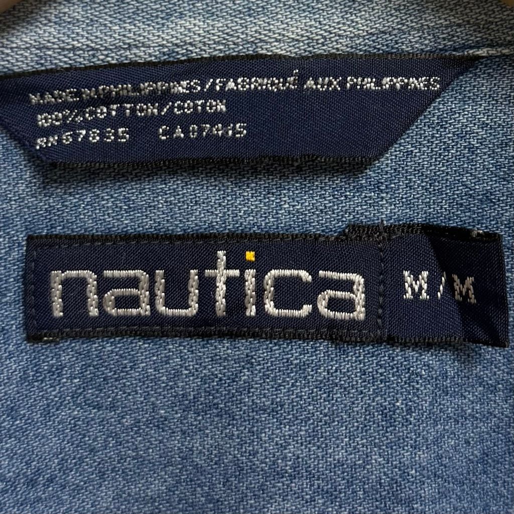 nautica ノーティカ デニムシャツ ボタンダウンシャツ コットンシャツ ポケット付き 長袖シャツ ワンポイントロゴ 刺繍 青 ブルー Mサイズ No.L881