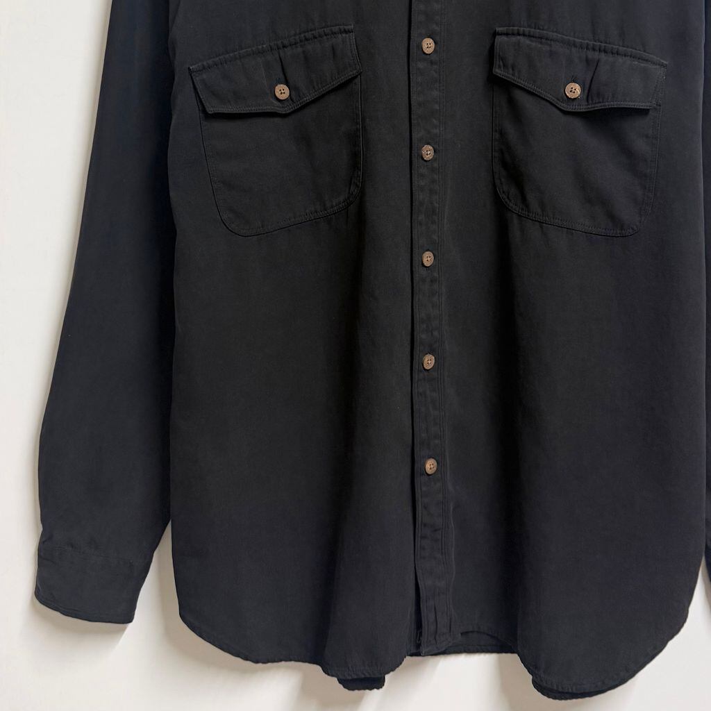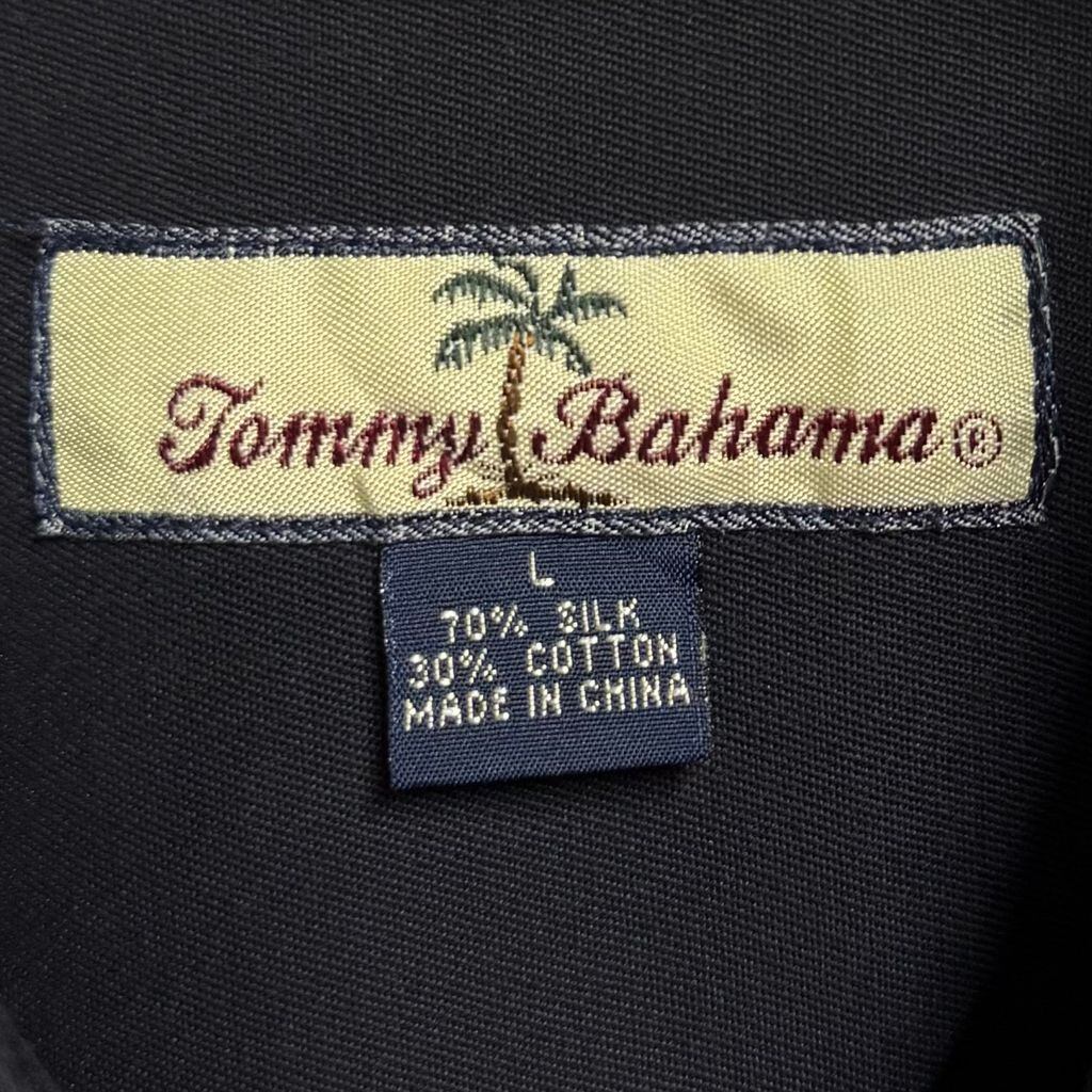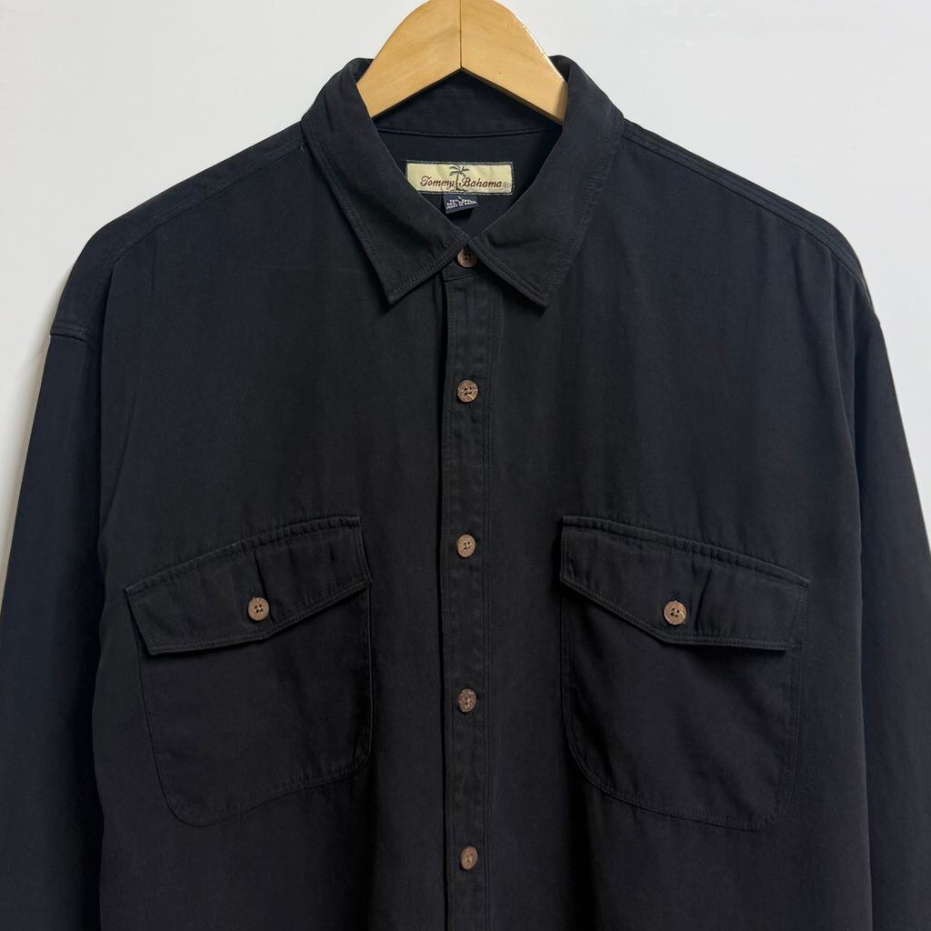 Tommy Bahama トミーバハマ シルク×コットンシャツ 無地 ポケット付き 長袖シャツ 黒 Lサイズ No.L883