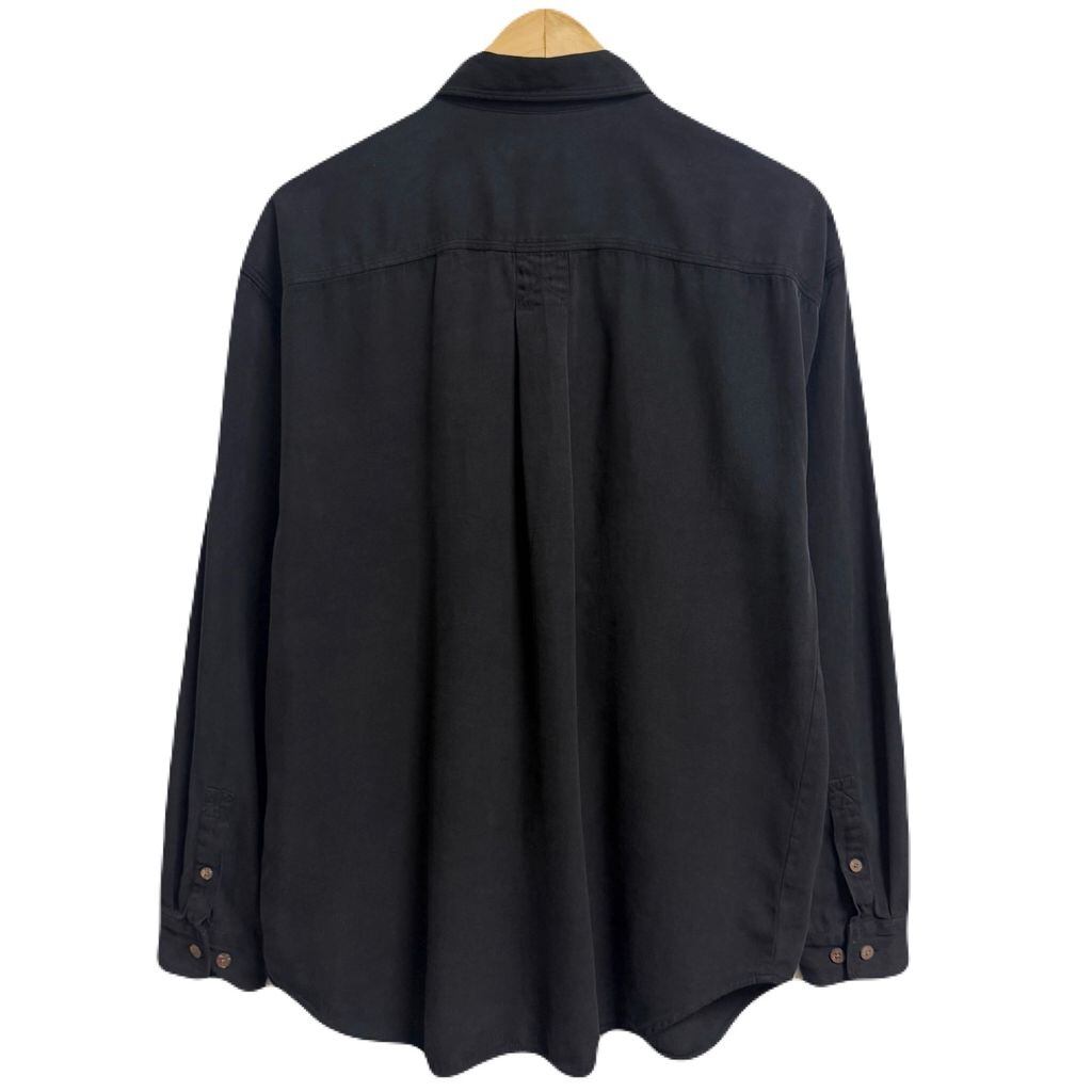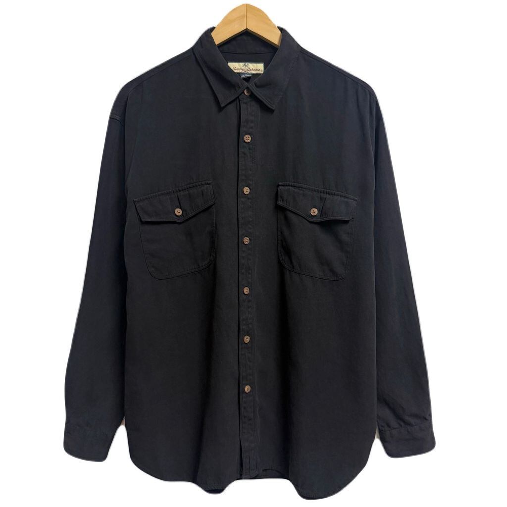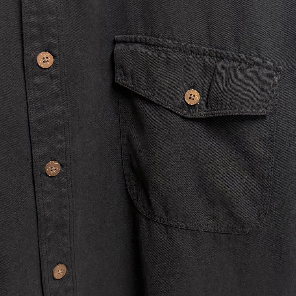 Tommy Bahama トミーバハマ シルク×コットンシャツ 無地 ポケット付き 長袖シャツ 黒 Lサイズ No.L883