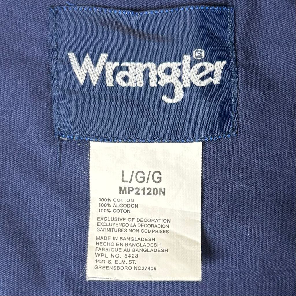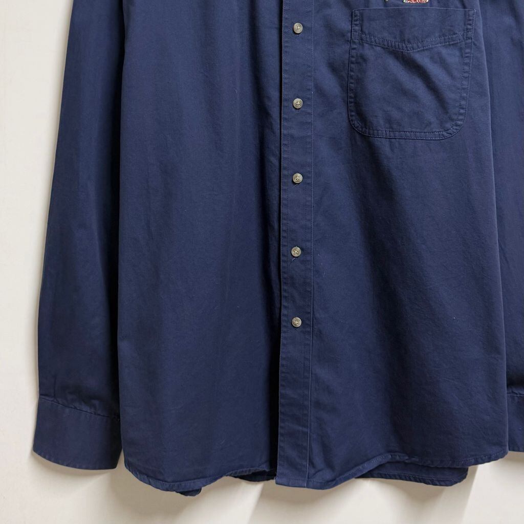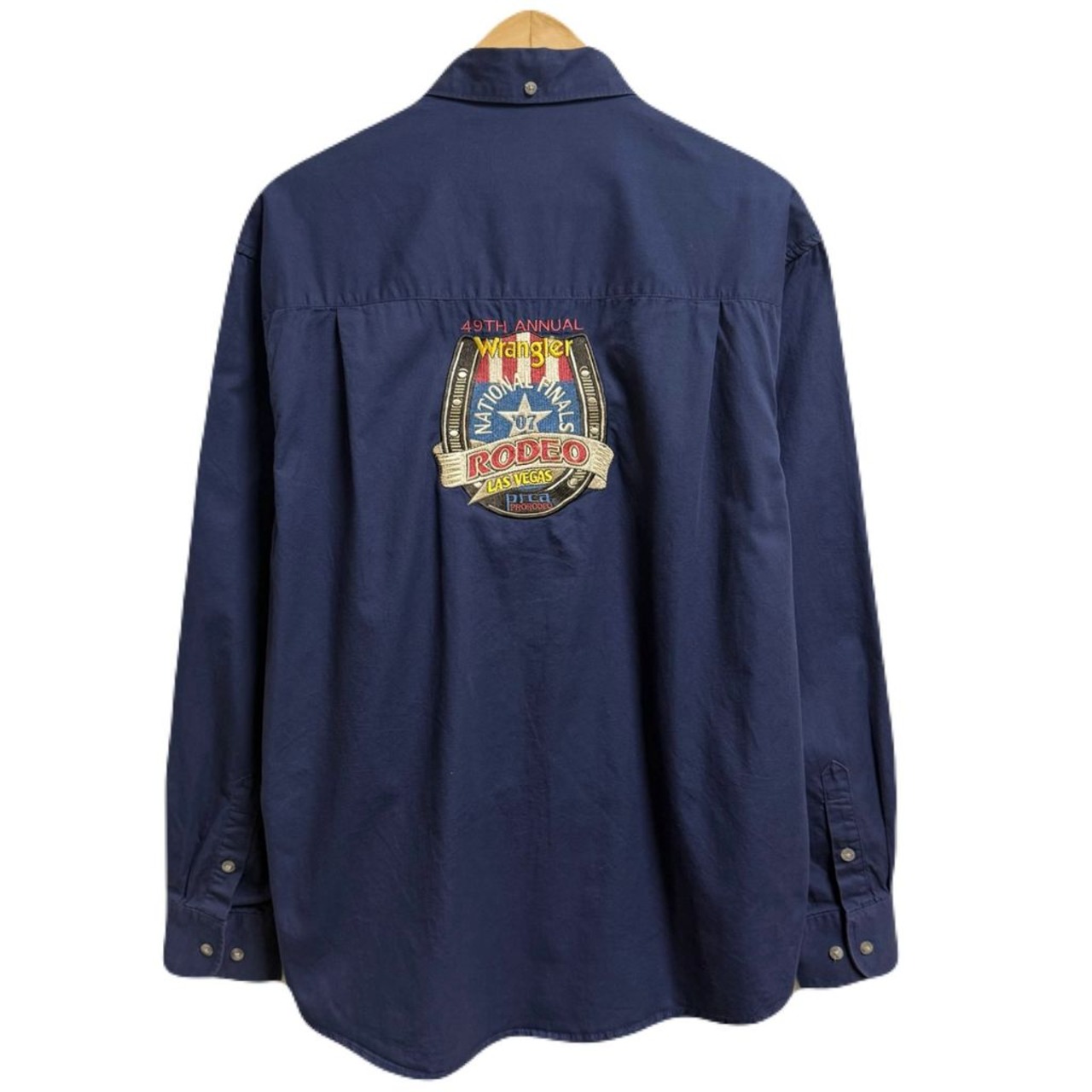 Wrangler ラングラー national finals rodeo ナショナル ファイナルズ ロデオ 2007 ロゴワッペン ボタンダウンシャツ コットンシャツ ポケット付き 長袖シャツ 紺 ネイビー L/Gサイズ No.L884