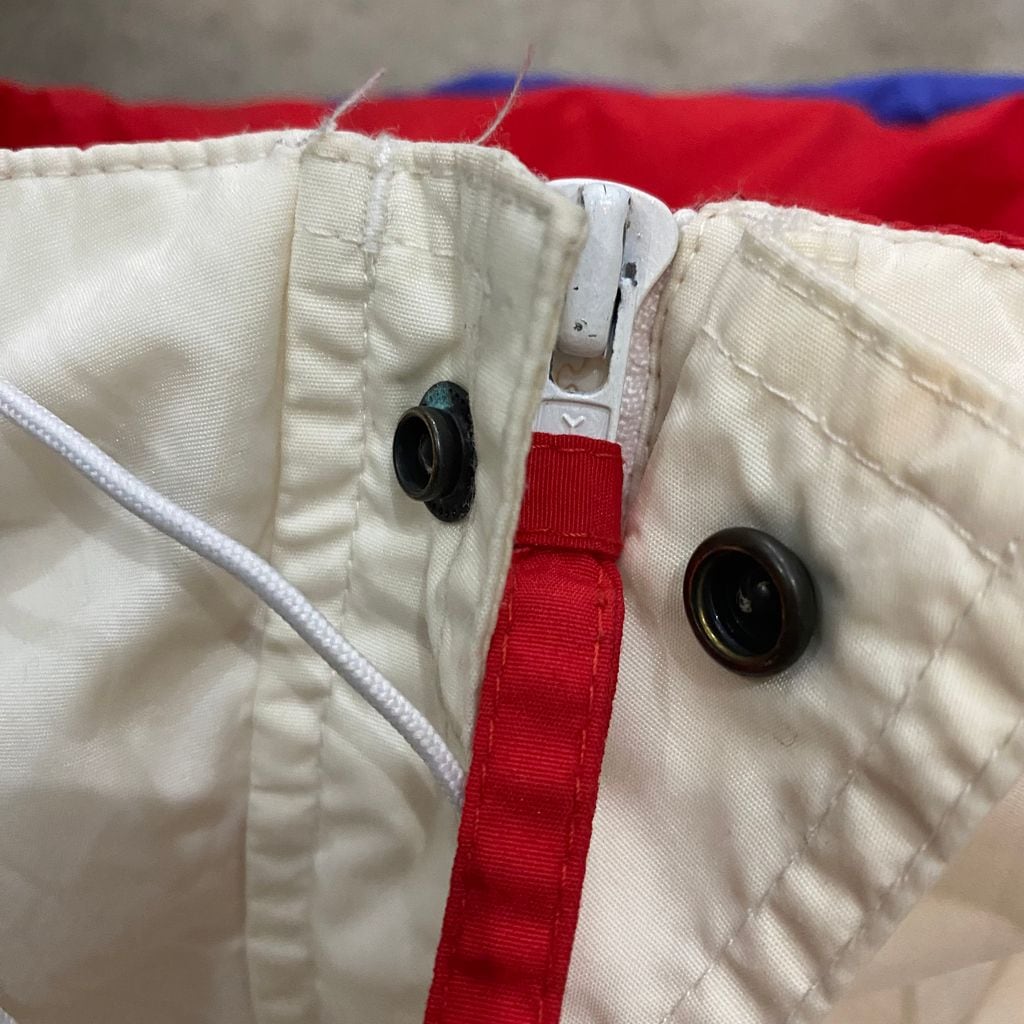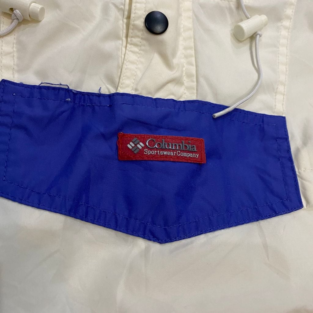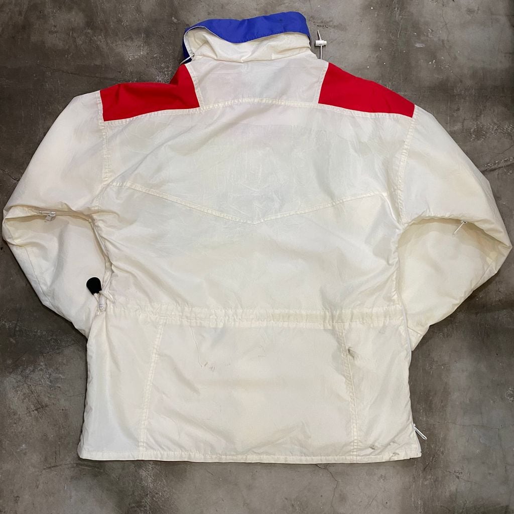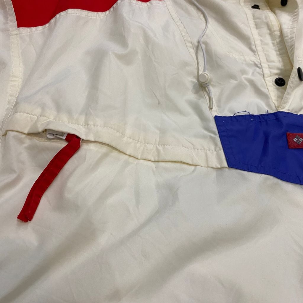 80s 90s Columbia ナイロン アノラックパーカー ダブルジップ 白×赤×青 サイズL No.S053
