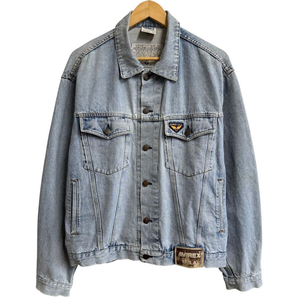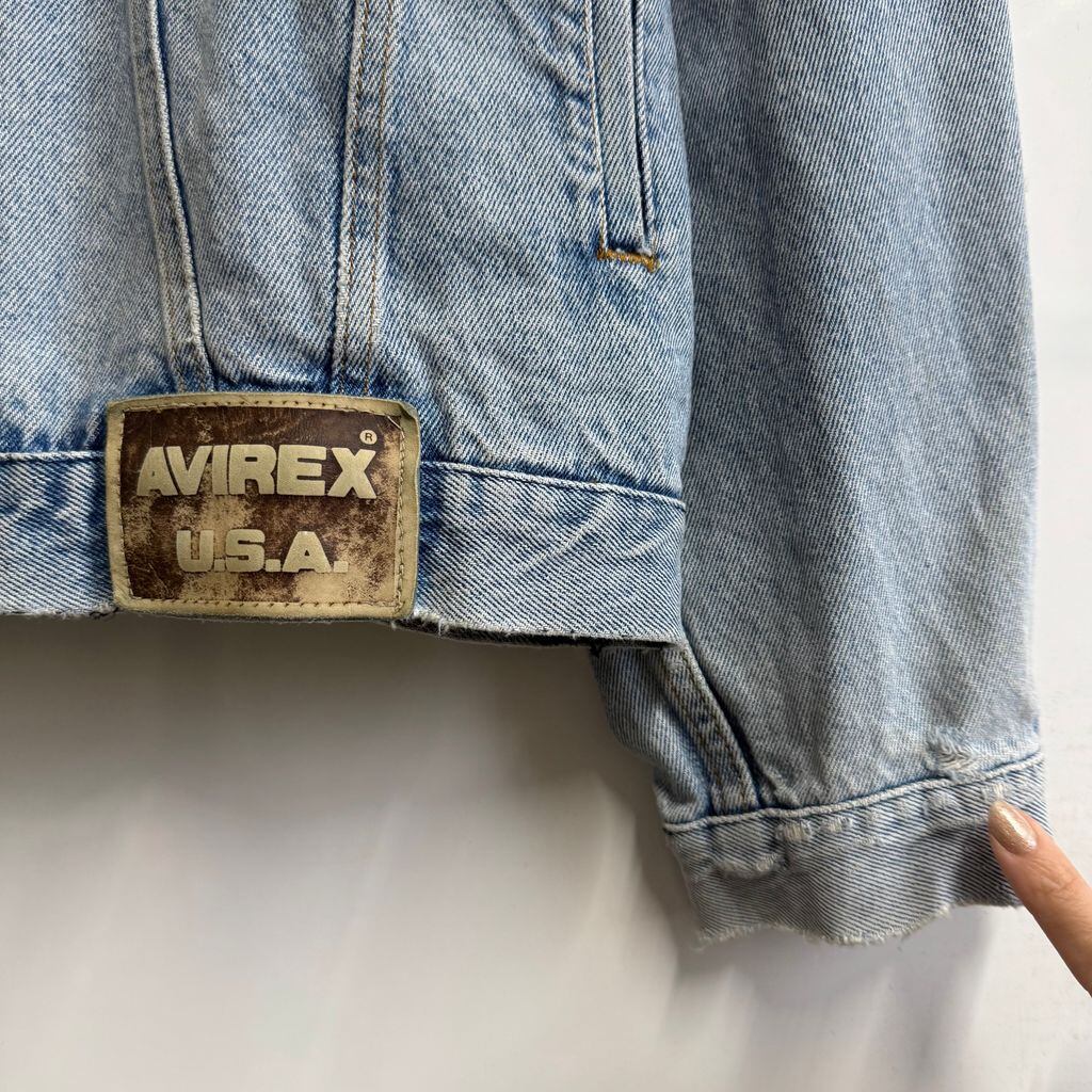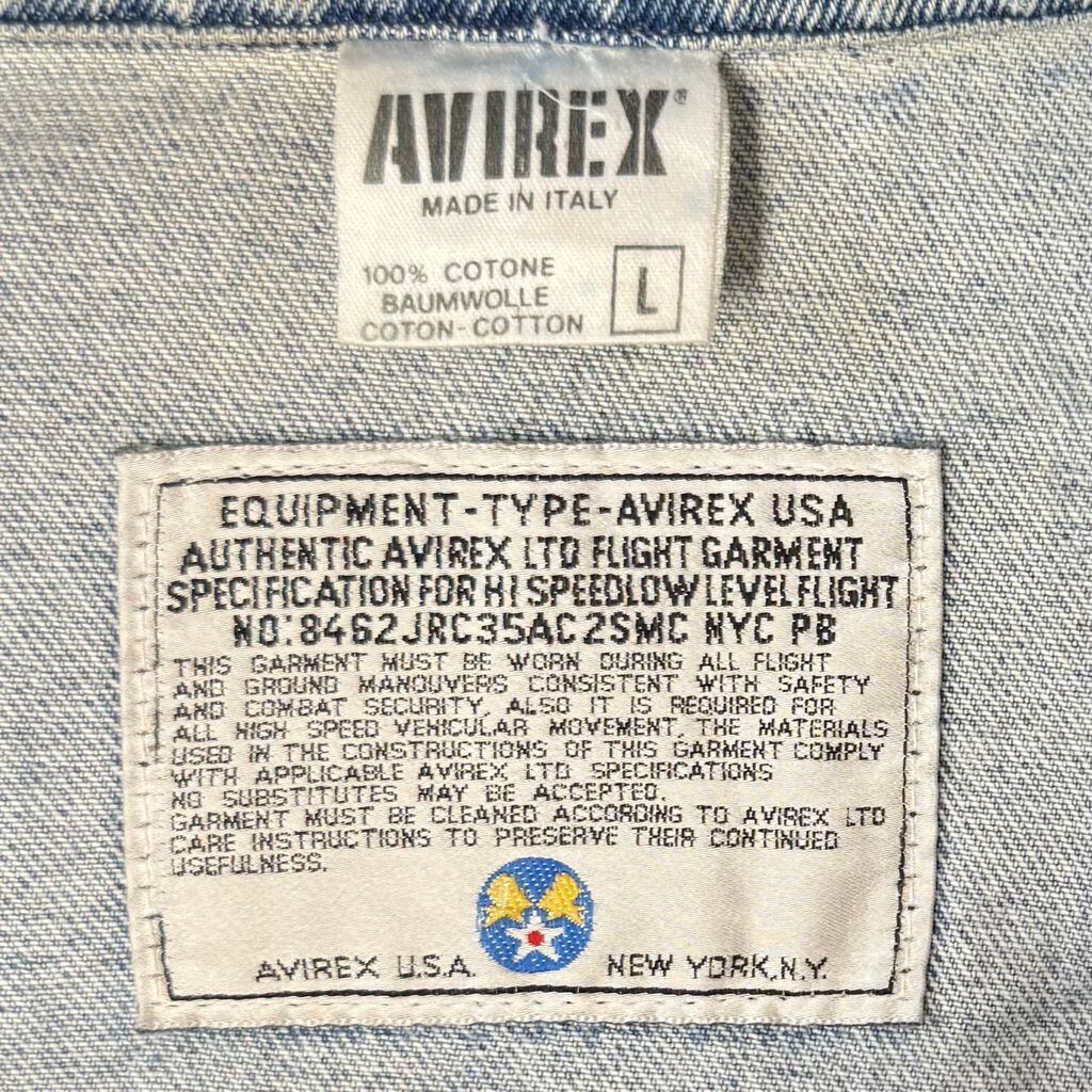 イタリア製 AVIREX アヴィレックス デニムジャケット Gジャン ロゴワッペン ライトブルー 青 Lサイズ No.L888