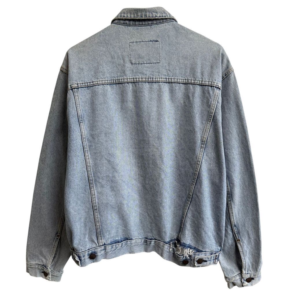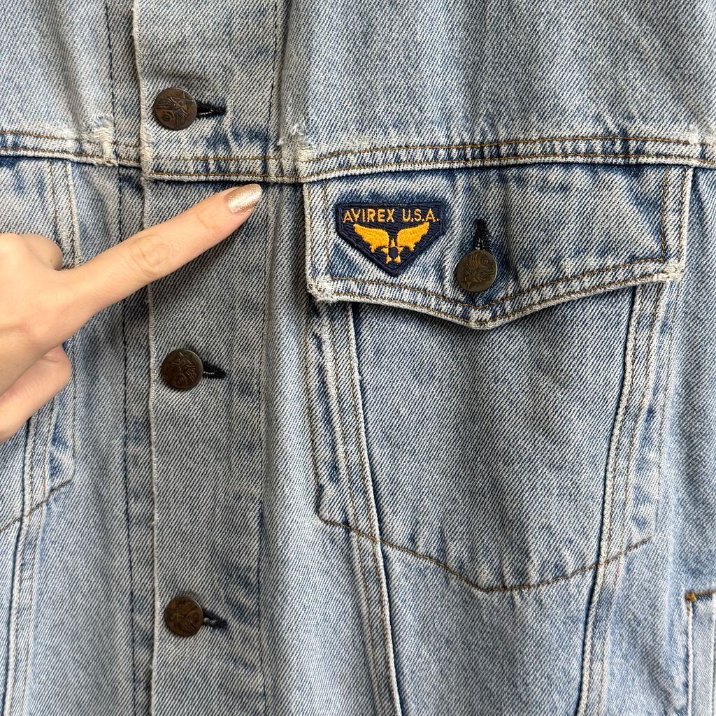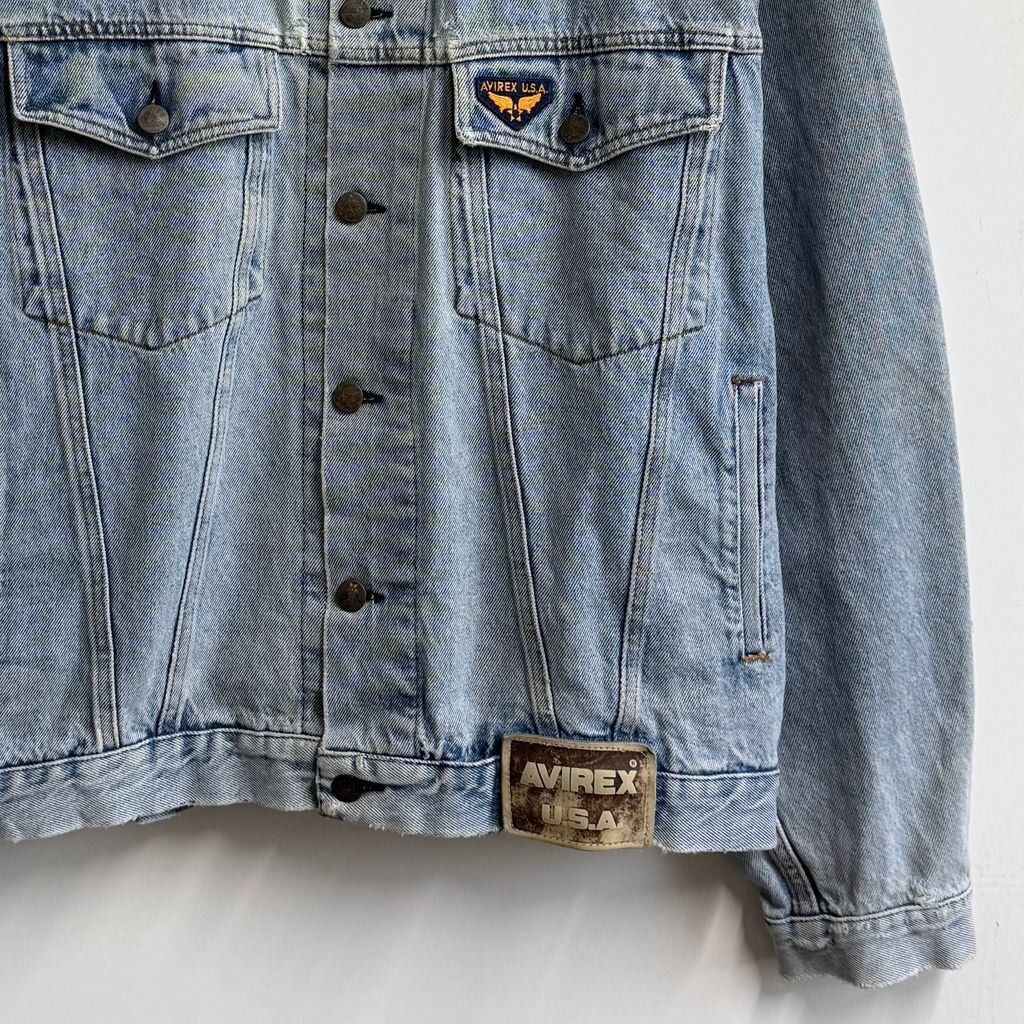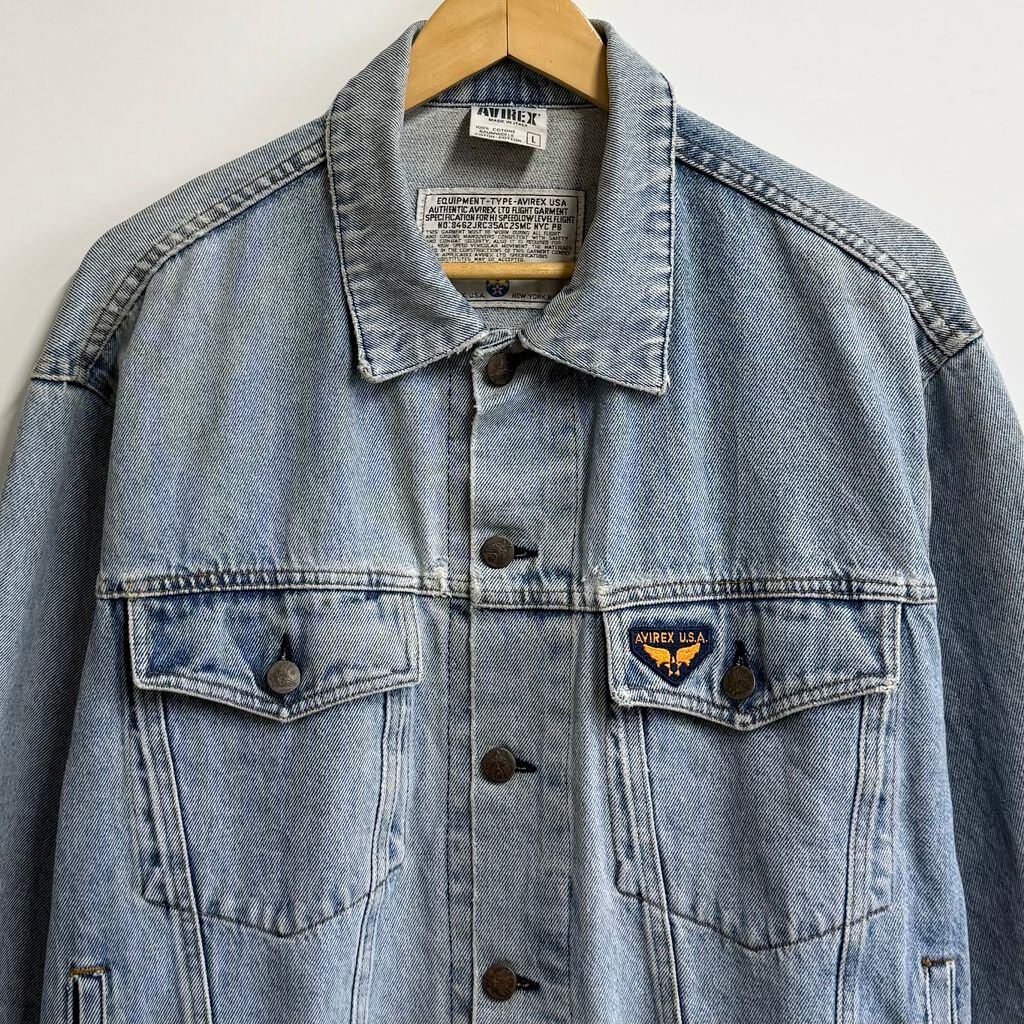 イタリア製 AVIREX アヴィレックス デニムジャケット Gジャン ロゴワッペン ライトブルー 青 Lサイズ No.L888