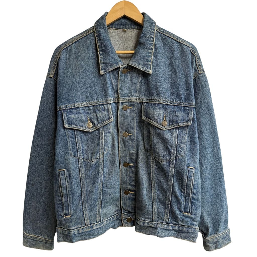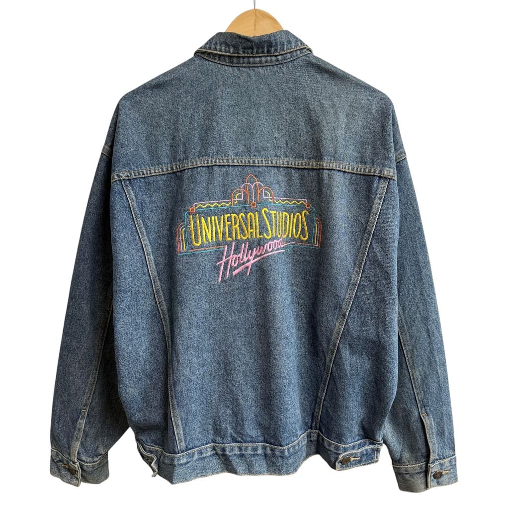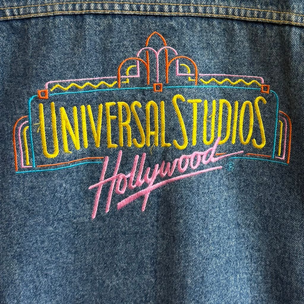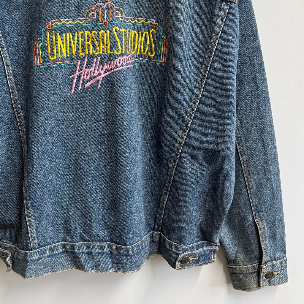 UNIVERSAL STUDIOS Hollywood ユニバーサルスタジオハリウッド 刺繍入り デニムジャケット Gジャン 青 ブルー Lサイズ No.L889