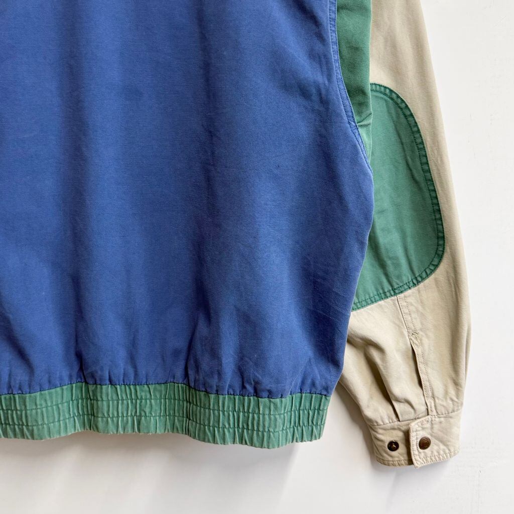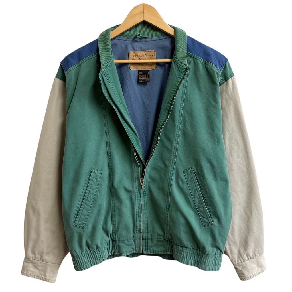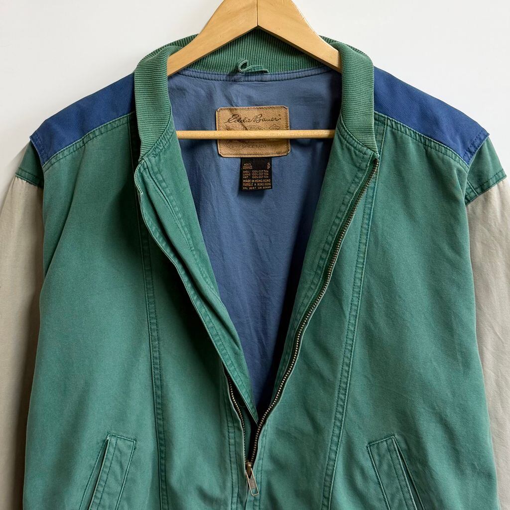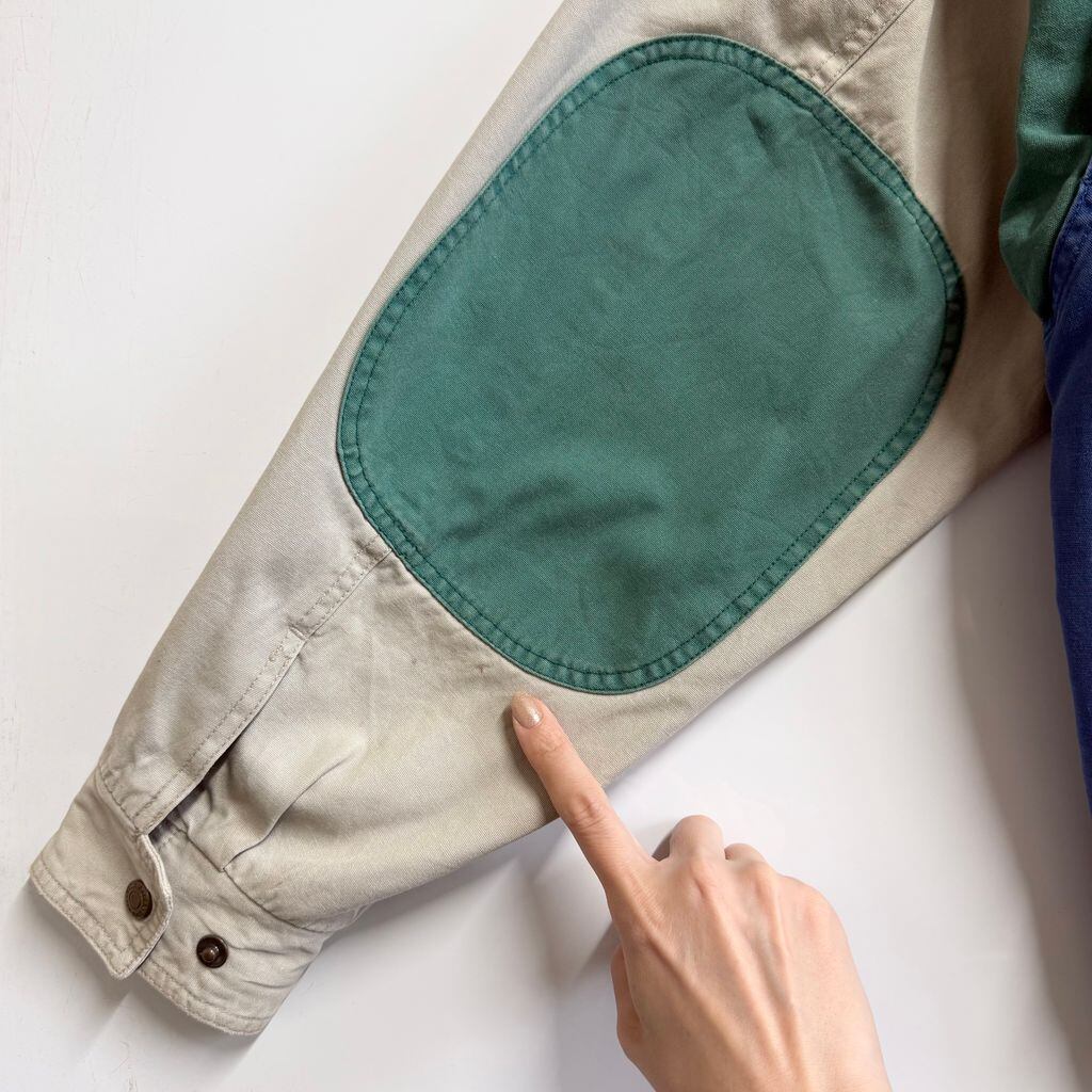 Eddie Bauer エディーバウアー コットンジャケット ブルゾン エルボーパッチ カラーブロック マルチカラー グリーン×ライトグレー×ブルー Sサイズ No.L892