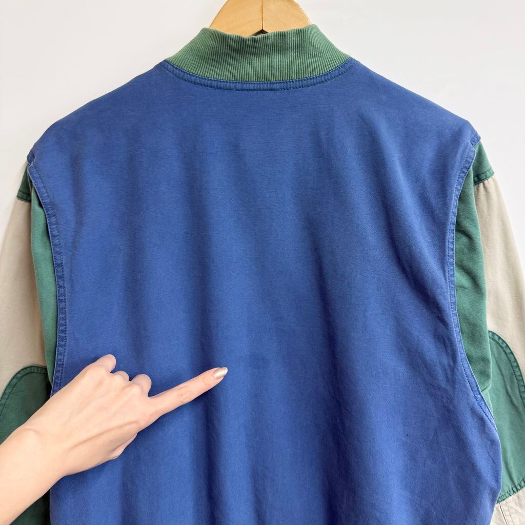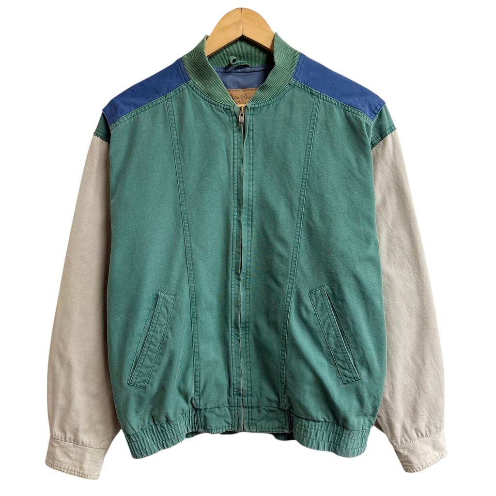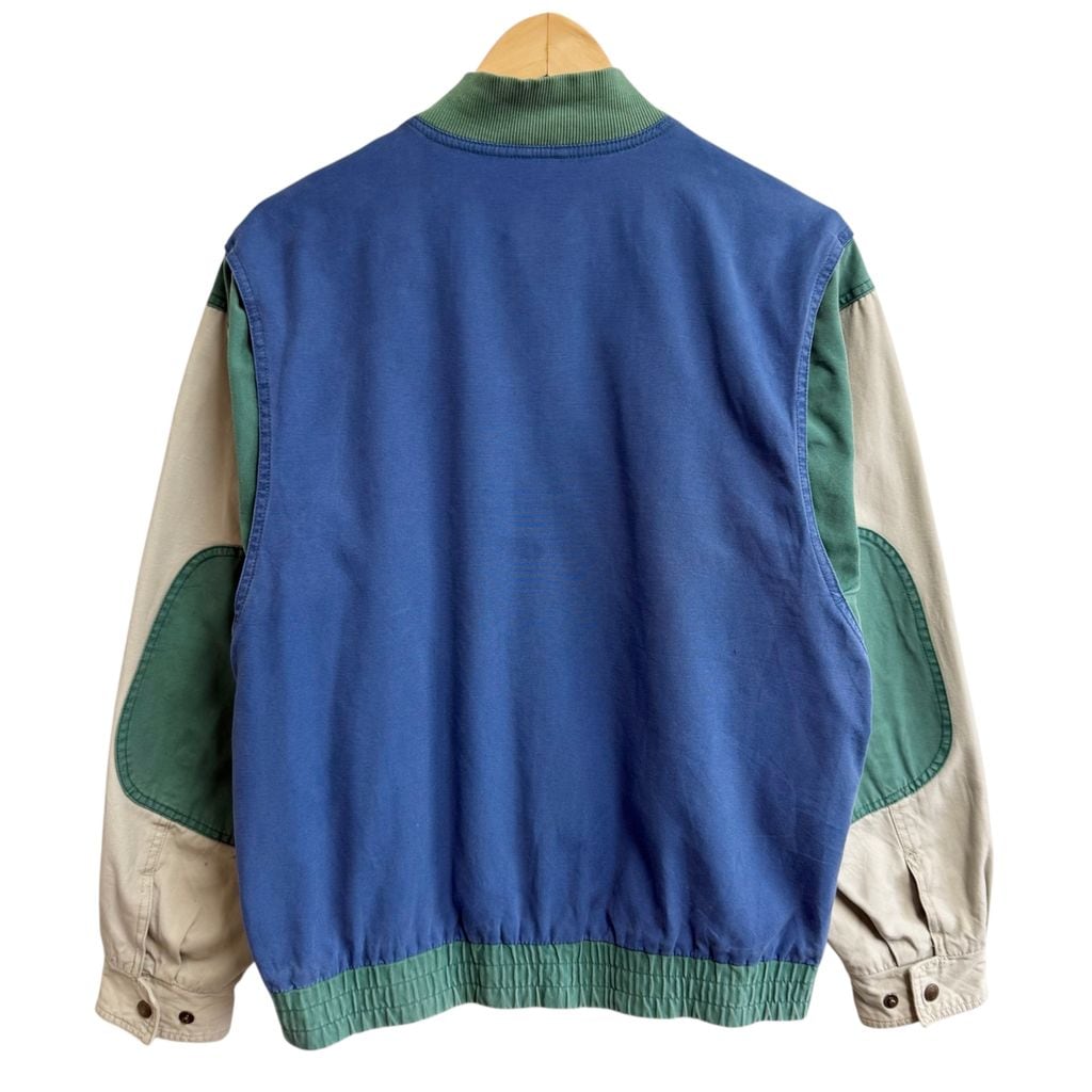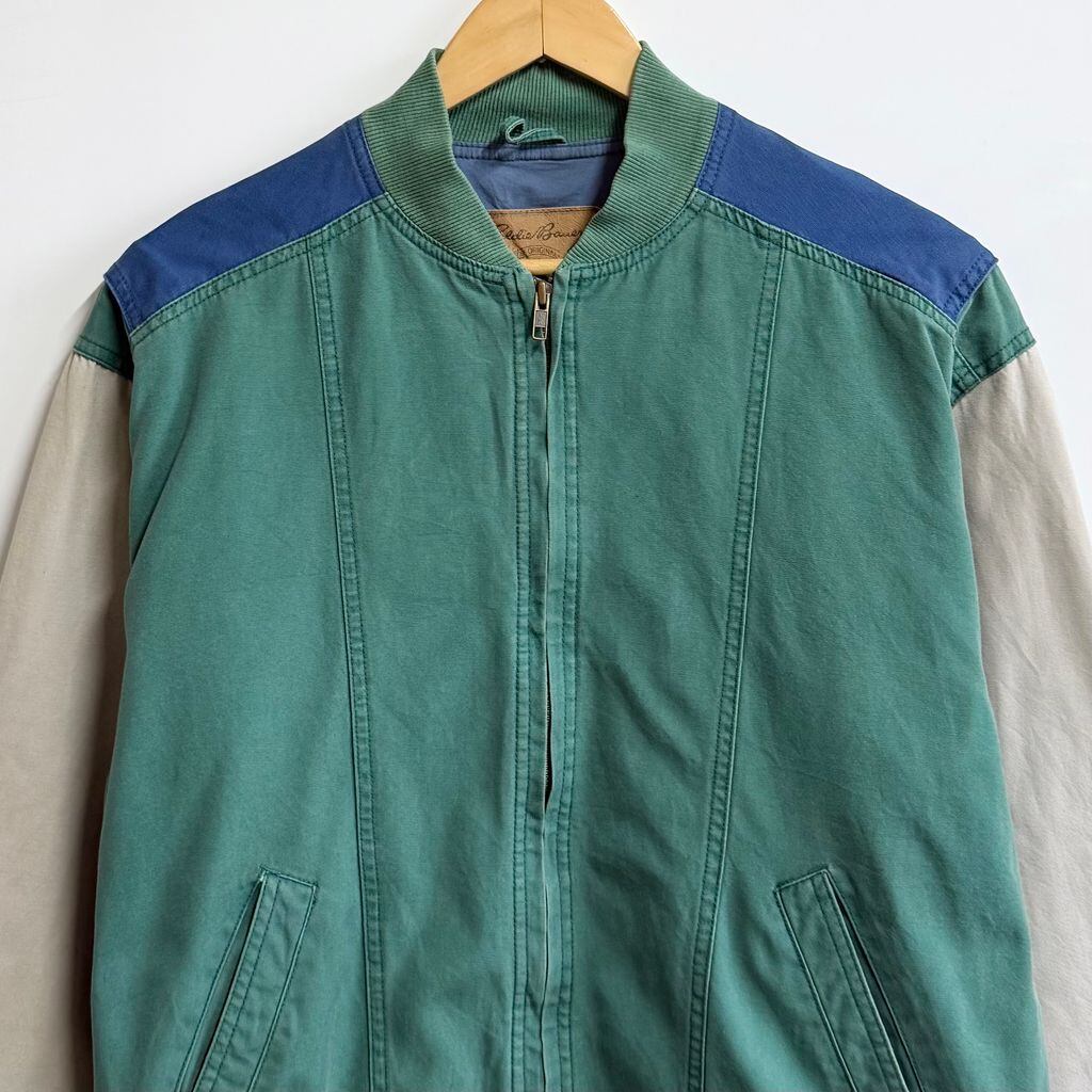 Eddie Bauer エディーバウアー コットンジャケット ブルゾン エルボーパッチ カラーブロック マルチカラー グリーン×ライトグレー×ブルー Sサイズ No.L892