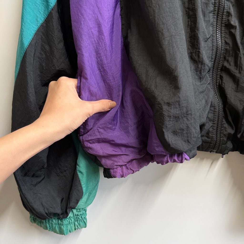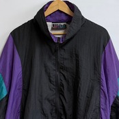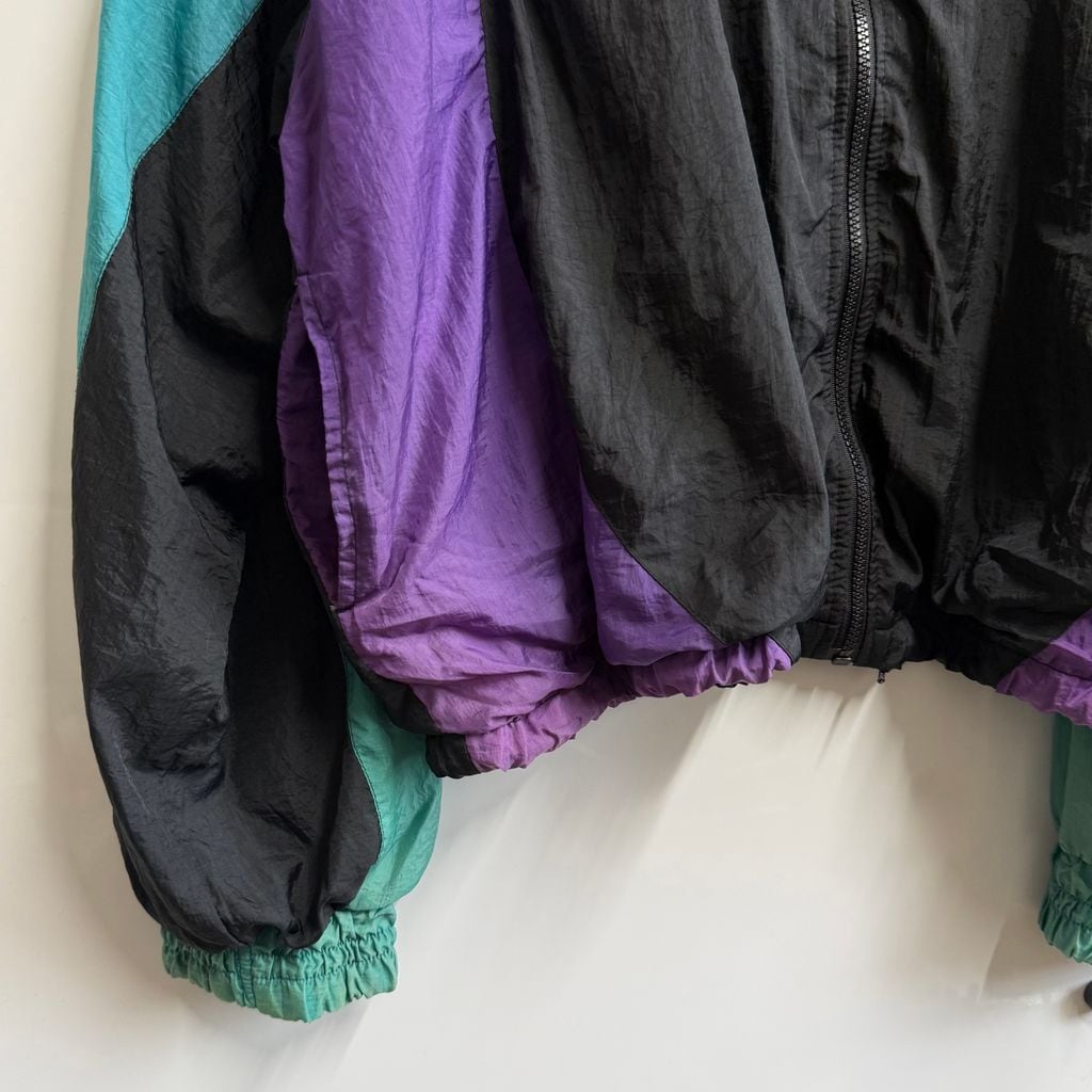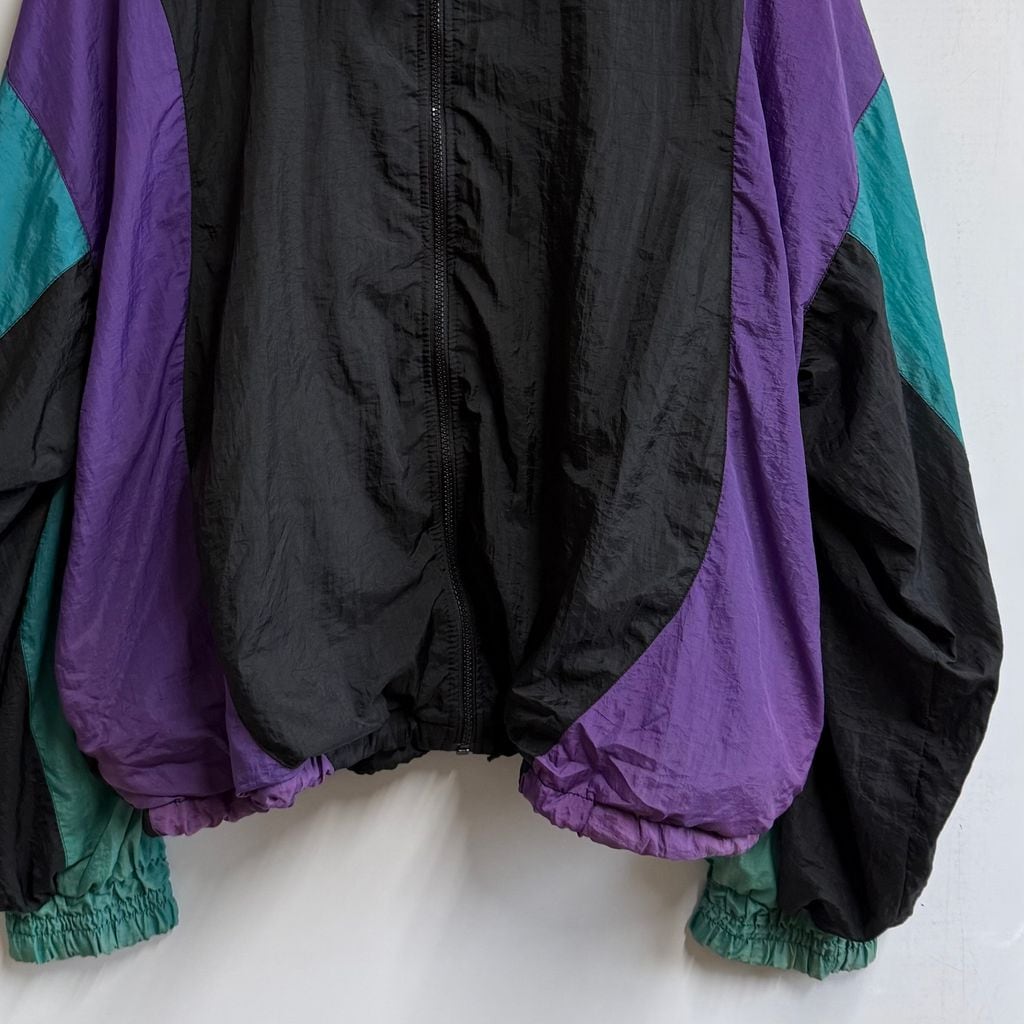 Voit ボイト ナイロンジャケット ブルゾン ウィンドブレーカー カラーブロック 黒×紫×エメラルドグリーン XLサイズ No.L893