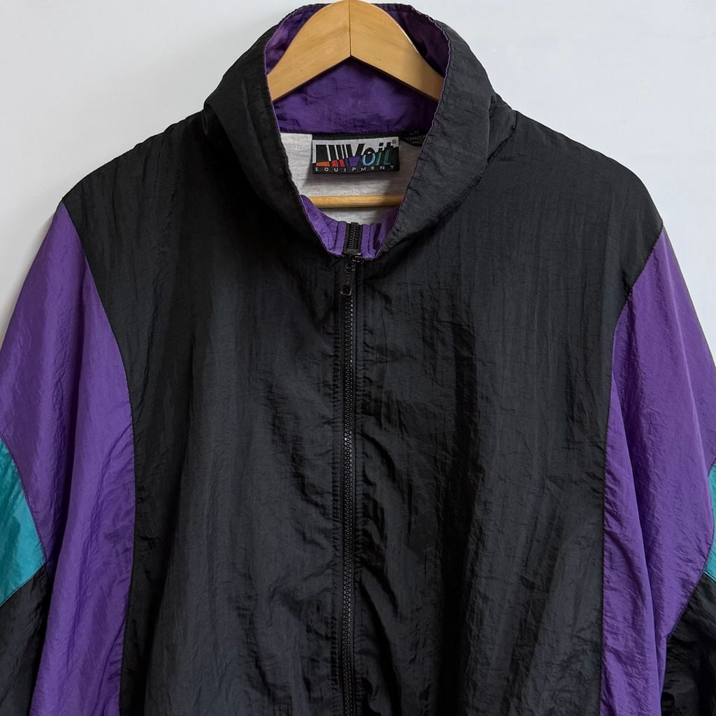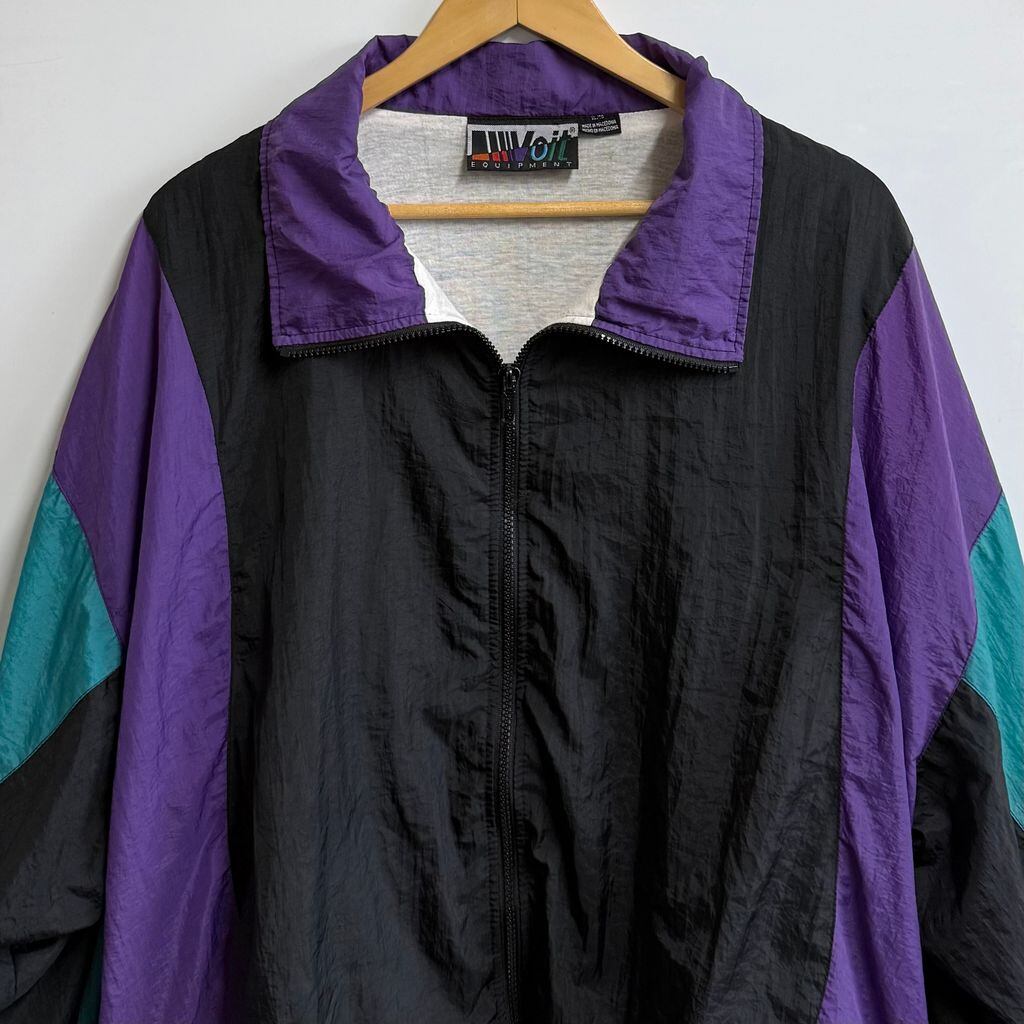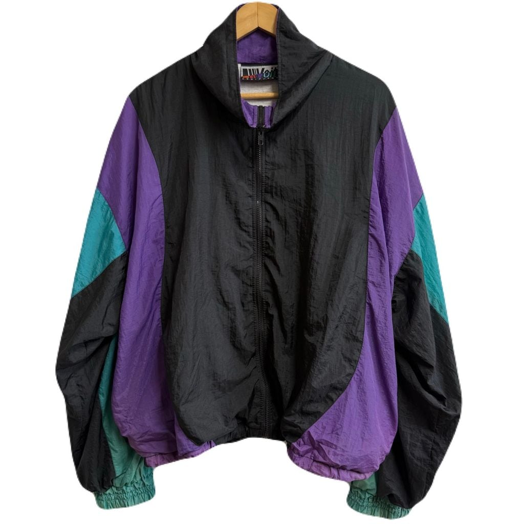 Voit ボイト ナイロンジャケット ブルゾン ウィンドブレーカー カラーブロック 黒×紫×エメラルドグリーン XLサイズ No.L893