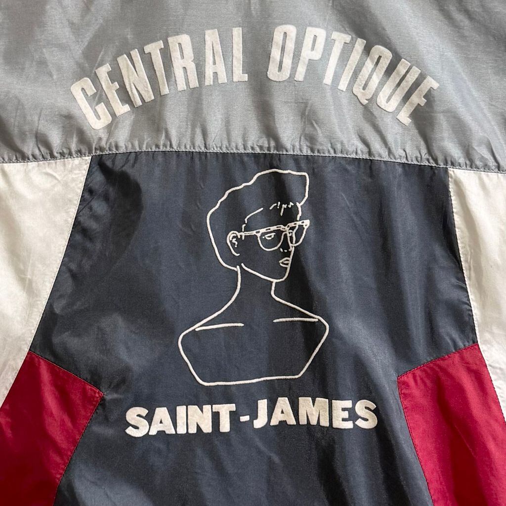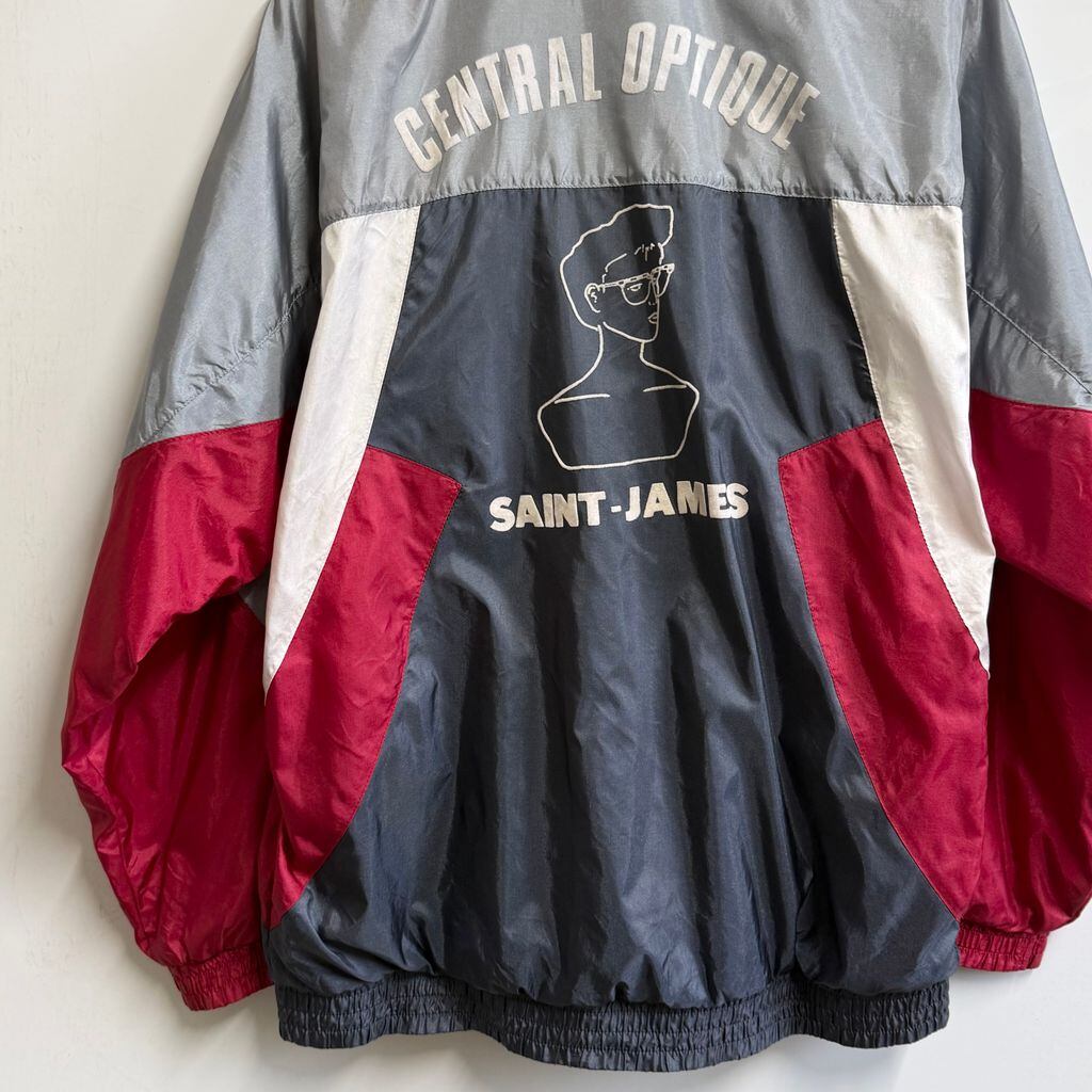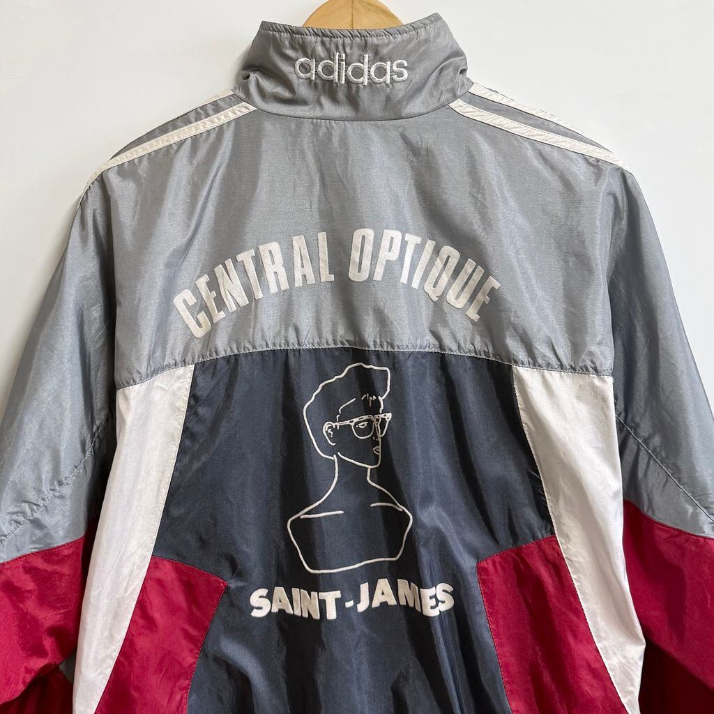 adidas アディダス フラッグタグ トレフォイル 刺繍 ナイロンジャケット セントジェームス シルバーグレー×白×紺×赤 Lサイズ No.L894