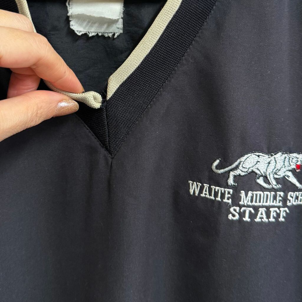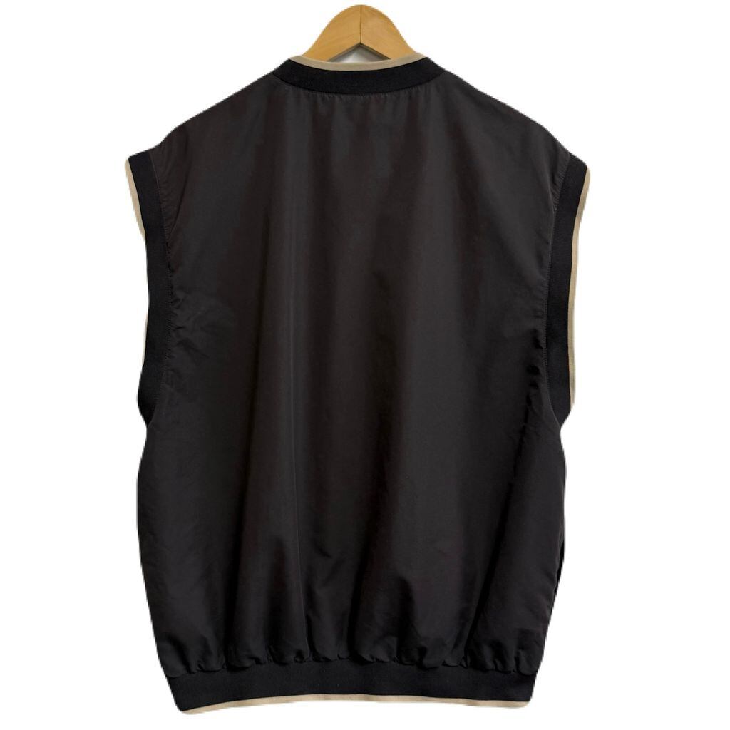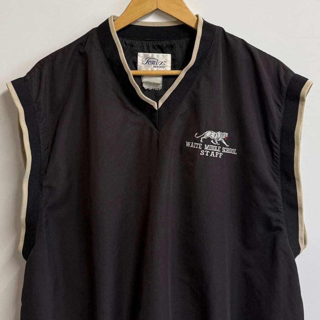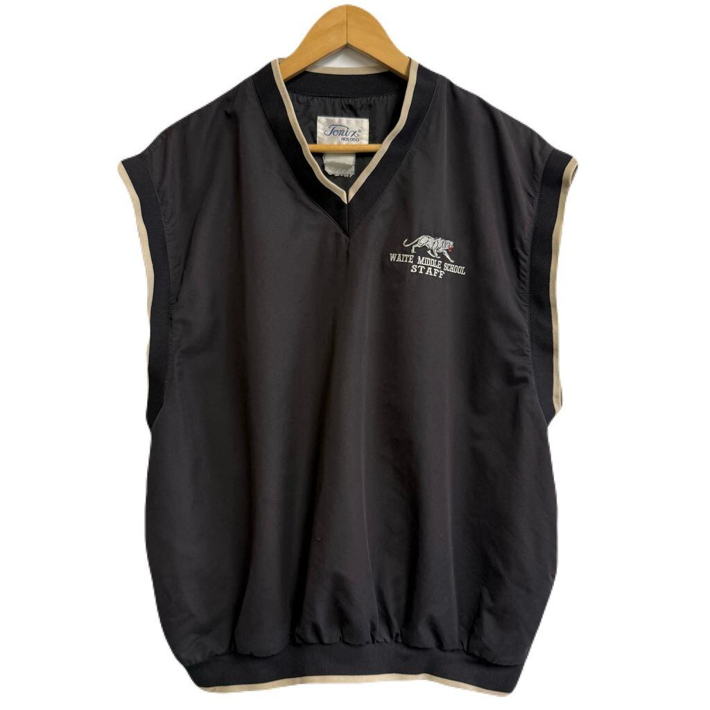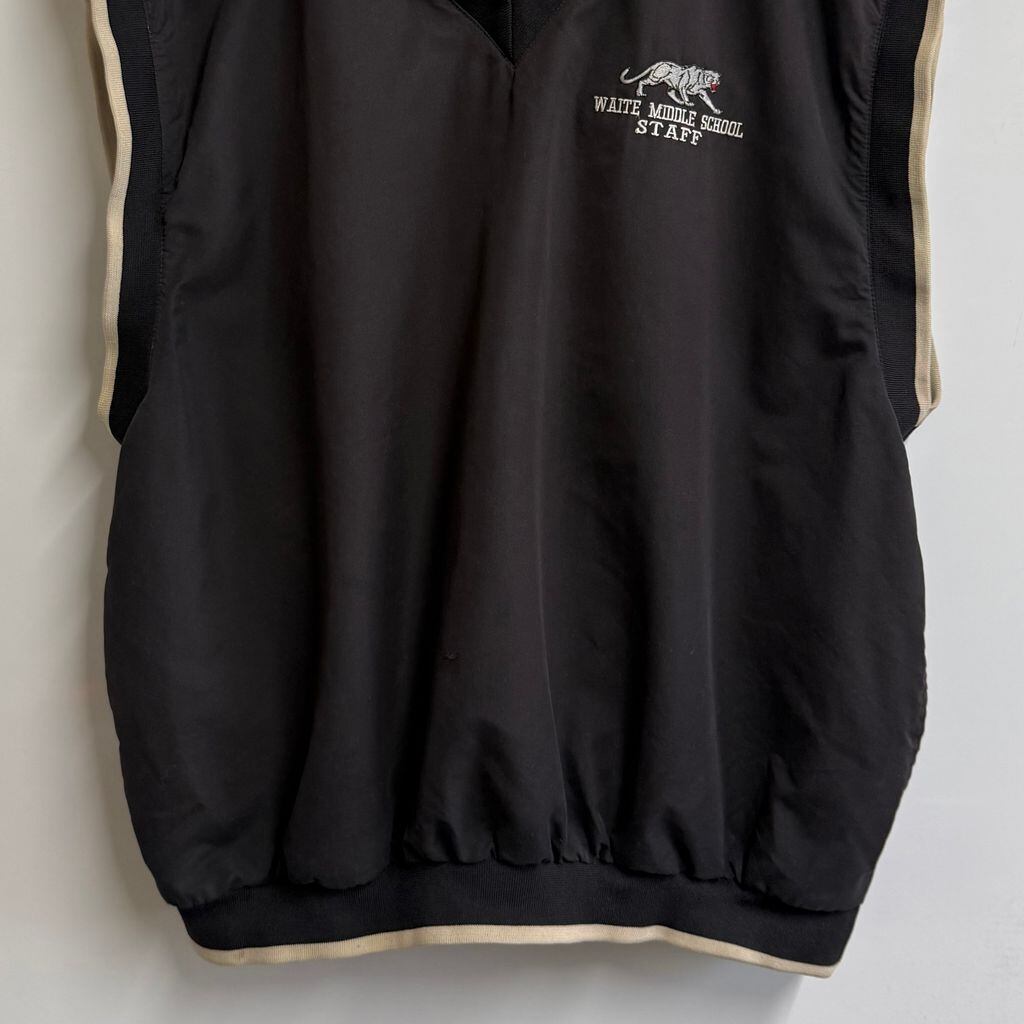 Tonix NOLOGO ナイロンプルオーバーベスト パンサー 刺繍 ポケット付き Vネック 黒 No.L897