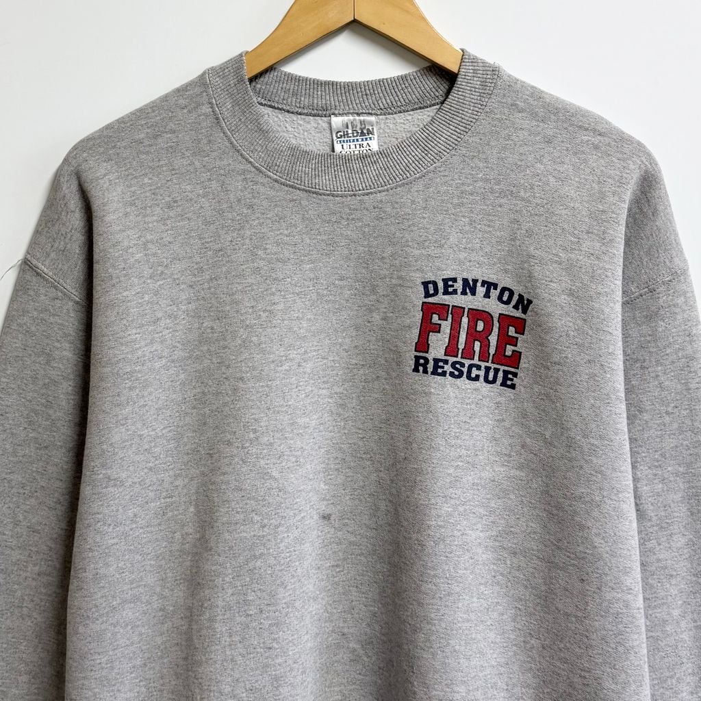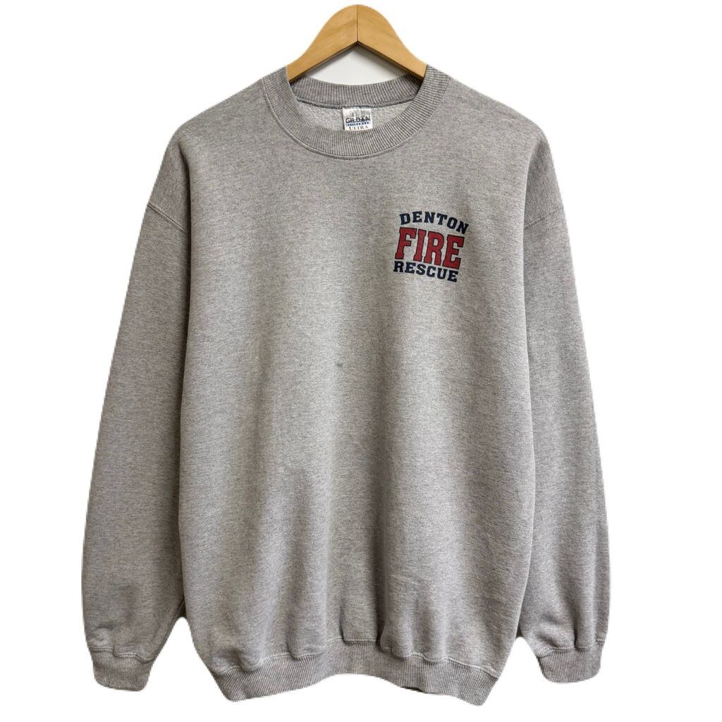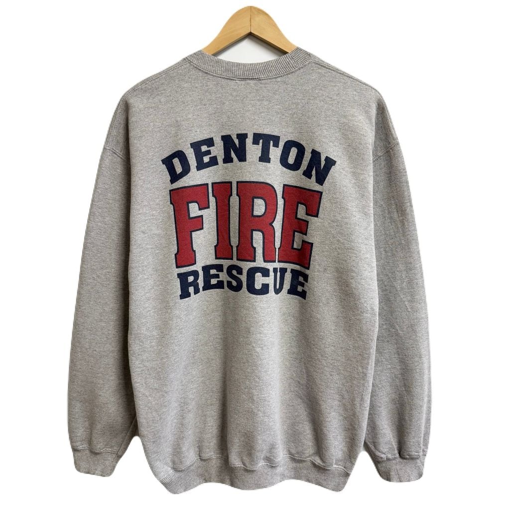 GILDAN ギルダン 両面プリント DENTON FIRE RESCUE トレーナー スウェット ライトグレー Mサイズ No.L899