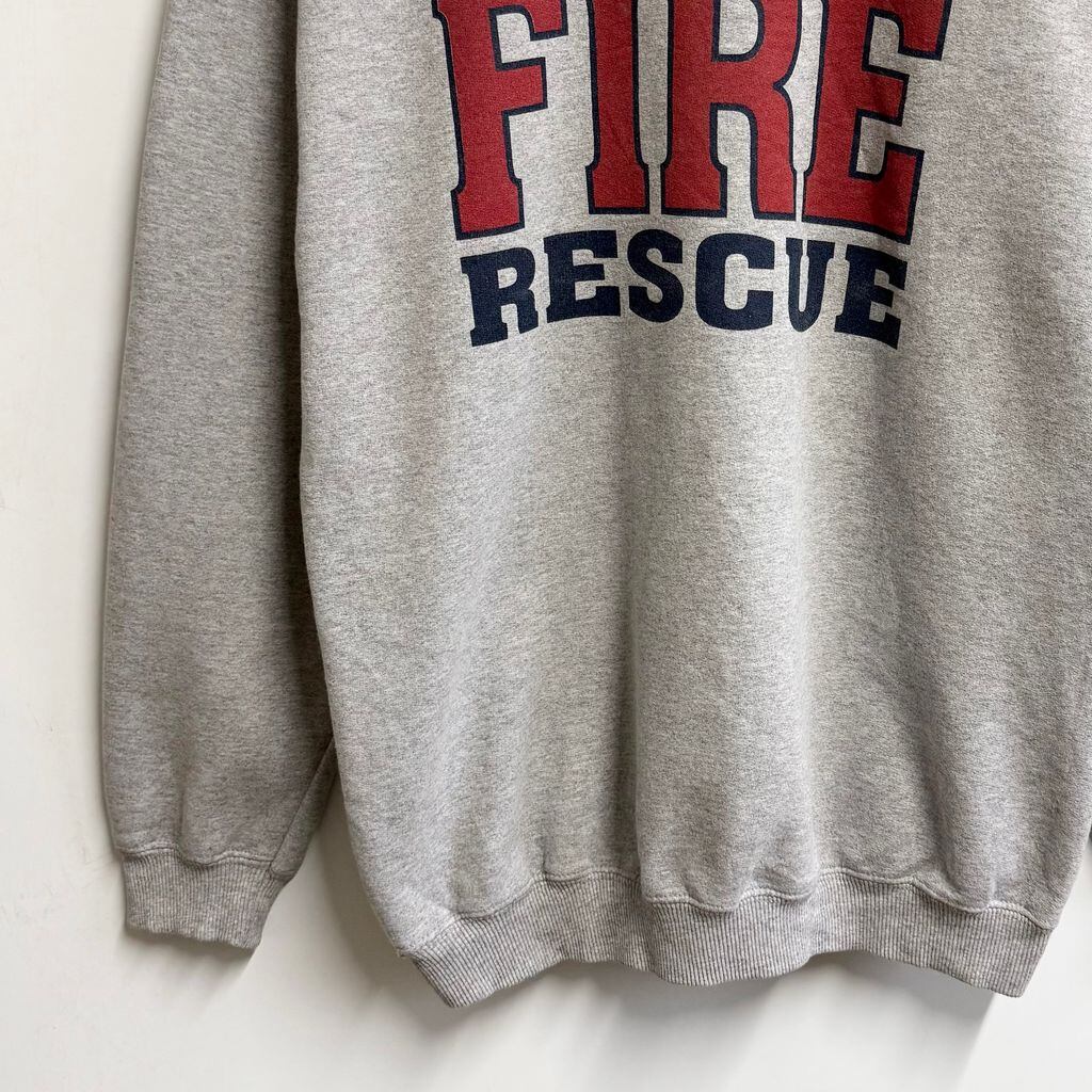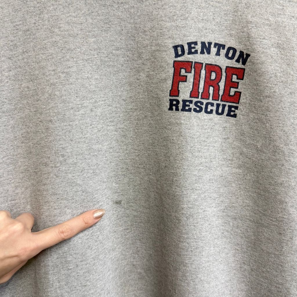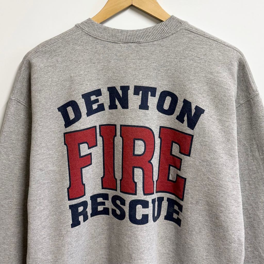 GILDAN ギルダン 両面プリント DENTON FIRE RESCUE トレーナー スウェット ライトグレー Mサイズ No.L899