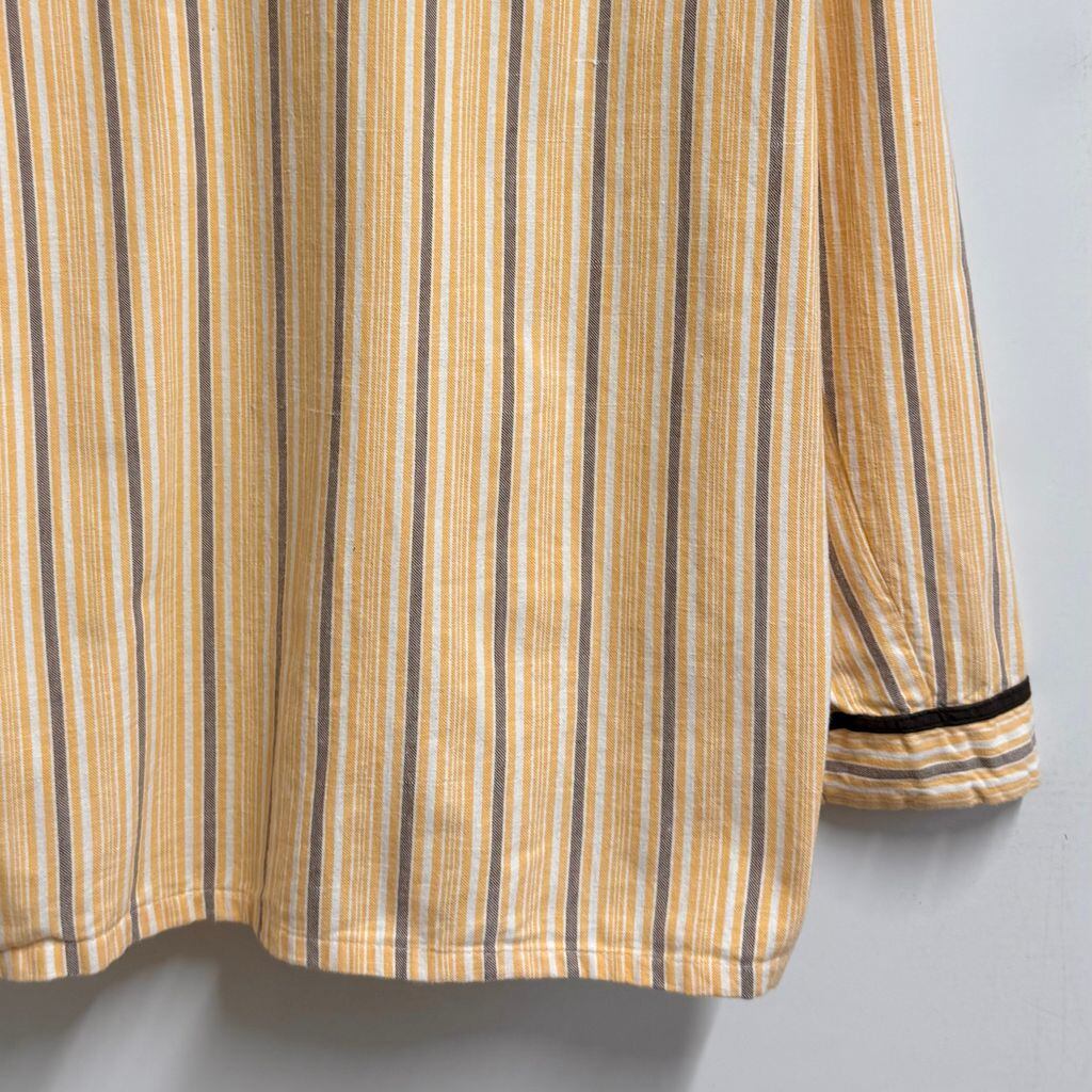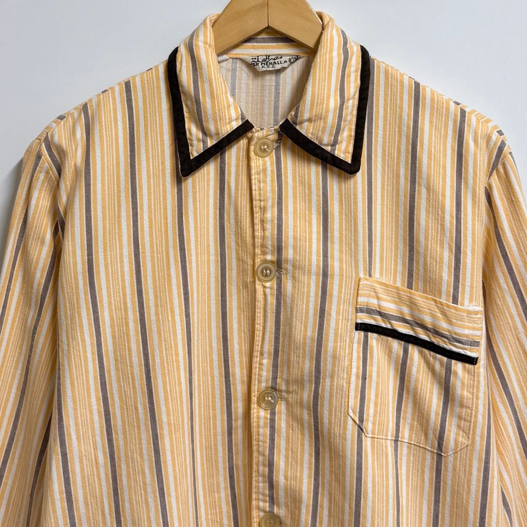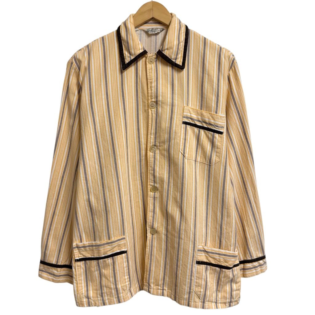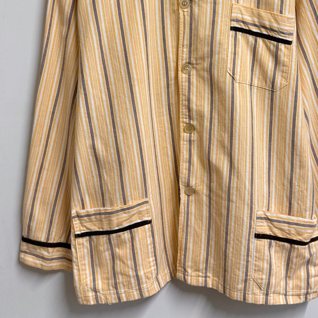 60's〜70's vintage ビンテージ パジャマシャツ ルームウェア ストライプ ポケット付き 長袖シャツ オレンジ×白×ブラウン サイズ52 No.L901