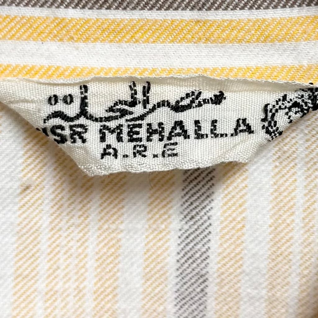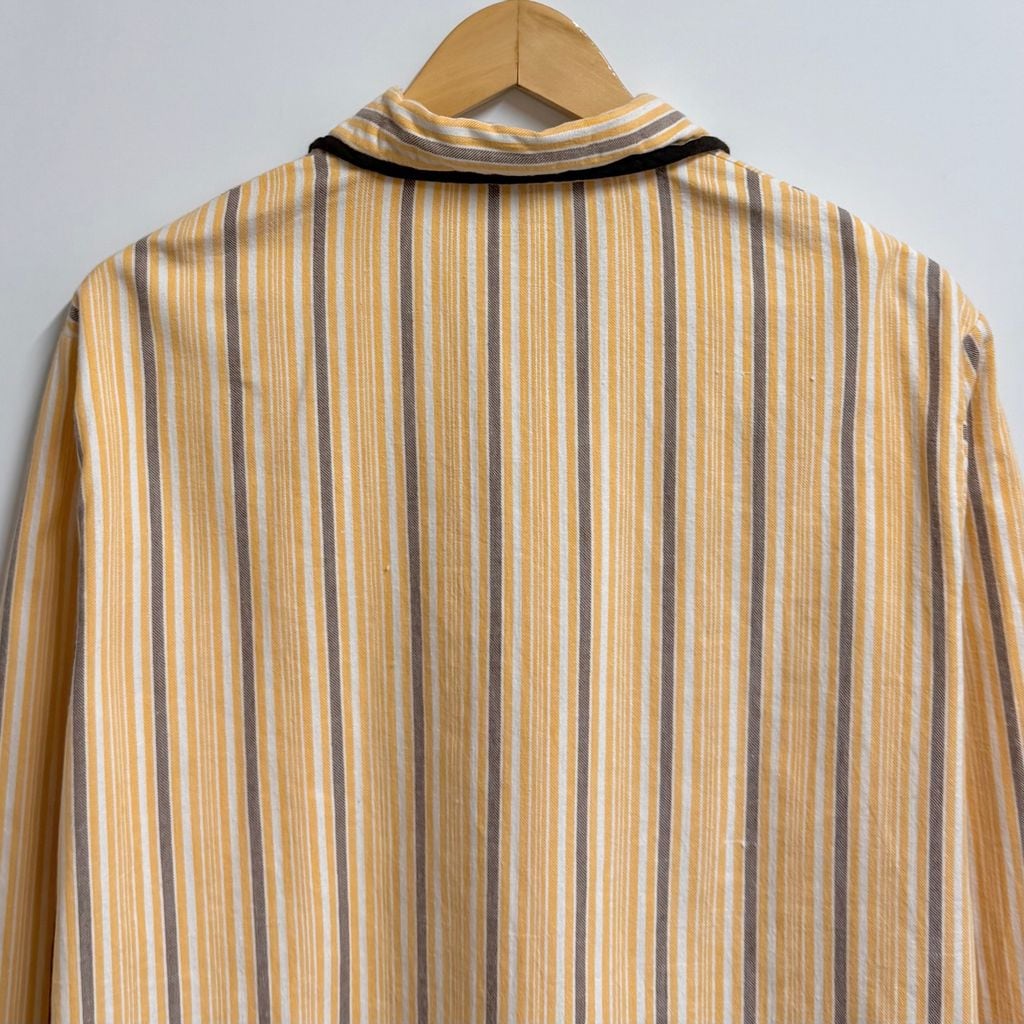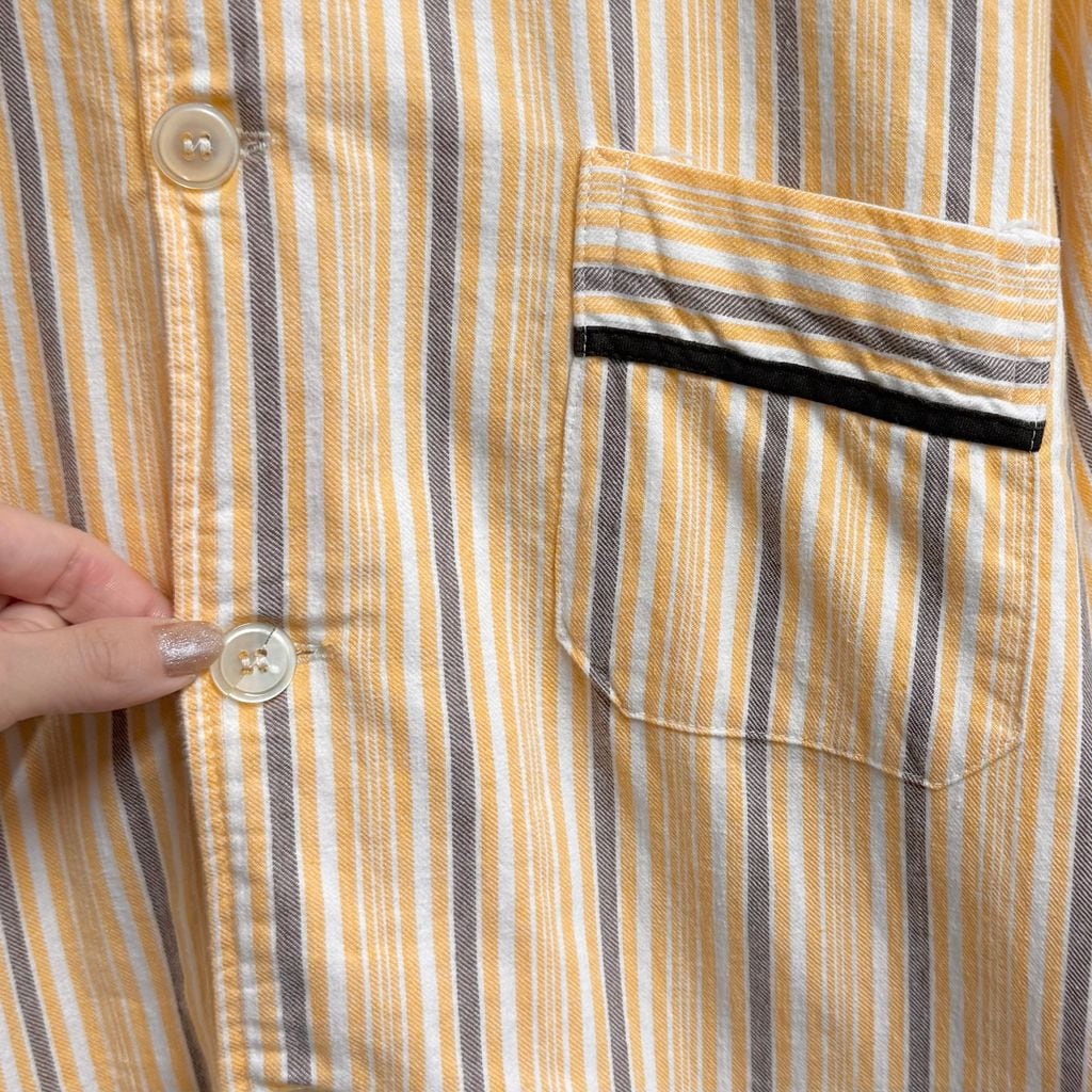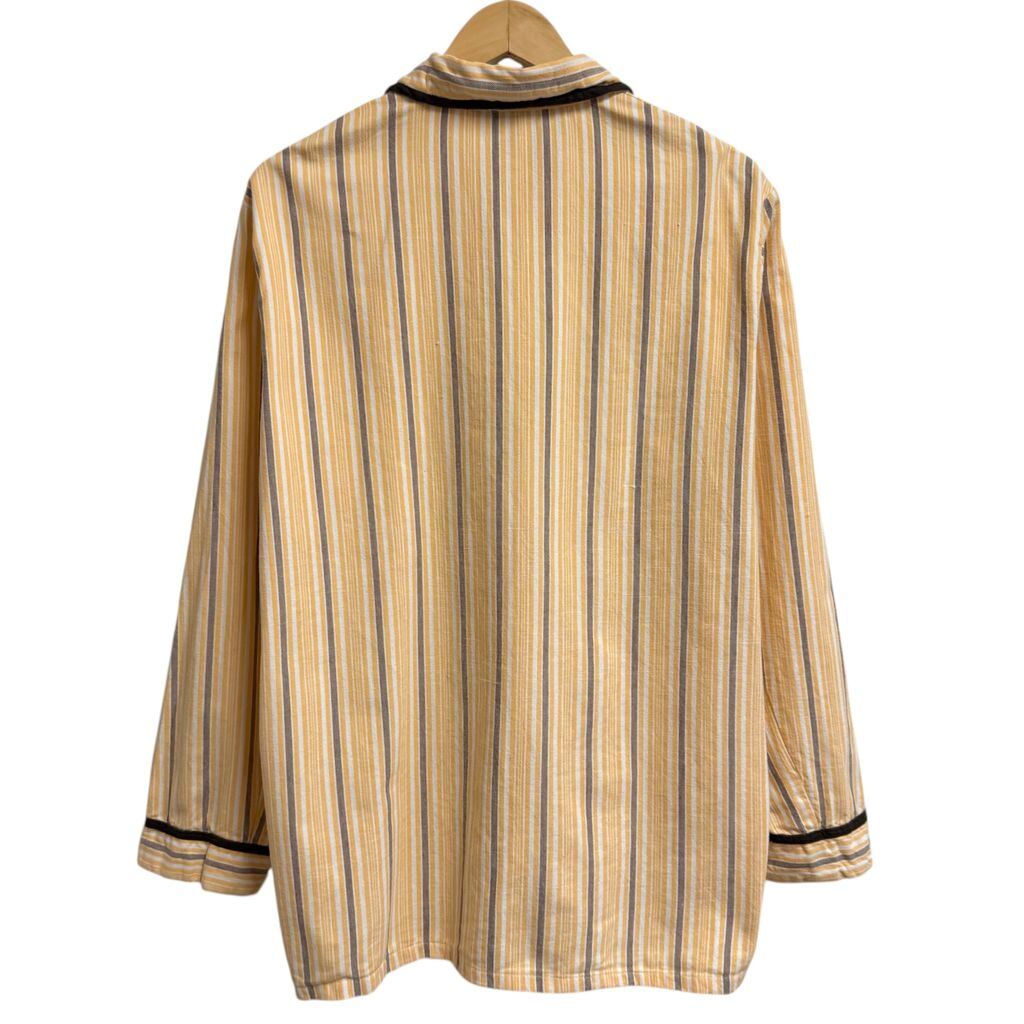 60's〜70's vintage ビンテージ パジャマシャツ ルームウェア ストライプ ポケット付き 長袖シャツ オレンジ×白×ブラウン サイズ52 No.L901
