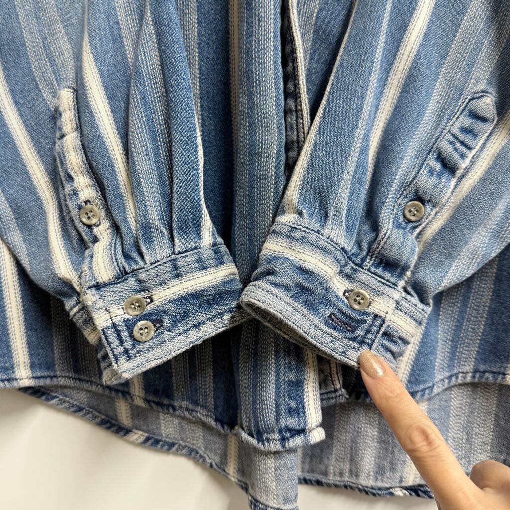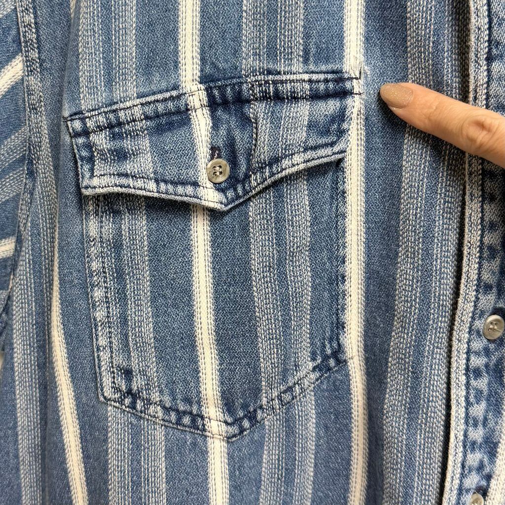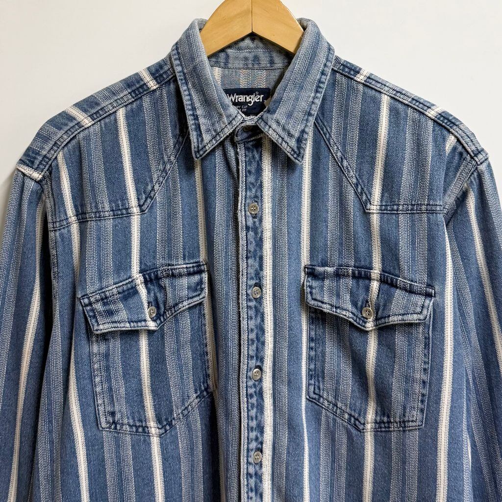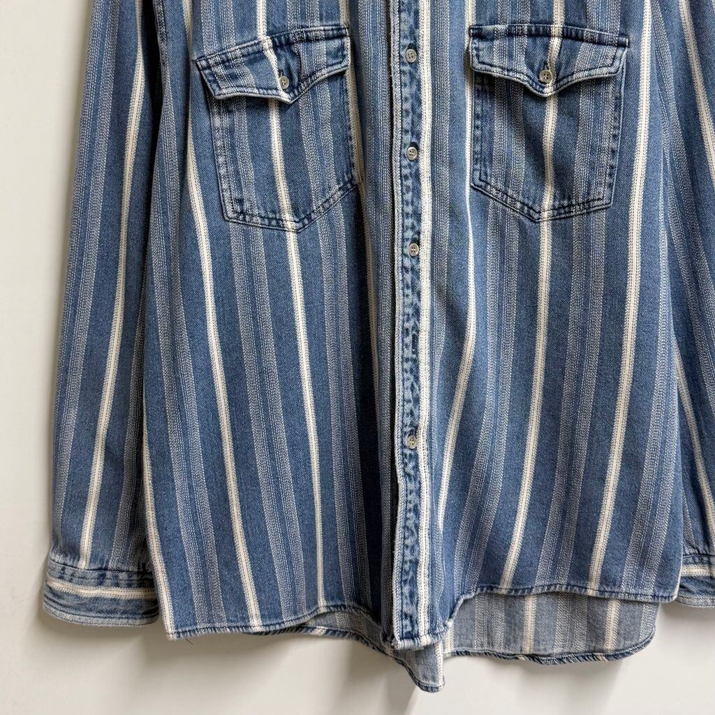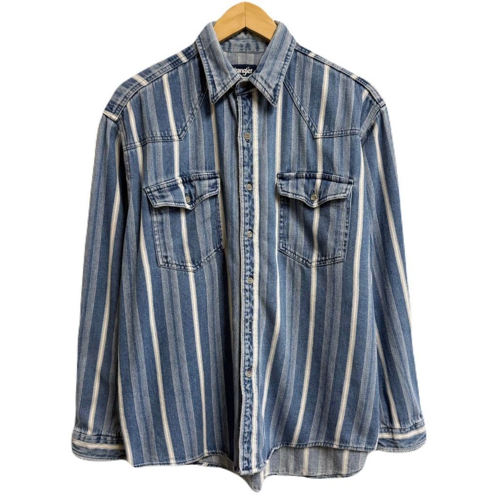 Wrangler ラングラー デニムウエスタンシャツ コットンシャツ ストライプ ポケット付き 厚手長袖シャツ 青×白 XLTサイズ No.L902