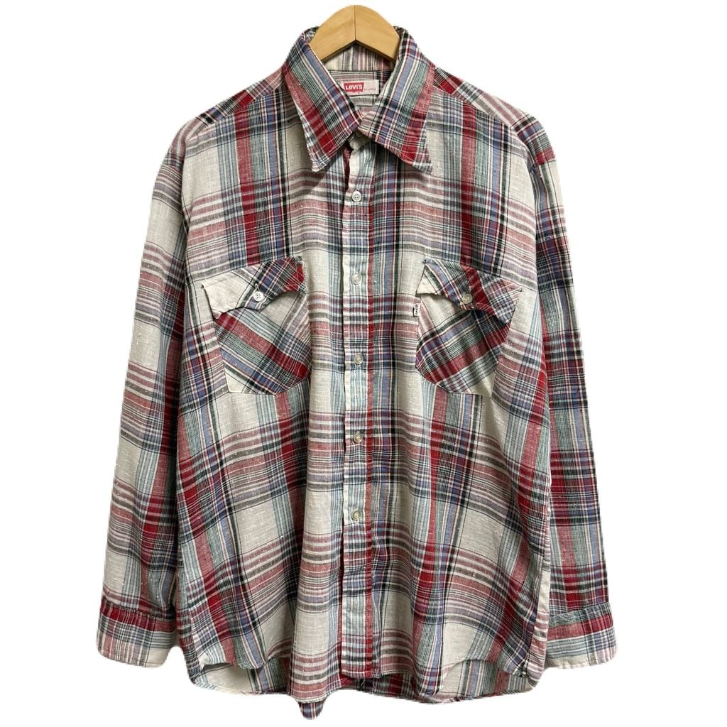 Levi's リーバイス チェック柄 ポケット付き 長袖シャツ 白×赤×水色×多色 EX-LARGEサイズ No.L904