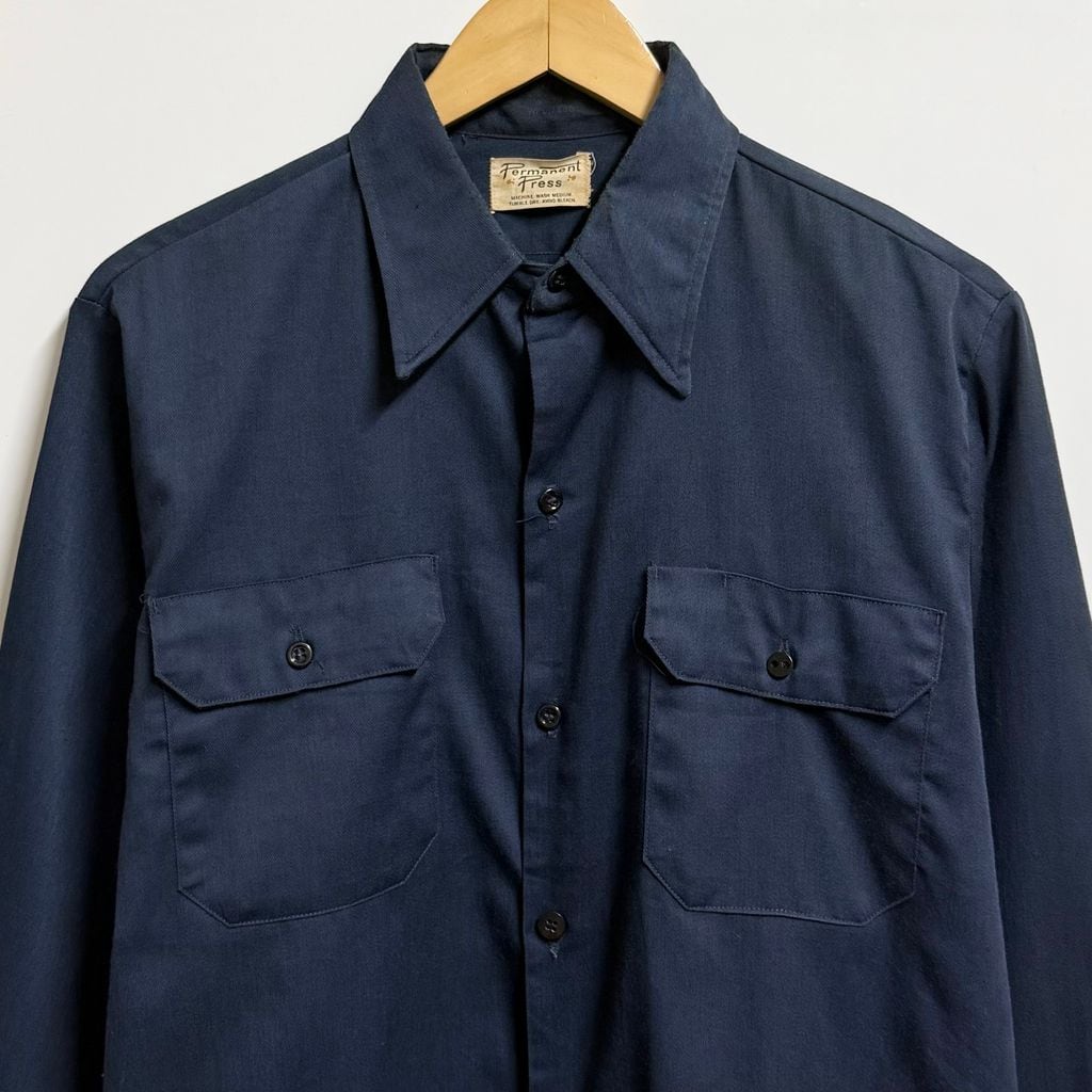 ワークシャツ 無地 ポケット付き 長袖シャツ 紺 ネイビー Mサイズ程度 No.L909