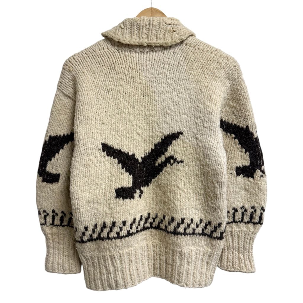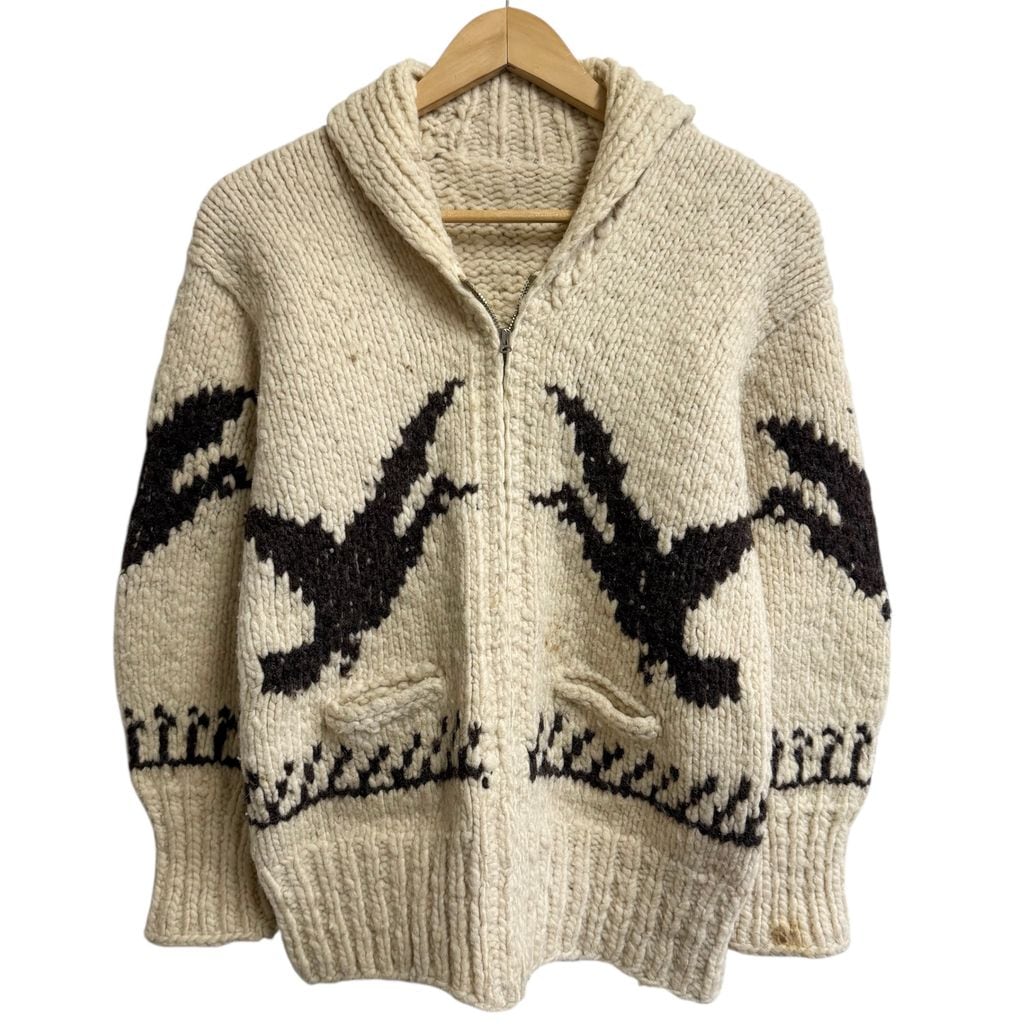 〜60's vintage ビンテージ カウチンセーター 鳥 イーグル柄 ショールカラー ジップアップカーディガン アイボリー×ブラウン No.L885