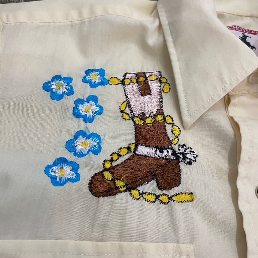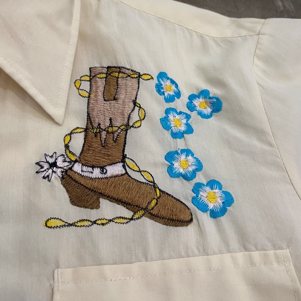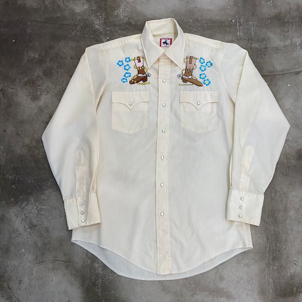 70s 80s CHUTE#1 ウェスタンブーツ刺繍 ウェスタンシャツ スナップボタン 生成り色 No.S056