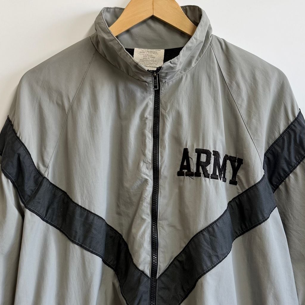 フィジカルトレーニングジャケット ARMY 刺繍 ナイロンジャケット 裏地メッシュ ライトグレー×チャコールグレー LARGE LONGサイズ No.L917