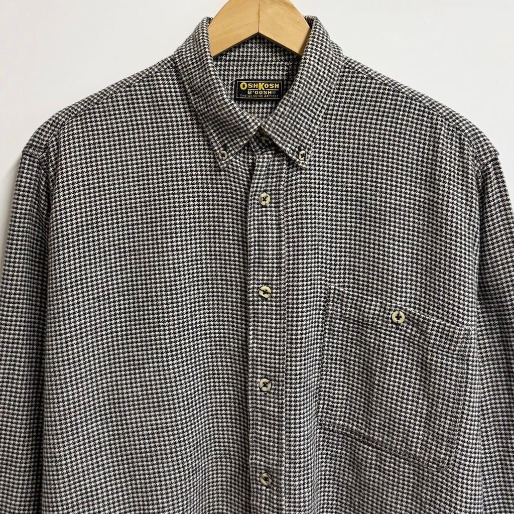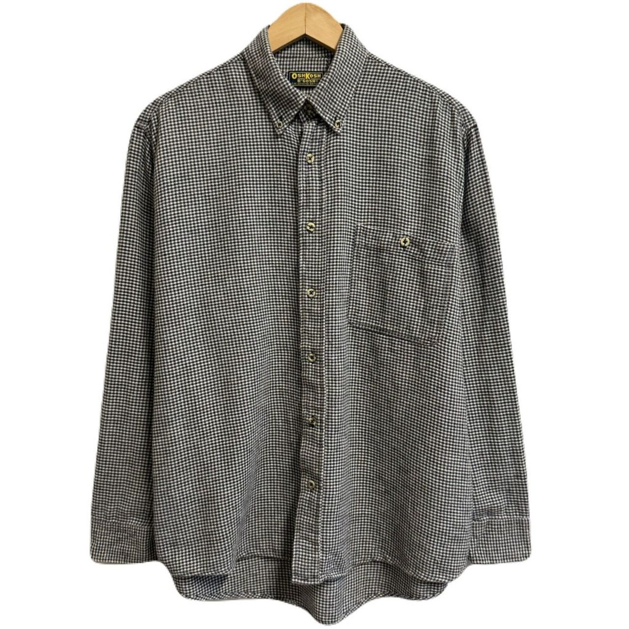 OSHKOSH B'GOSH オシュコシュビゴッシュ 千鳥格子柄 ボタンダウンシャツ ポケット付き 長袖シャツ 白×黒 No.L933