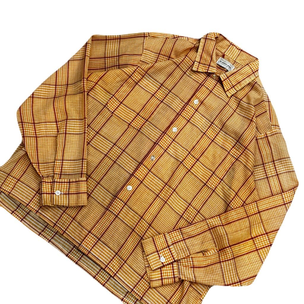 PERMANENT PRESS チェック柄 ポケット付き 長袖シャツ ポリコットンシャツ オレンジ Lサイズ No.EA22
