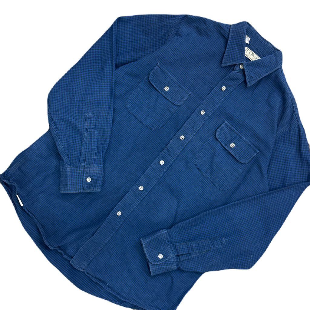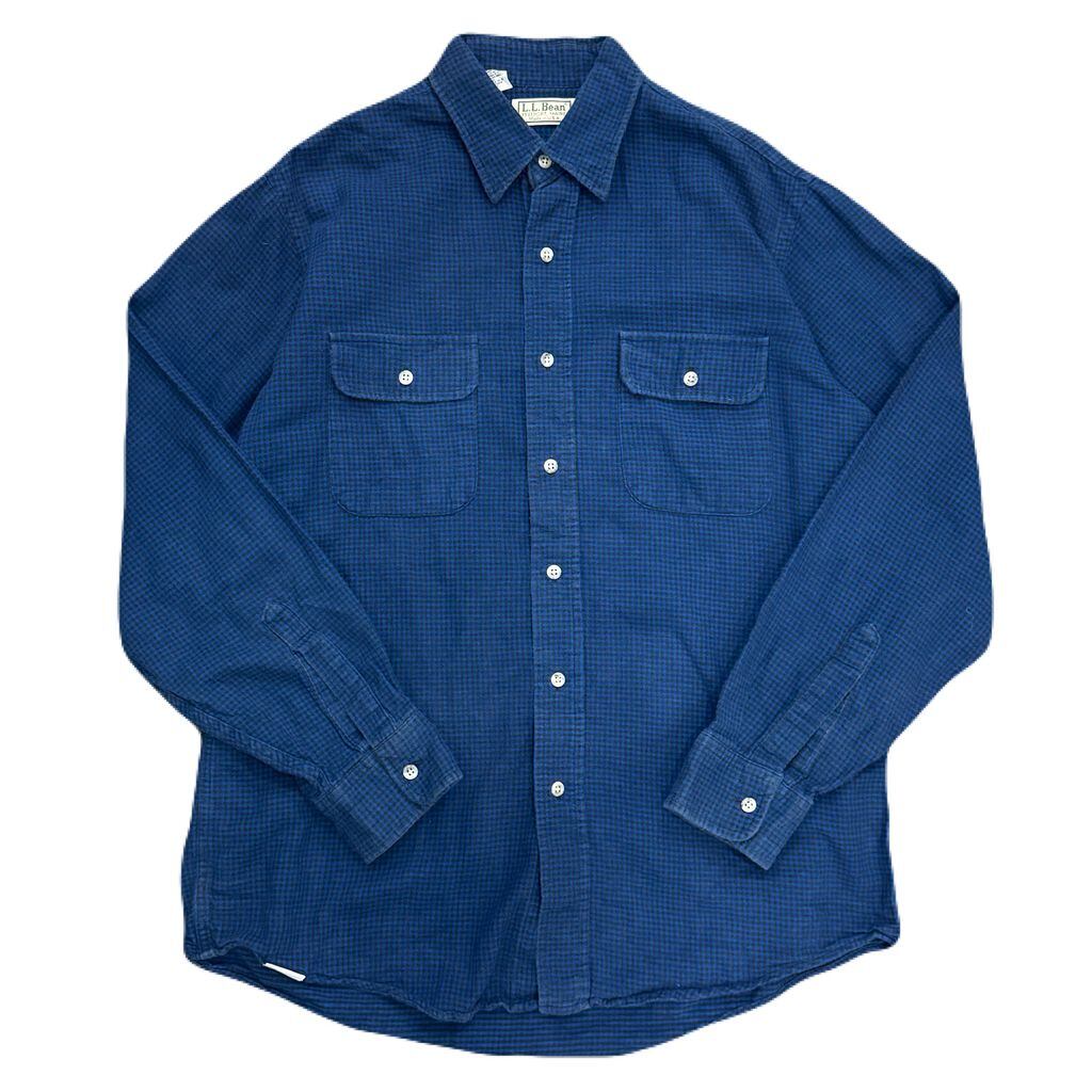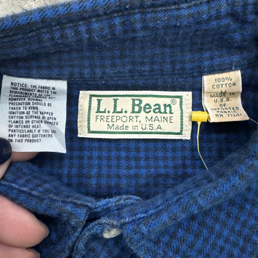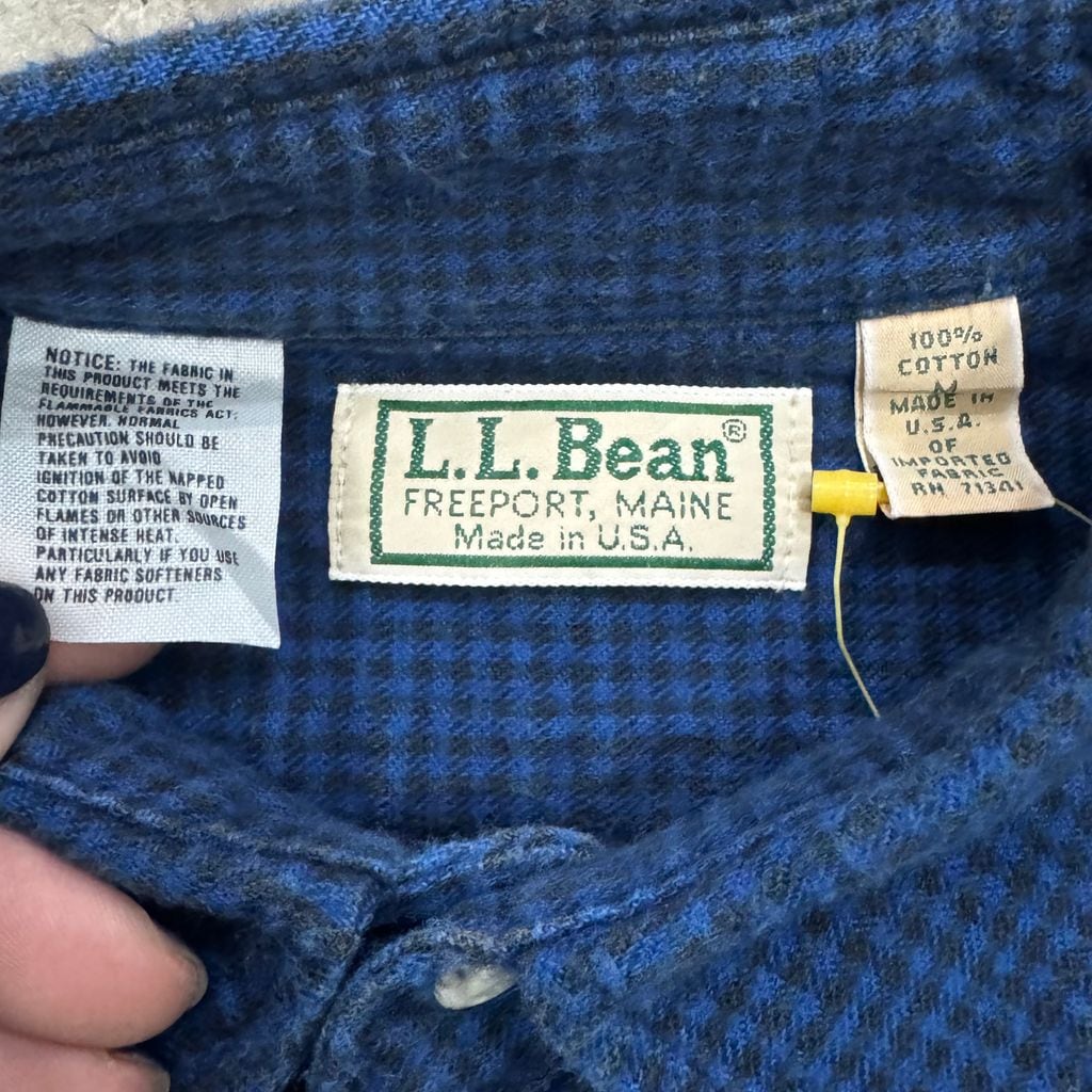 USA製 L.L.Bean エルエルビーン ギンガムチェック柄 ポケット付き フランネルシャツ ネルシャツ 長袖シャツ 青×黒 Mサイズ No.EA23