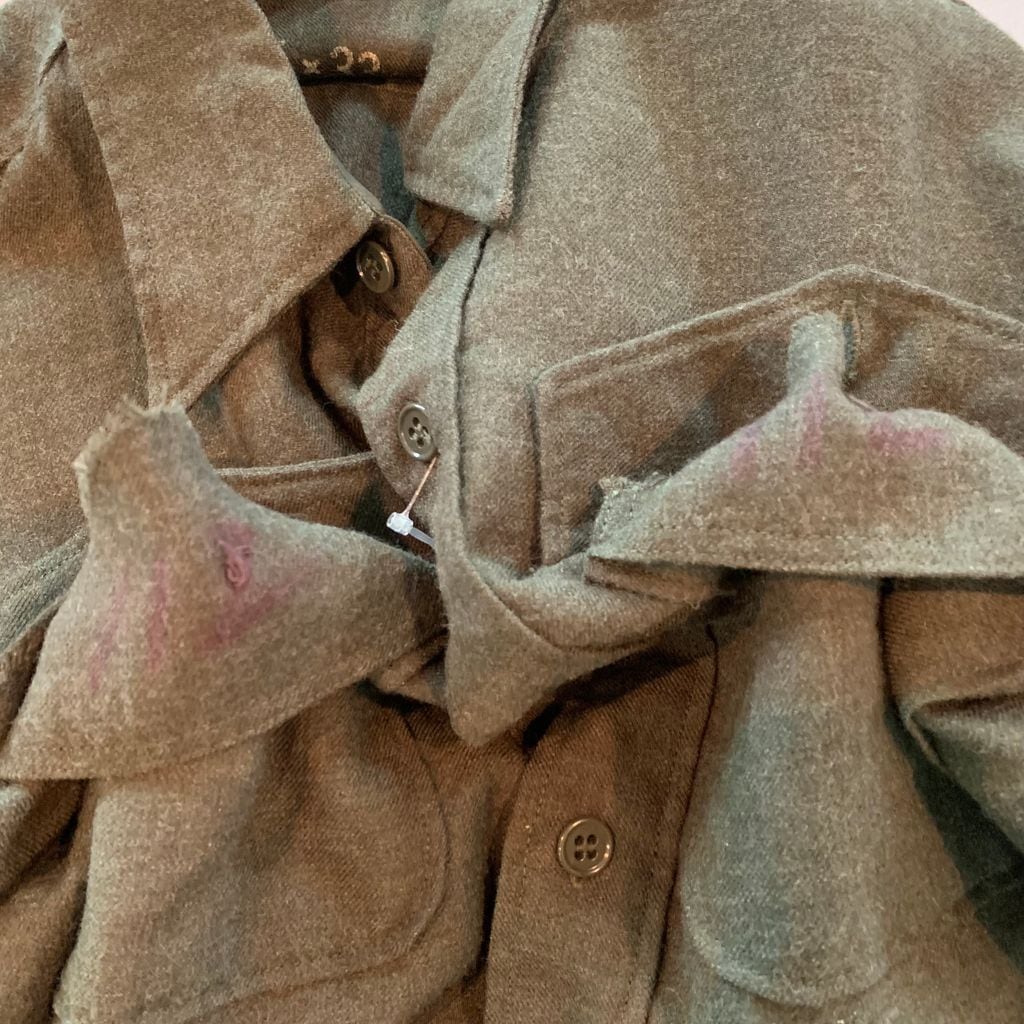 左胸フラップポケット上部に小穴有り
