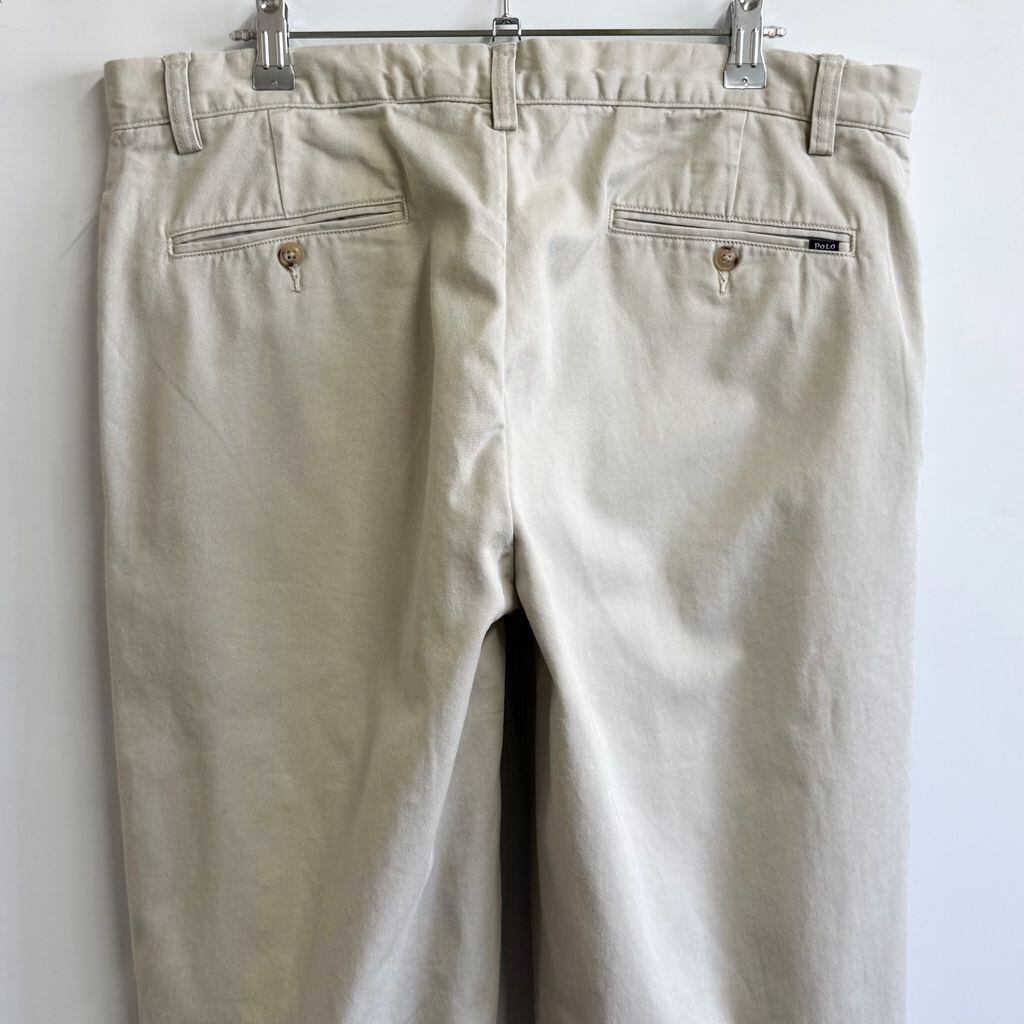 POLO RALPH LAUREN ポロ ラルフローレン CLASSIC FIT PLEATED ポロチノ コットンチノ チノパン ツータック ベージュ 34×32 No.L940