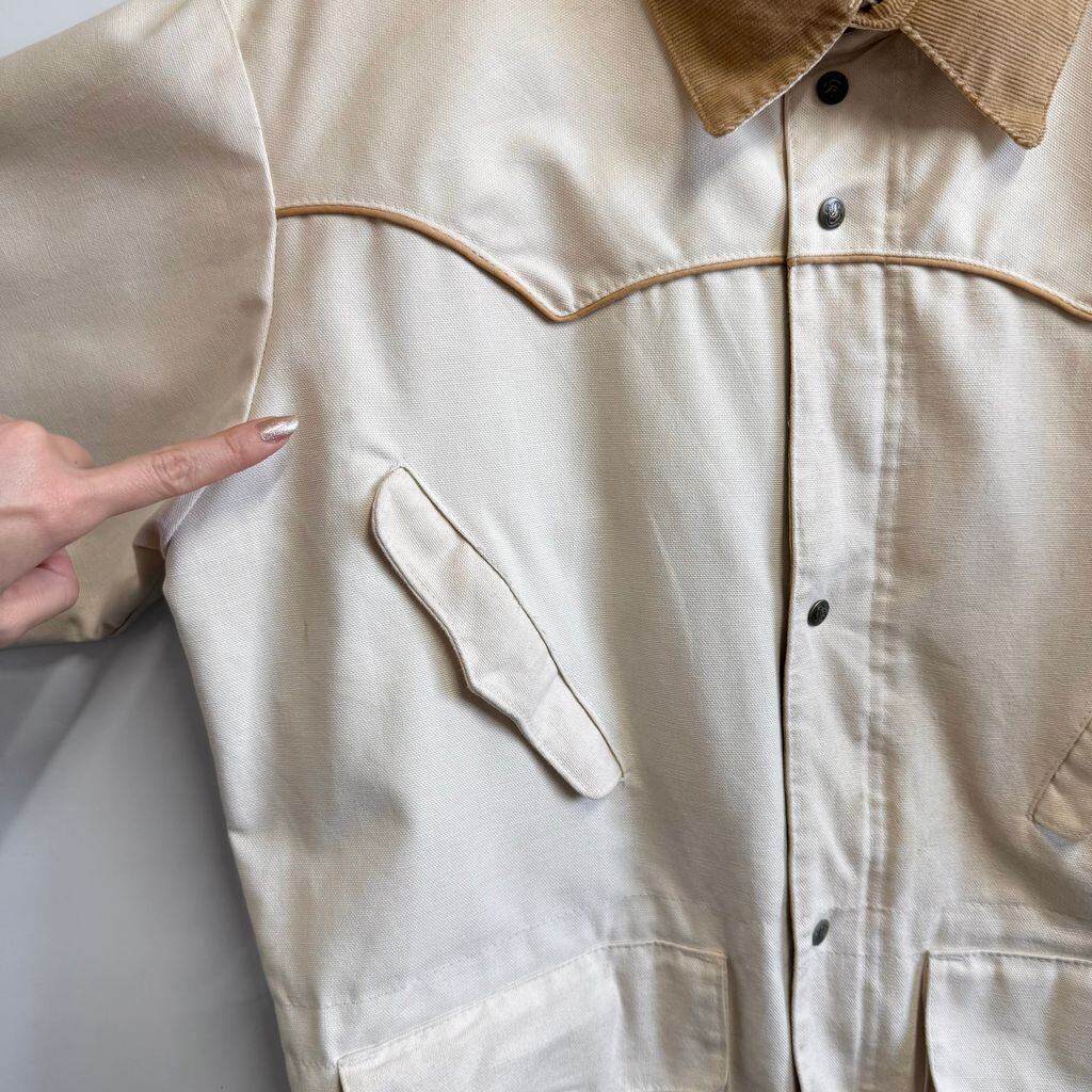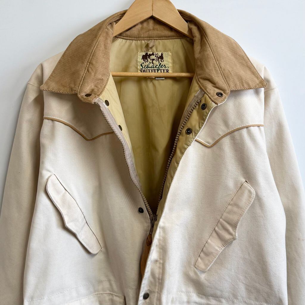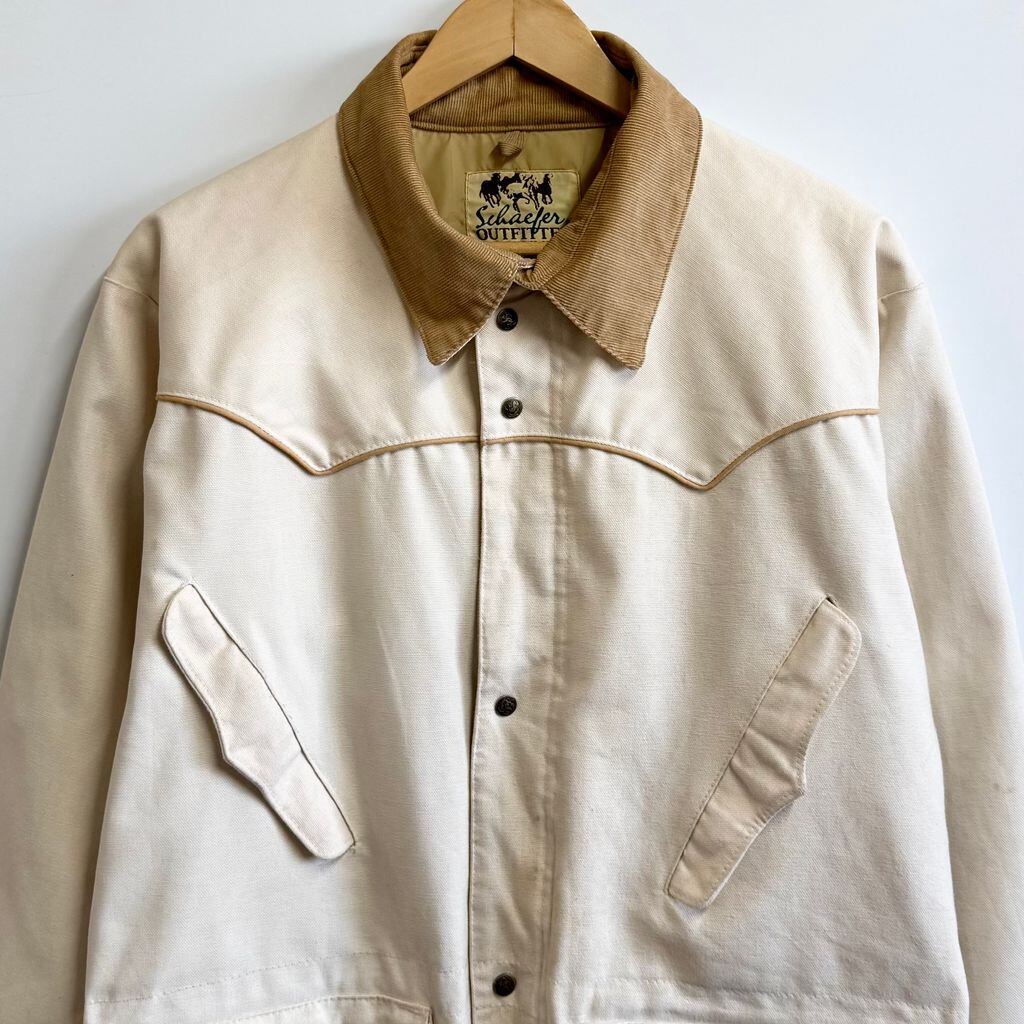 USA製 Schaefer Outfitter ウエスタンジャケット ランチコート 襟コーデュロイ スナップボタン×フルジップ アイボリー Sサイズ No.L943