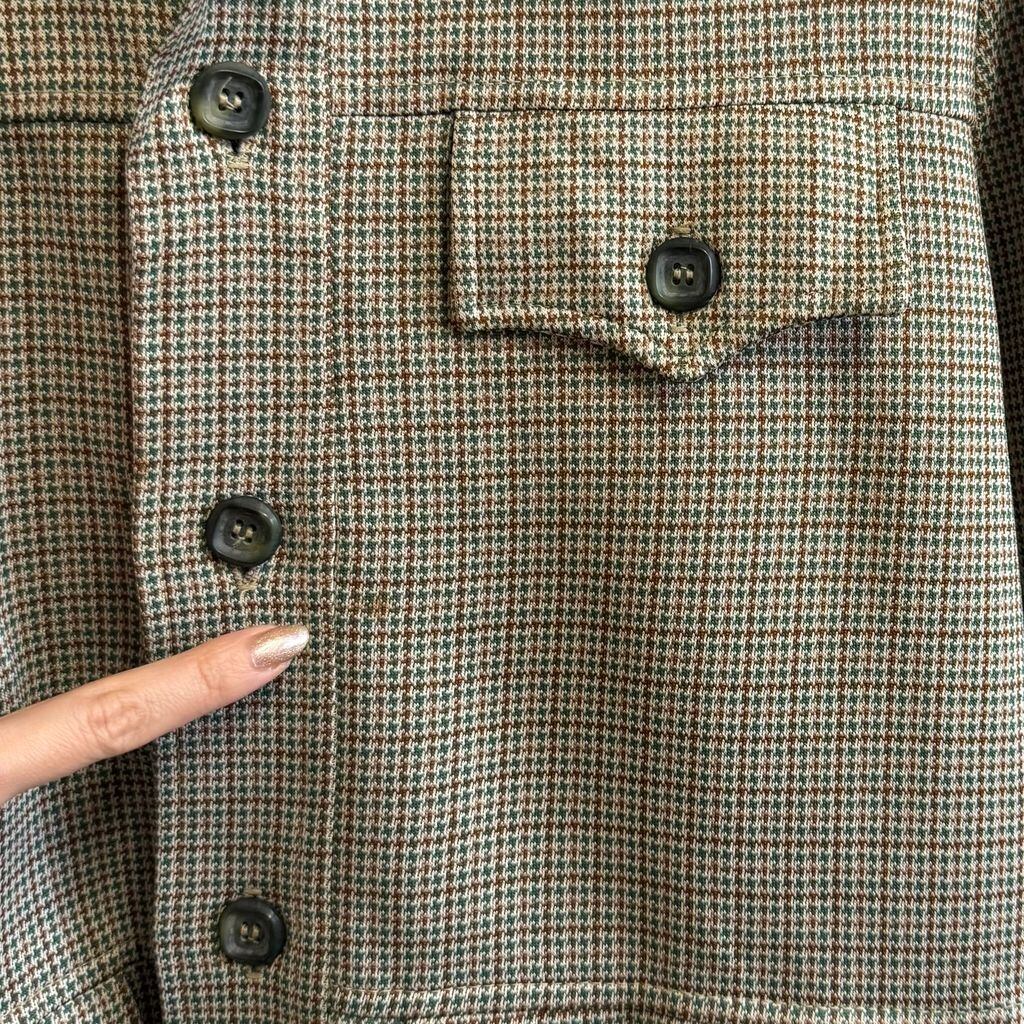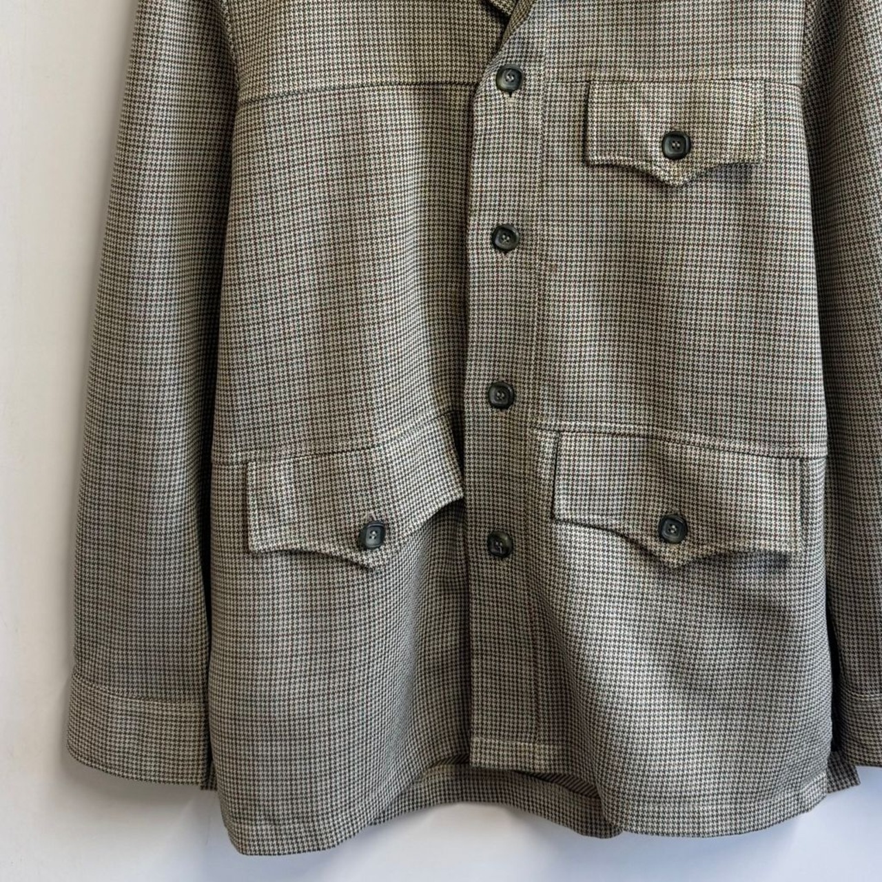 HAGGAR ビンテージ vintage 千鳥格子柄 サファリジャケット ブッシュジャケット フラップ付きポケット フロントボタン グリーン×ブラウン×多色 サイズ42 No.L945