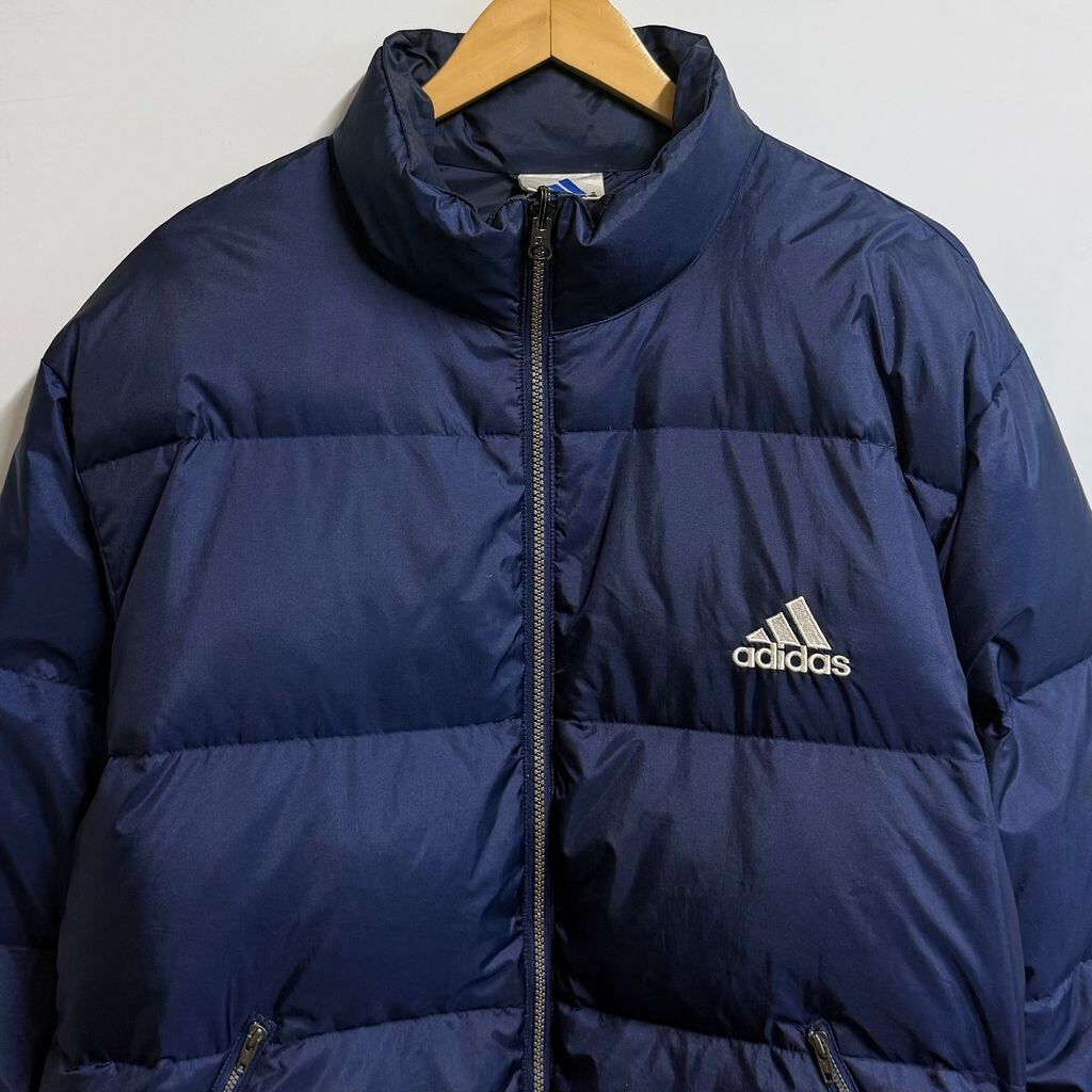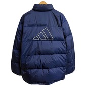 adidas アディダス ダウンジャケット ロゴ刺繍 フルジップ ポケット付き 紺 ネイビー Mサイズ No.L950