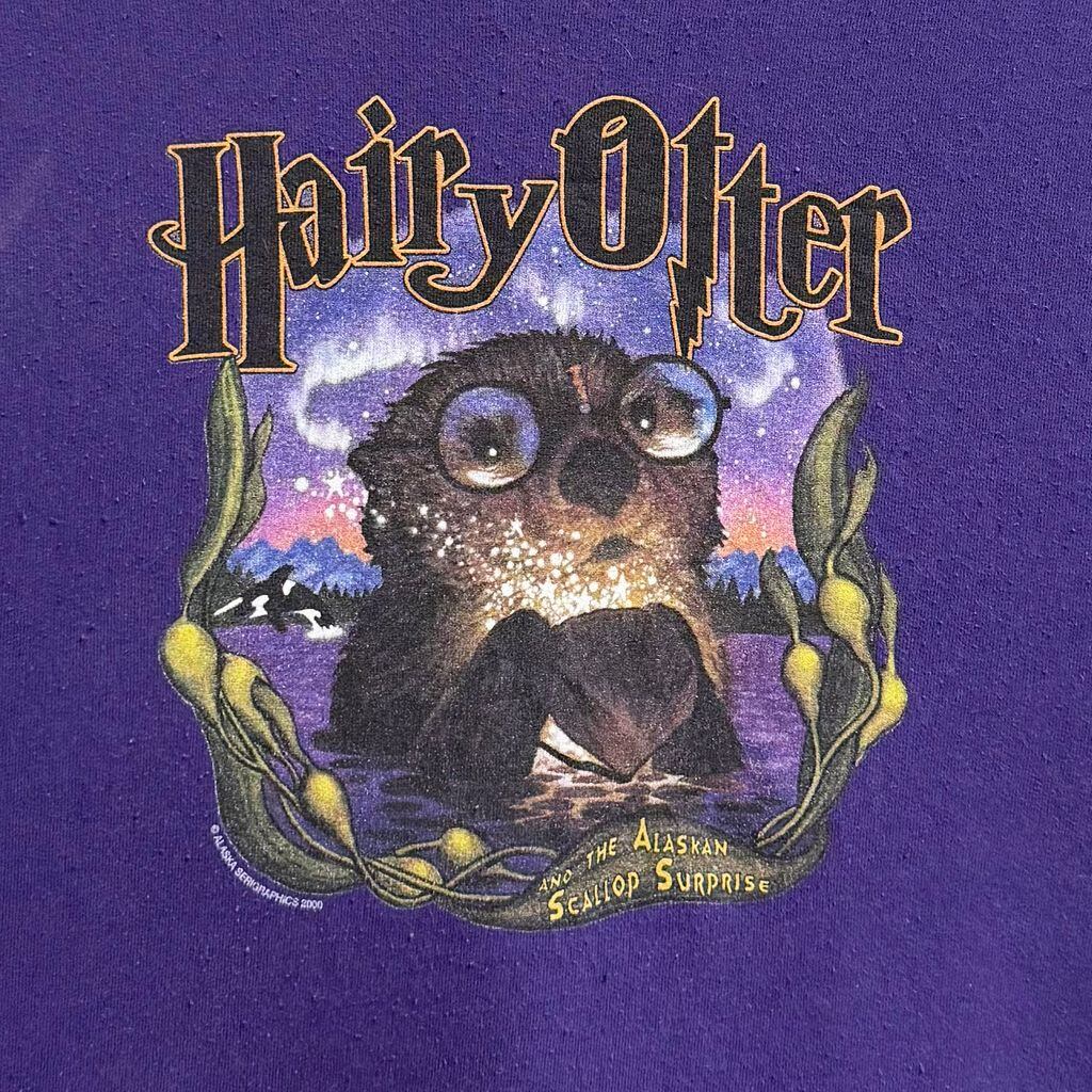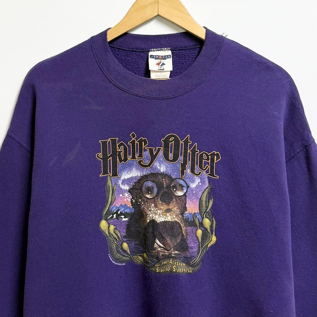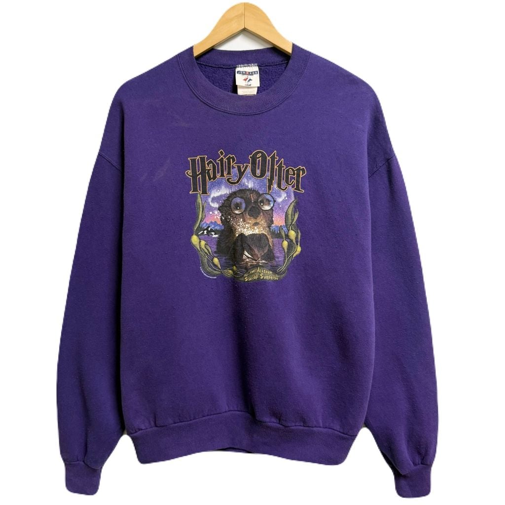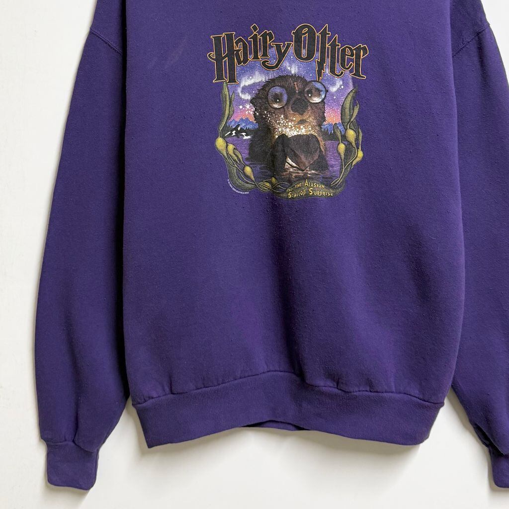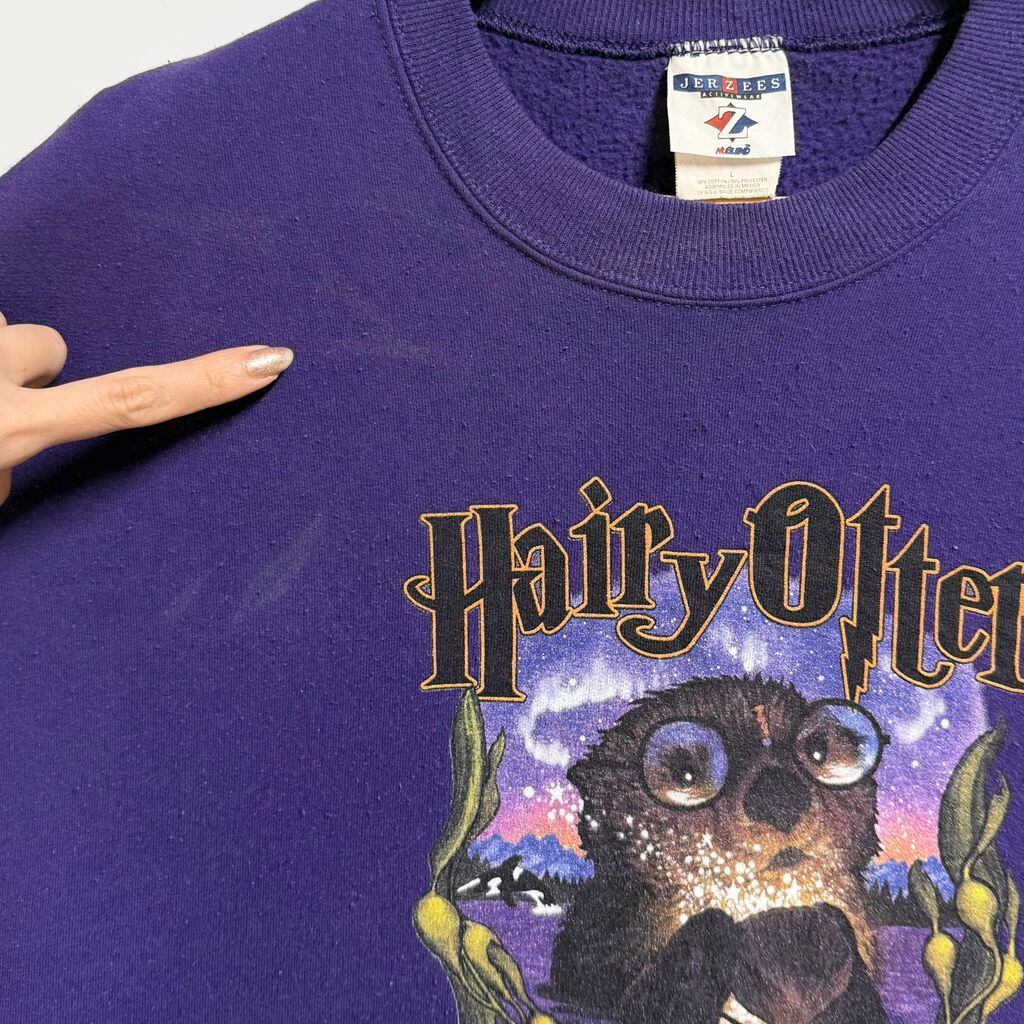 JERZEES ジャージーズ ハリーポッター パロディ Hairy Otter ラッコ アニマルプリント トレーナー スウェット 裏起毛 紫 パープル Lサイズ No.L958