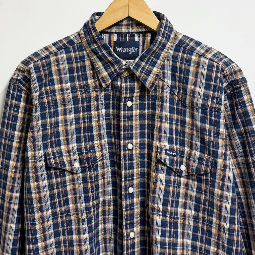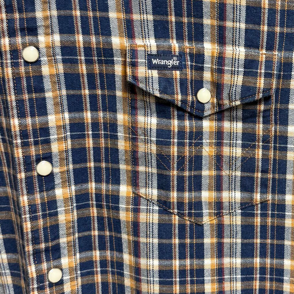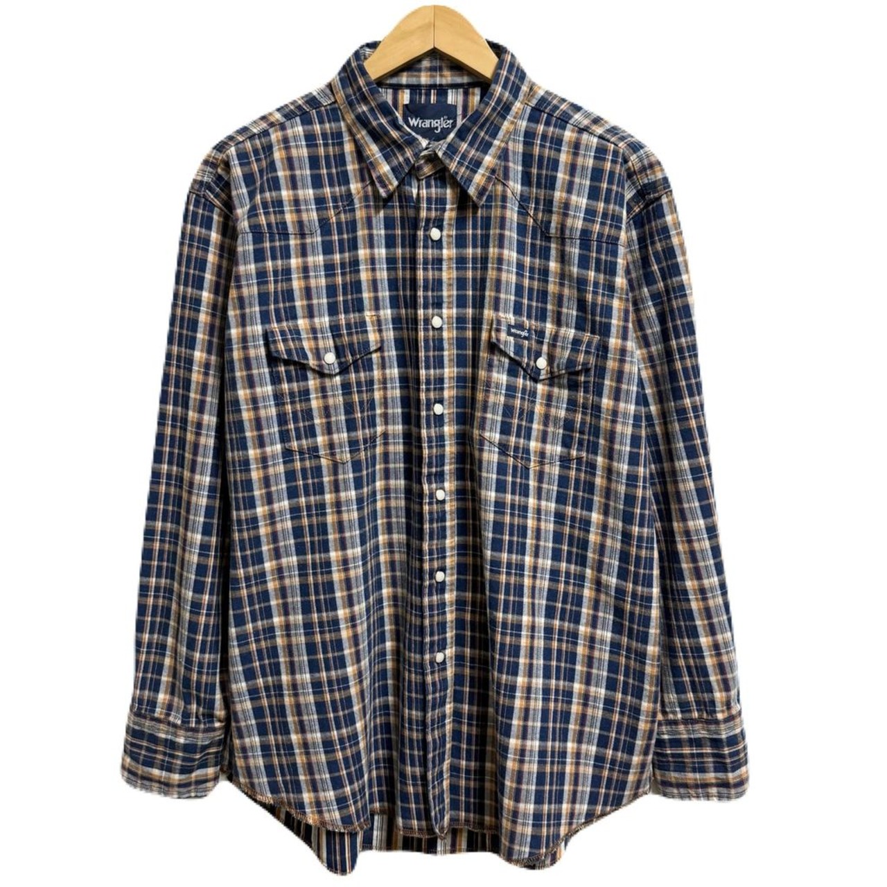 Wrangler ラングラー ウエスタンシャツ スナップボタン コットンシャツ チェック柄 ポケット付き 長袖シャツ 青×白×やまぶき色×赤 XLサイズ No.L959