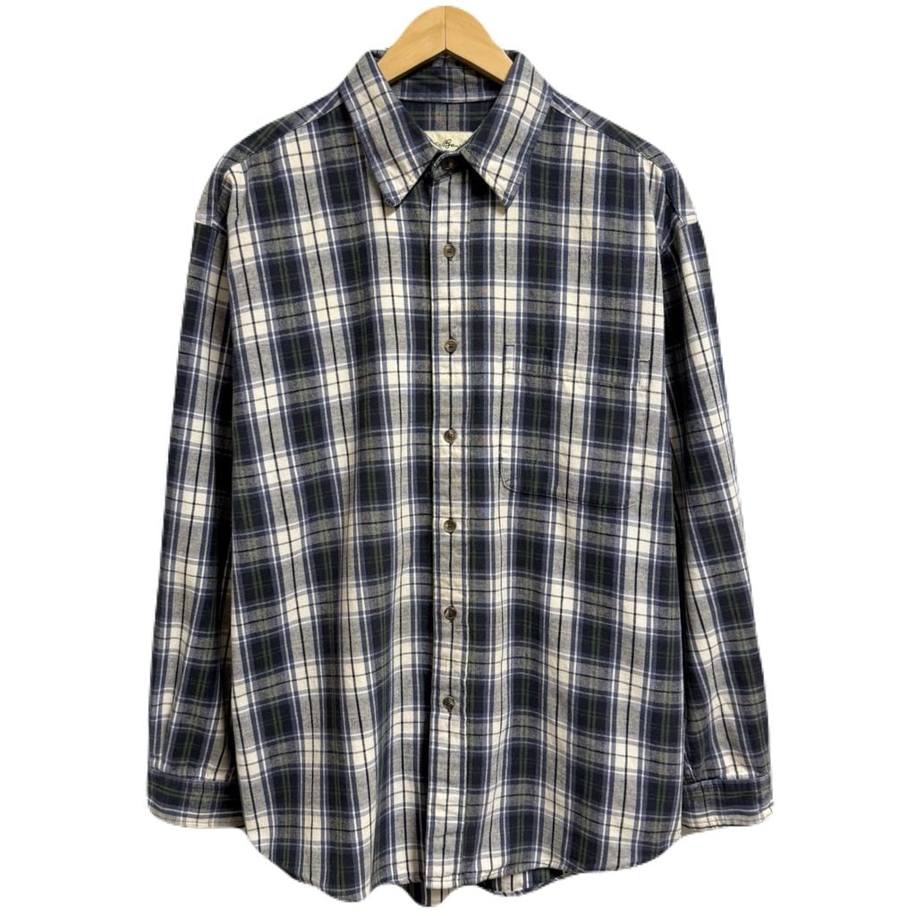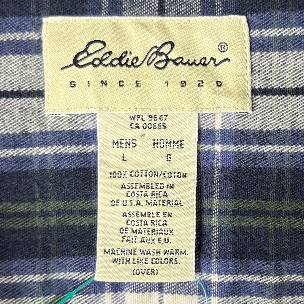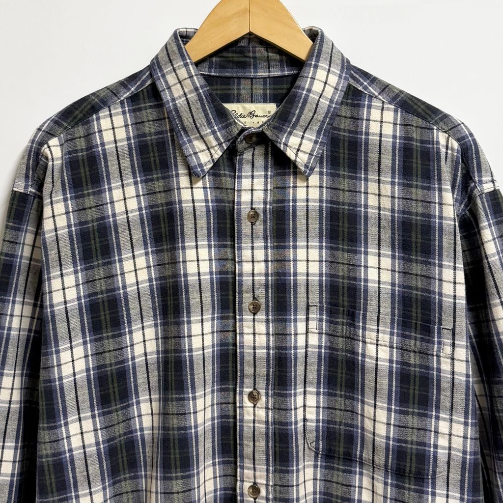 Eddie Bauer エディーバウアー コットンシャツ チェック柄 ポケット付き 長袖シャツ 白×紺×カーキ×多色 Lサイズ No.L960